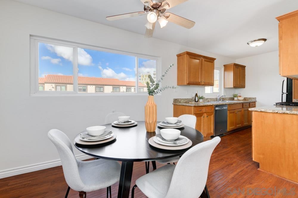 Premium, updated, second story, top-level corner unit at Adelaide Villas. Excellent central location and close to all, yet tucked away on a cul-de-sac. Corner unit offers views to the south, expansive room sizes, ceiling fans in all rooms. Forced air Ducting & Furnace. In Unit Washer/Dryer. Kitchen features newer appliances, refinished cabinetry and granite countertops. Brilliant hardwood flooring throughout. Complex features a common area pool, 1 parking space dedicated to unit, and a storage closet as well. Don't wait on this lovely residence, see it today before its sold! FHA & VA offers welcome! Discover the perfect blend of convenience and vibrant living at the Adelaide Villas, nestled in the heart of San Diego. This centrally located condo offers unbeatable access to all the essentials, from shopping and dining to major highways and public transportation. Whether you’re commuting to work or exploring the city's diverse neighborhoods, you're minutes away from it all. Enjoy the ease of urban living with nearby parks, cafes, schools, and grocery stores, while being just a short drive from downtown, Balboa Park, and the beach. Adelaide Villas is your gateway to a connected, convenient, and exciting lifestyle.