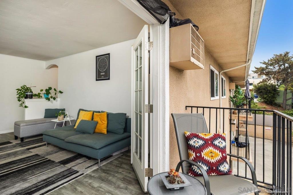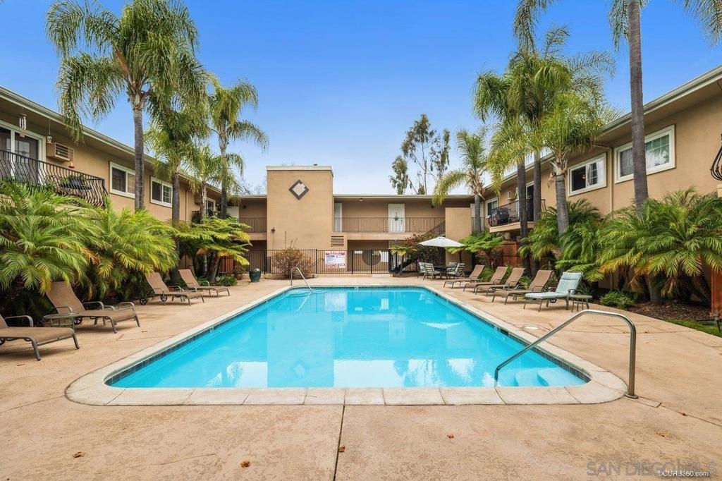 Find a quiet retreat in the heart of College Area with this charming Carriage House condo. Open floorplan features neutral paint and architectural details, a private balcony with westerly views, and stacked washer/dryer. The beautiful complex includes a well-appointed gym, sparkling pool, and lush tropical landscaping. Unit conveys with covered assigned parking space (on the end) with storage cabinet. Top floor unit affords extra privacy with no upstairs neighbors. Fantastic location is walking distance to shopping, dining, and SDSU. Complex Features: ,, Sewer: Sewer Connected Topography: LL