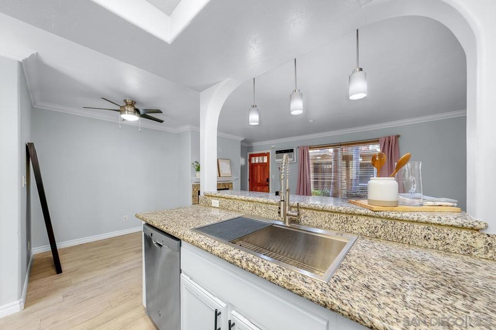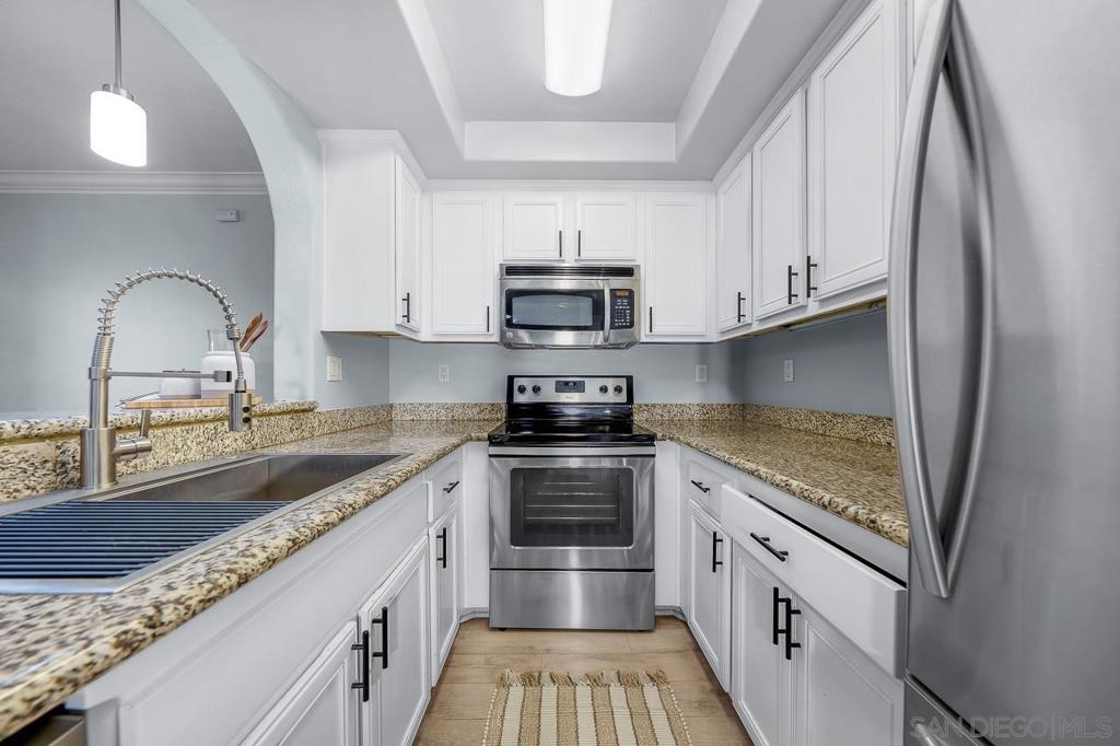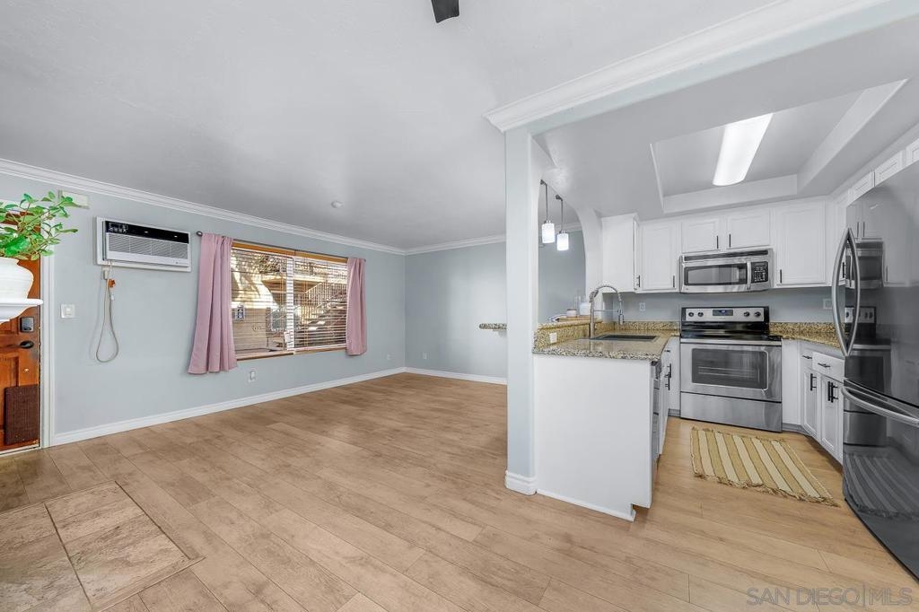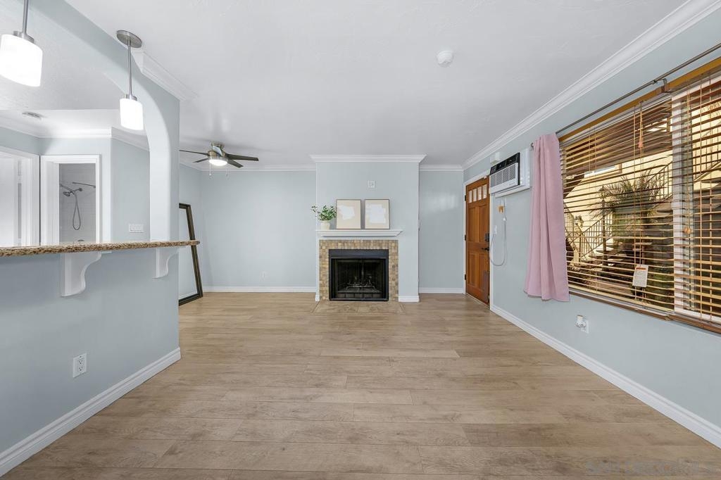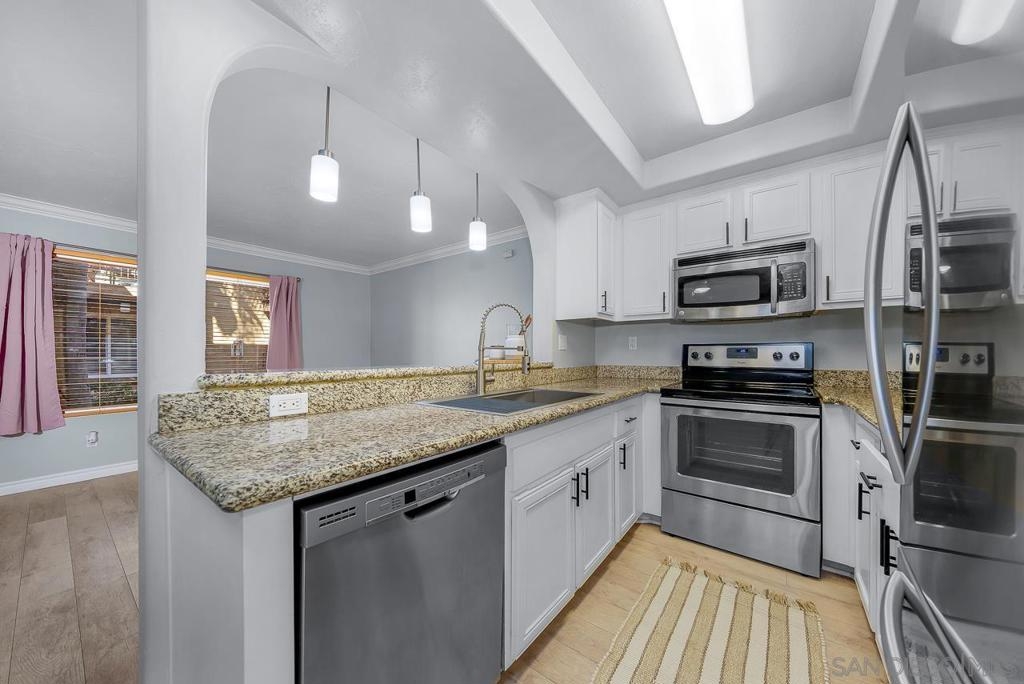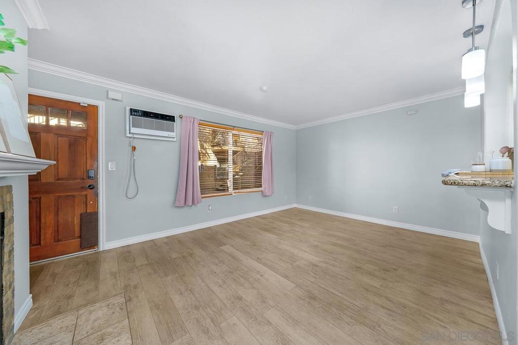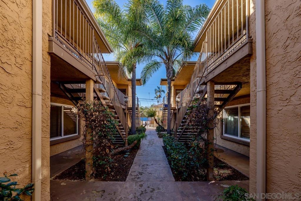 Discover comfort & style in this centrally located one-bedroom, one-bath condo within a secure, gated community of just 7 units. This entry level condo features laminate flooring throughout & a neutral paint color. Kitchen comes equipped with stainless steel appliances, granite countertops & modern pendant lights. Bathroom was remodeled with a tiled shower and deep-soak tub. Enjoy a quiet night in front of the cozy fireplace or the small back patio. There is laundry on-site & one assigned parking space. Whether you're seeking a stylish home or a smart investment, this one-bedroom condo combines modern amenities with a prime location, making it an exceptional opportunity to experience the best of San Diego living. Don't miss the chance to call this gem your own!