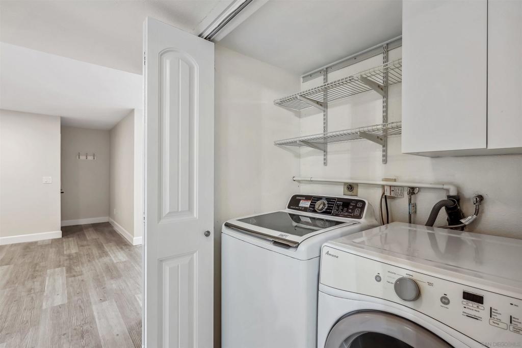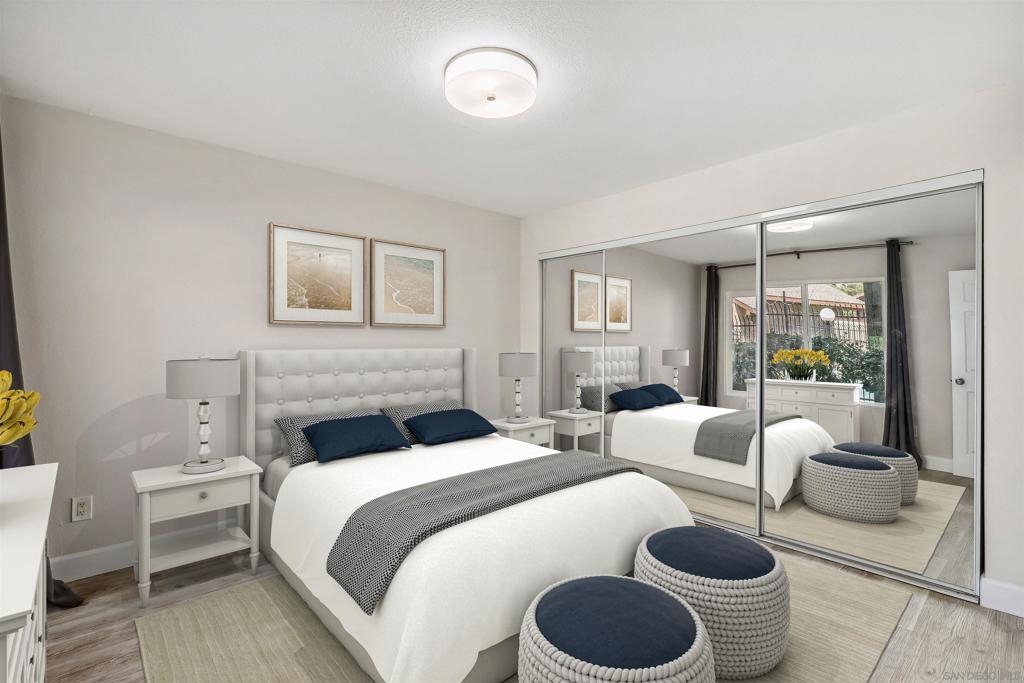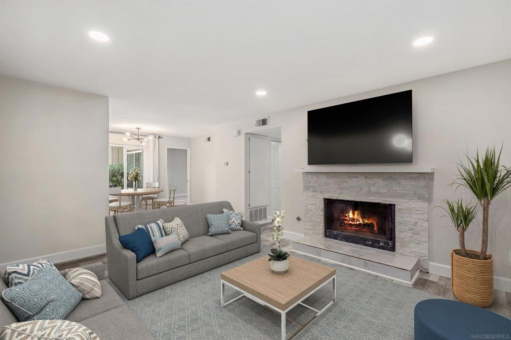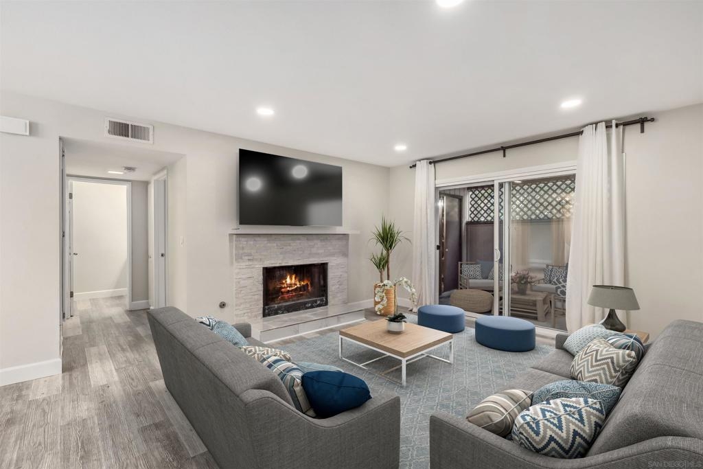 Step into your newly renovated single-level haven nestled in the vibrant heart of San Diego! This ground-level condo presents a contemporary take on comfort, featuring 2 bedrooms, 2 baths, and an inviting open layout. Fresh interior paint throughout enhances the space, complementing the beautiful luxury vinyl plank flooring throughout the house. Feel the warmth of the fireplace in the spacious living room, perfect for cozy evenings. With bedrooms strategically positioned on opposite ends, enjoy the privacy and convenience akin to dual primary suites. Ample closets provide plenty of storage space while the private patio invites outdoor relaxation. In-unit laundry accommodations for a full-size washer/dryer streamlining chores. Convenience is key with guest parking and community pool nearby, along with 1 carport space. The community provides plenty of uncovered guest parking spaces, making entertaining a breeze. Just a stone's throw away from a tranquil community green space, ideal for your beloved pets to play and roam freely. Leave the car parked and explore nearby amenities including a major shopping center across the street and easy access to SDSU. This well-maintained complex ensures a worry-free lifestyle, while freeway access adds to the allure of this desirable home. Welcome to your serene retreat in the heart of convenience!