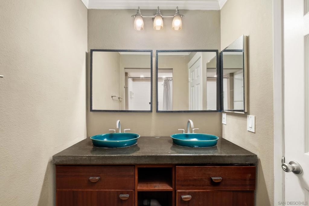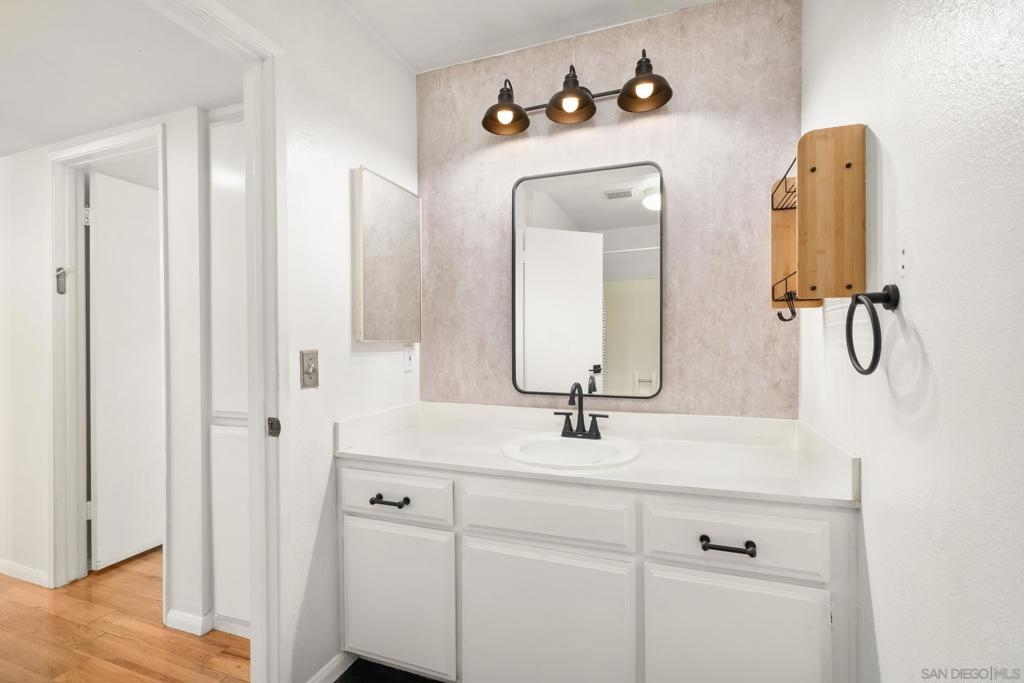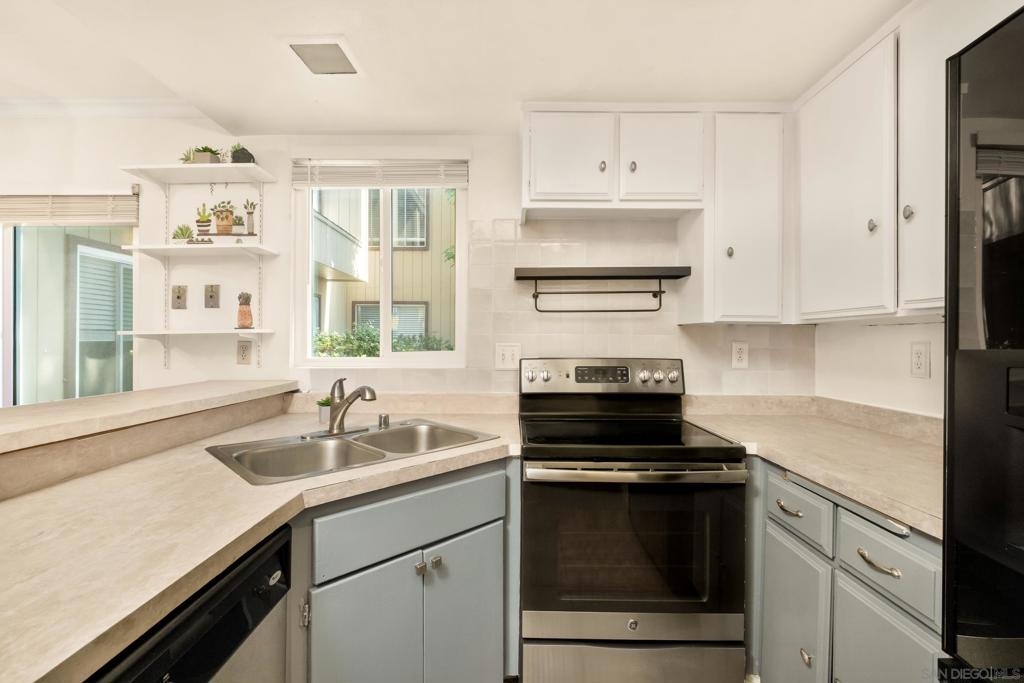 Move-in ready single-level College Area condo features an updated kitchen with modern finishes and an eat-at counter. The bedrooms are located on opposite sides of the unit for added privacy, and both bathrooms have been tastefully remodeled with quality finishes. A full-size side-by-side washer and dryer are conveniently located in the unit. Enjoy the private enclosed patio and custom dining area lighting that adds warmth and character. The extremely well-maintained complex offers a pool, jacuzzi, and dog park. One assigned parking space is included, along with plenty of guest parking. Ideally located across from a shopping center with stores, dining, and banking, and just minutes to SDSU and Lake Chollas, with quick easy access to the 94 freeway around the corner.