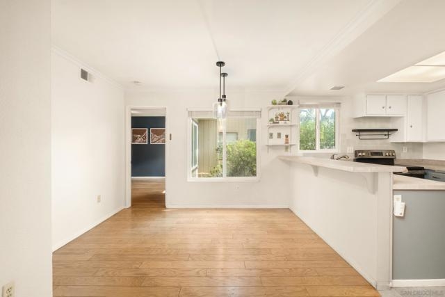 Move-in ready single-level College Area condo features an updated kitchen with modern finishes and an eat-at counter. The bedrooms are located on opposite sides of the unit for added privacy, and both bathrooms have been tastefully remodeled with quality finishes. A full-size side-by-side washer and dryer are conveniently located in the unit. Enjoy the private enclosed patio and custom dining area lighting that adds warmth and character. The extremely well-maintained complex offers a pool, jacuzzi, and dog park. One assigned parking space is included, along with plenty of guest parking. Ideally located across from a shopping center with stores, dining, and banking, and just minutes to SDSU and Lake Chollas, with quick easy access to the 94 freeway around the corner.