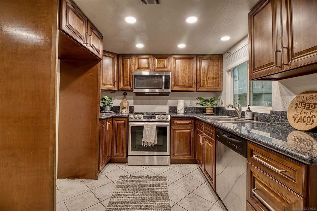 3 Bed, 2 1/2 Bath Tri-level townhome with attached 2 car garage centrally located about 1 mile from SDSU. Freshly painted throughout. New carpet in upstairs bedrooms and both staircases. Stainless Steel kitchen appliances and granite counters. New recessed lighting and ceiling fans. Newer dual pane windows and water heater. Stackable washer/dryer and AC. Perfect floorplan for roommates with one bedroom, private bath and newer laminate flooring on ground floor. Low turnover in this community. Great for investors. Quick access to shopping, restaurants and freeways. 3 Bed, 2 1/2 Bath Tri-level townhome with attached 2 car garage centrally located 1 mile from SDSU. Freshly painted throughout. New carpet in bedrooms and staircases. Stainless Steel kitchen appliances with granite counters. New recessed lighting and ceiling fans. Full size washer/dryer. Perfect floorplan for roommates with one bedroom and private bath on ground floor. Low turnover in this community. Great for investors. Near shopping and restaurants.