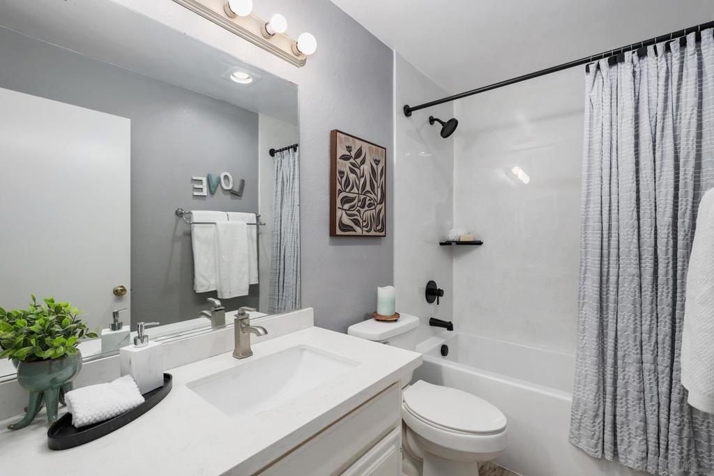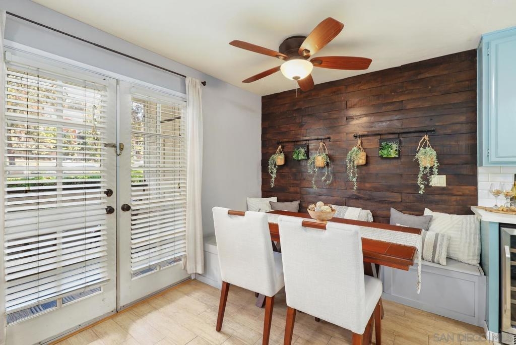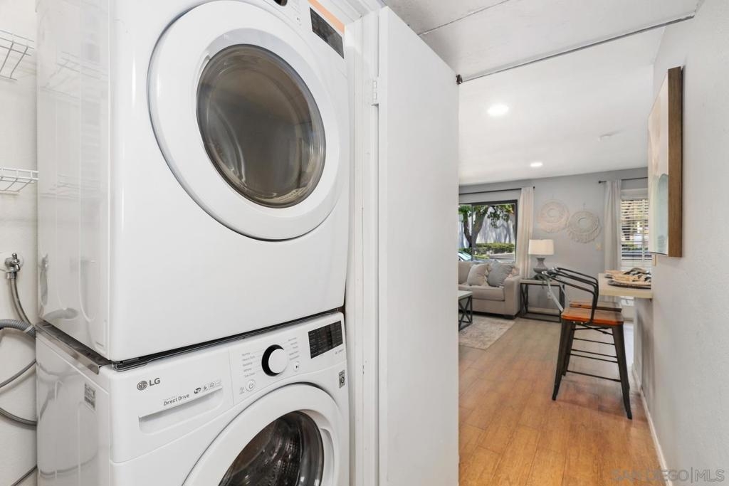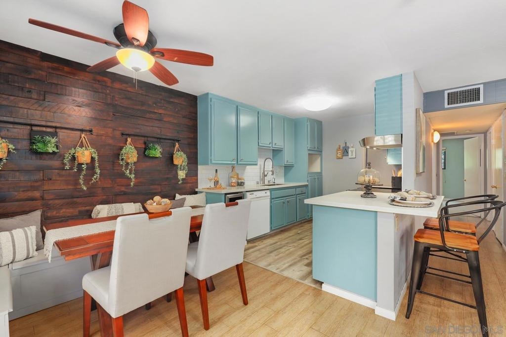 Move-In Ready Condo in Collwood Meadows Near SDSU! This beautifully upgraded condo features a spacious open floorplan with large bedrooms, durable flooring throughout the main living areas, and a cozy fireplace with a rustic wood plank accent wall. The stylish kitchen includes a wine fridge, breakfast counter seating, and opens seamlessly to the living area—ideal for entertaining. Additional highlights include dual pane windows, central A/C, in-unit washer and dryer, and an updated hall bath. Enjoy your private patio, plus covered parking and ample guest parking nearby. Conveniently located near the community pool and spa, shopping, dining, and SDSU—this home offers both comfort and convenience in a prime location.