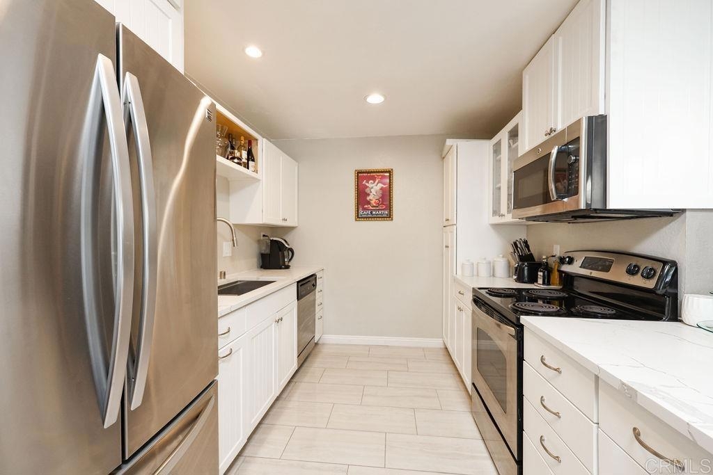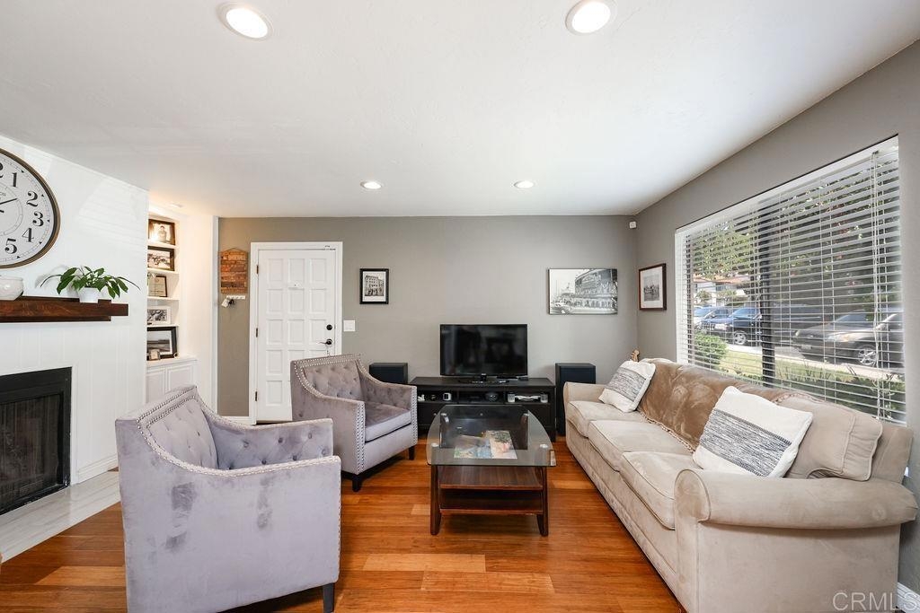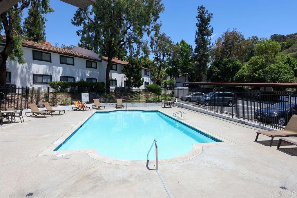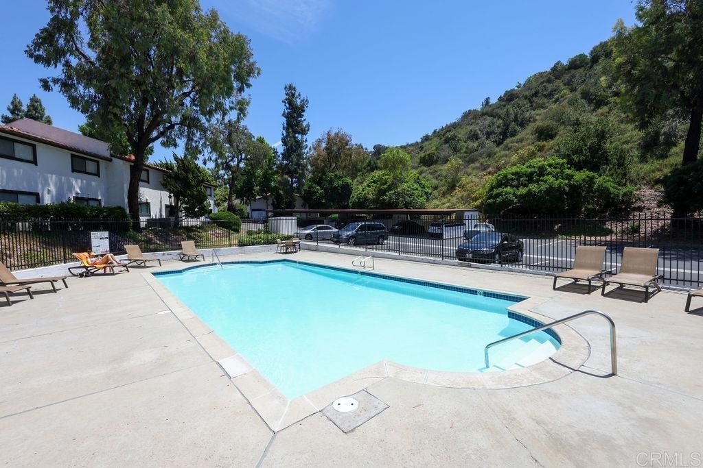 Welcome home to the highly sought-after neighborhood of Talmadge. This hidden gem exudes modern elegance within a remodeled 2 bedroom, 2 bath, 1020 sq.ft., open-concept condo adorned with bamboo flooring throughout. Positioned on the lower level, this unit presents a striking kitchen featuring stainless steel appliances, new white custom cabinetry, and quartz countertops that harmonize seamlessly. Retreat to the generously proportioned primary bedroom and indulge in the upgraded custom bathroom with its captivating travertine shower. Full sized in-unit washer and dryer. Central A/c throughout. A front patio not only provides a serene spot for relaxation but also includes convenient storage. One covered parking space with ample guest parking throughout the complex. Close to community pool and spa. Mature, lush landscaping throughout the Collwood Meadows community. Close to SDSU, Kaiser, dining and shopping.