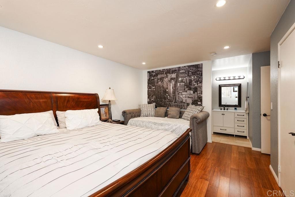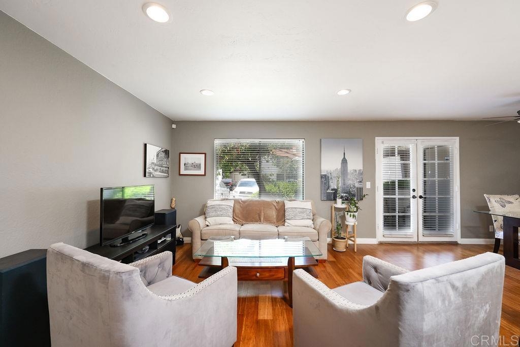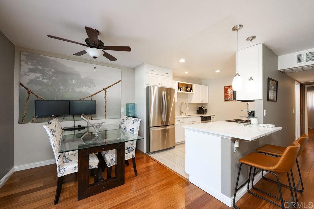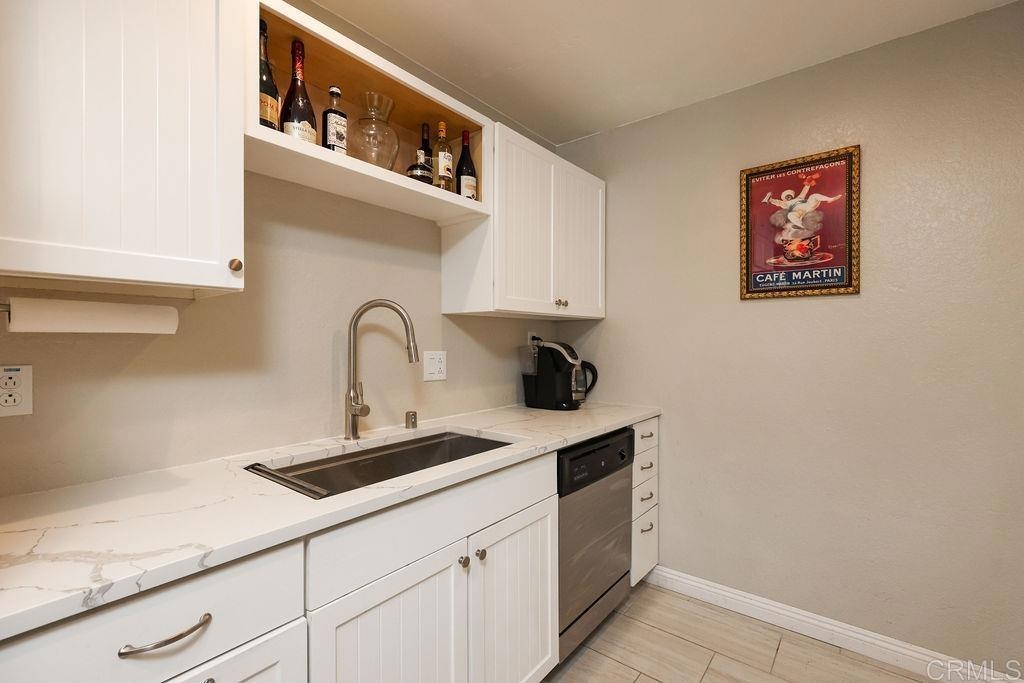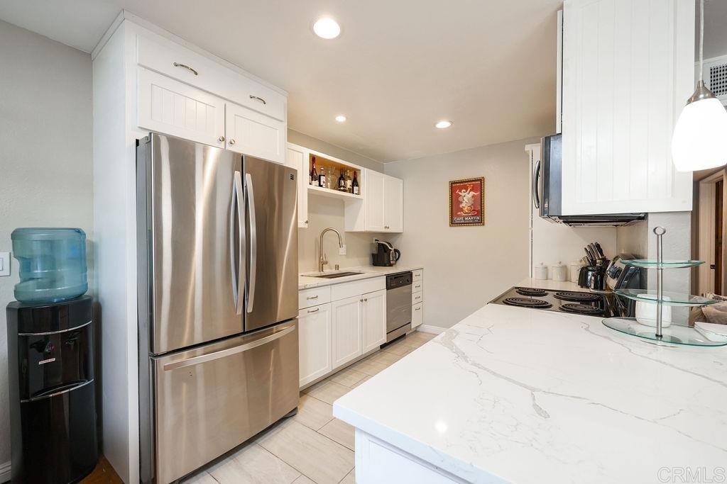 Welcome home to the highly sought-after neighborhood of Talmadge. This hidden gem exudes modern elegance within a remodeled 2 bedroom, 2 bath, 1020 sq.ft., open-concept condo adorned with bamboo flooring throughout. Positioned on the lower level, this unit presents a striking kitchen featuring stainless steel appliances, new white custom cabinetry, and quartz countertops that harmonize seamlessly. Retreat to the generously proportioned primary bedroom and indulge in the upgraded custom bathroom with its captivating travertine shower. Full sized in-unit washer and dryer. Central A/c throughout. A front patio not only provides a serene spot for relaxation but also includes convenient storage. One covered parking space with ample guest parking throughout the complex. Close to community pool and spa. Mature, lush landscaping throughout the Collwood Meadows community. Close to SDSU, Kaiser, dining and shopping.