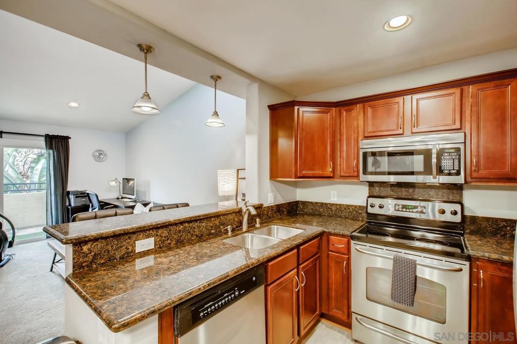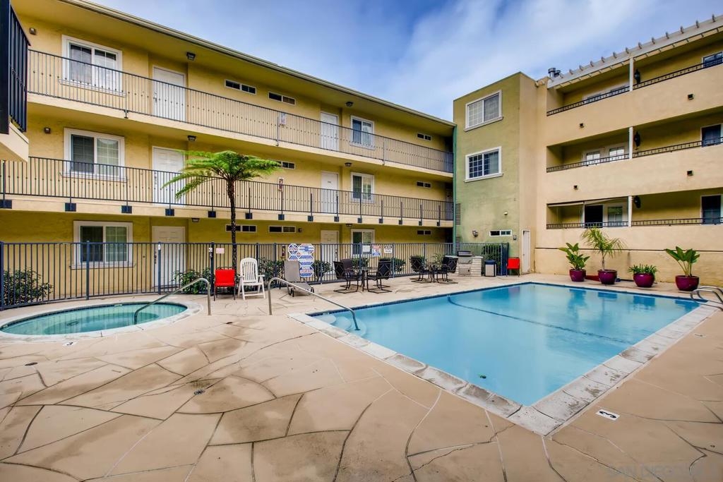 Immaculate top floor unit featuring one of the largest private balconies with a storage closet in the complex. Natural lighting illuminates the living space thanks to vaulted ceilings. Upgraded windows and doors provide peace and energy efficiency. A/C to keep it chill for the summer. Stacked full size washer/dryer in unit. Assigned covered parking space and much more. Ideal location just minutes away from SDSU, restaurants, shops and freeways. Complex Features: ,,,, Equipment: Dryer, Washer Other Fees: 0 Sewer: Sewer Connected Topography: LL
