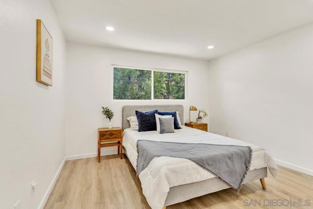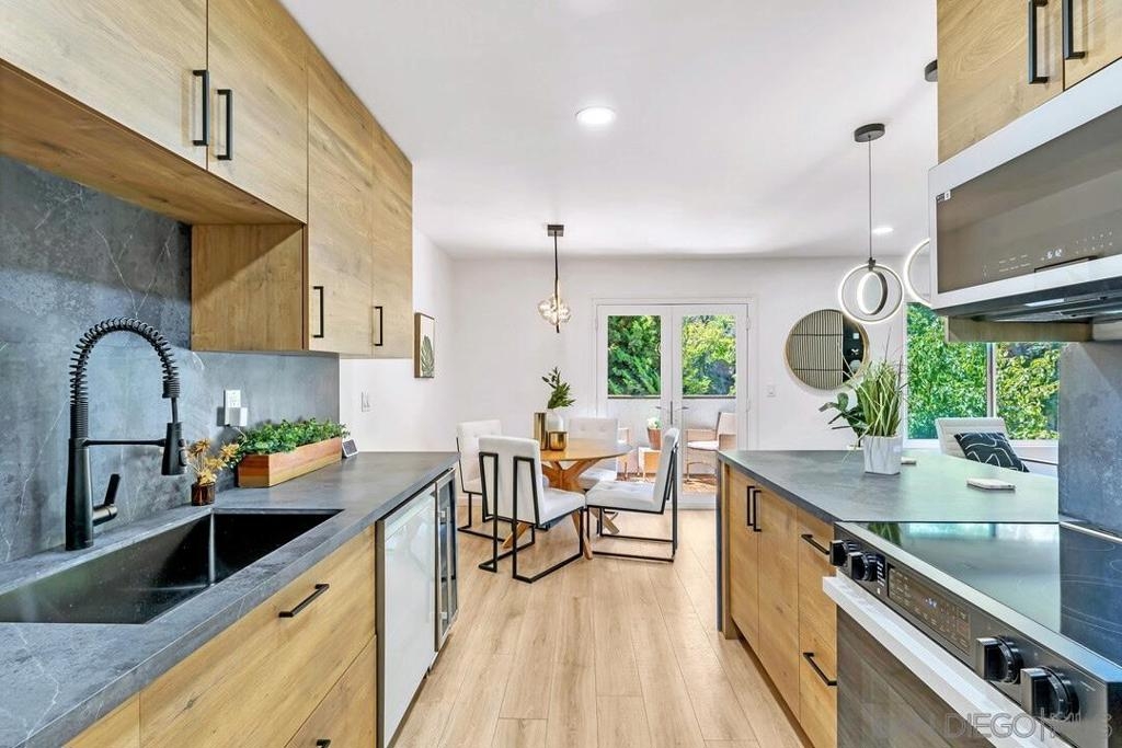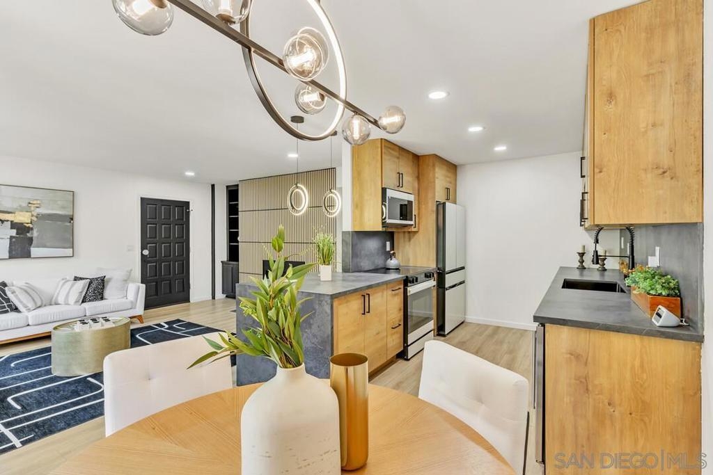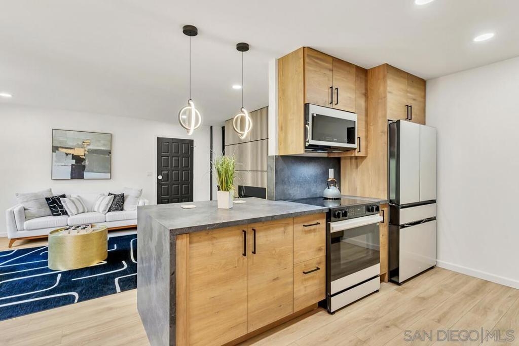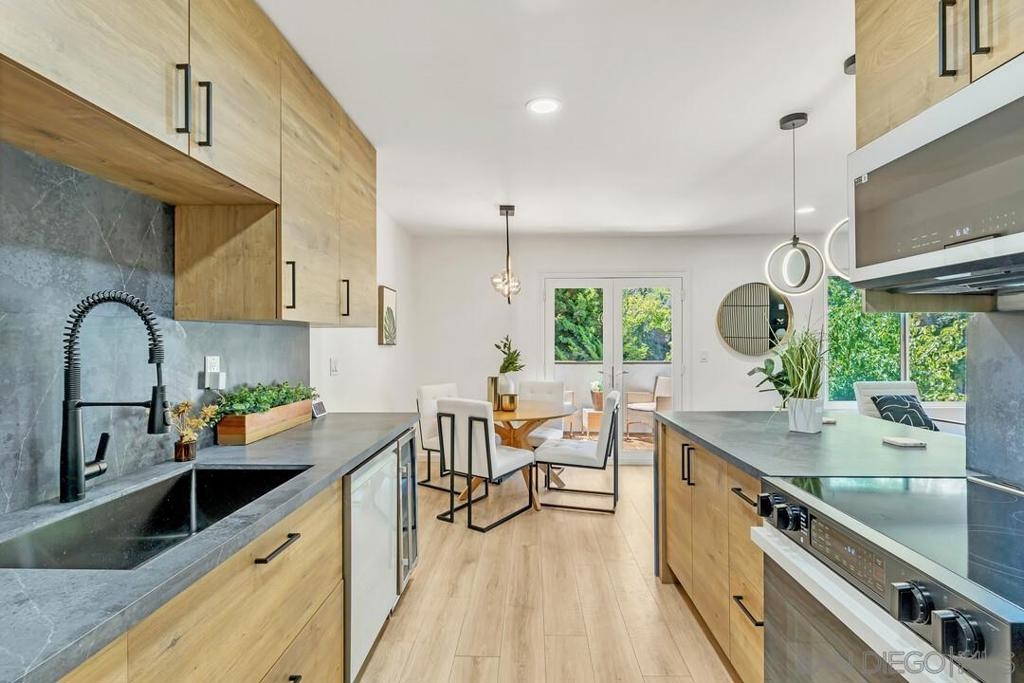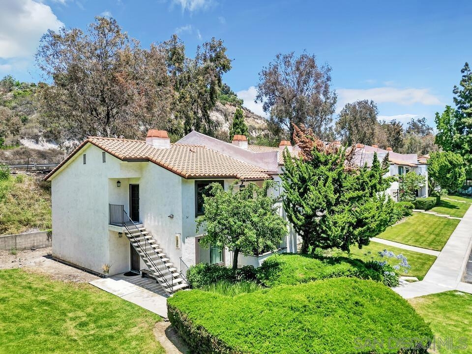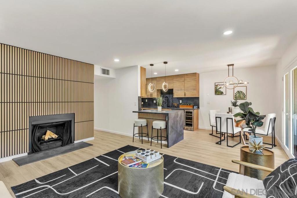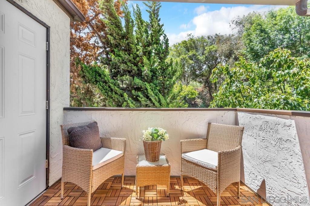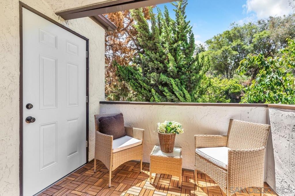 Welcome to your chic and spacious Talmadge sanctuary at 5055 Collwood Way, #54, straight out of a magazine and offering a rare, unheard of opportunity to own this level of luxury for under $700,000! With over 1,000 square feet, this fully renovated top-floor corner residence offers the perfect combination of privacy, tranquility, and modern sophistication. Completed in 2025, the designer renovation showcases European soft-close cabinetry, quartz countertops, high-end appliances, wide-plank luxury waterproof vinyl flooring, upgraded plumbing and electrical, new central AC and heat, and energy-efficient Simonton windows. Framed by lush greenery and serene canyon views, this home strikes the ideal balance between urban convenience and private retreat living. The thoughtful corner design features only one shared wall, no neighbors above, and interiors beautifully illuminated by natural light throughout. As an added bonus, this rare corner home lives like a private oasis, with an open-air, lush, yard-like setting right outside your front door framed by dreamy canyon views. Inside, unwind in the expansive living room with a rare wood-burning fireplace, or host friends on your private balcony with its seamless indoor-outdoor flow. The spacious primary suite offers generous dual closets and a beautifully designed, large en-suite bathroom, while the second bedroom provides flexibility for guests, a nursery, gym, or work-from-home office. This smart home is fully integrated with Alexa or Google Home, featuring smart locks, thermostat, lighting, cameras, and WiFi-enabled appliances, in-home washer and dryer, bringing both convenience and peace of mind to daily living. Community amenities include a resort-style pool, spa, and clubhouse, plus abundant guest parking and your own covered parking space (#54). Located in the highly desired community of Talmadge, you’ll enjoy top-rated schools, a vibrant neighborhood feel, and easy access to SDSU, Mission Valley, North Park, Hillcrest, downtown, and San Diego’s world-renowned beaches. This hidden gem is everything you’ve been searching for, and more. Don’t miss the chance to own this one-of-a-kind ultra modern retreat in one of San Diego’s most desirable communities.