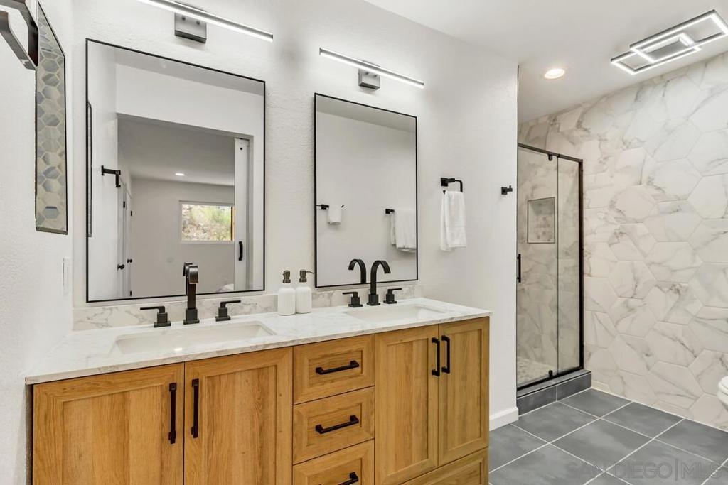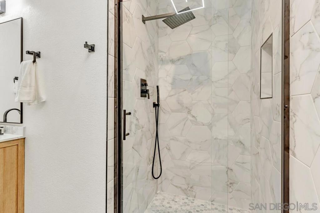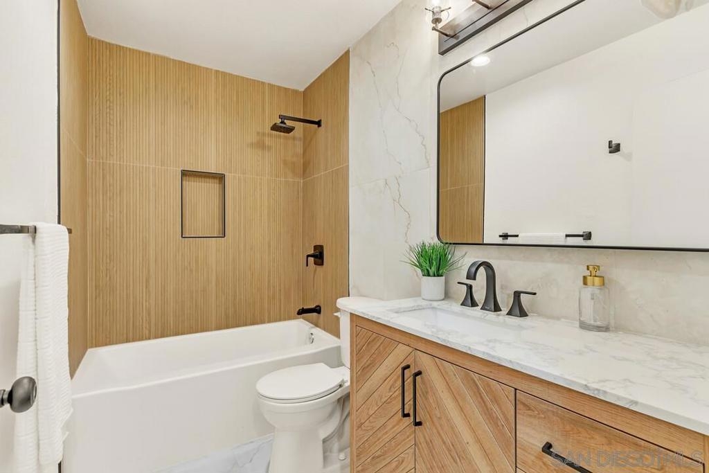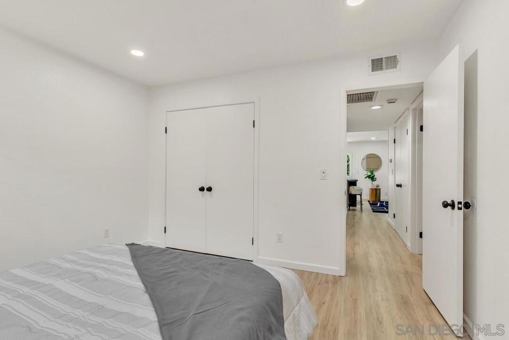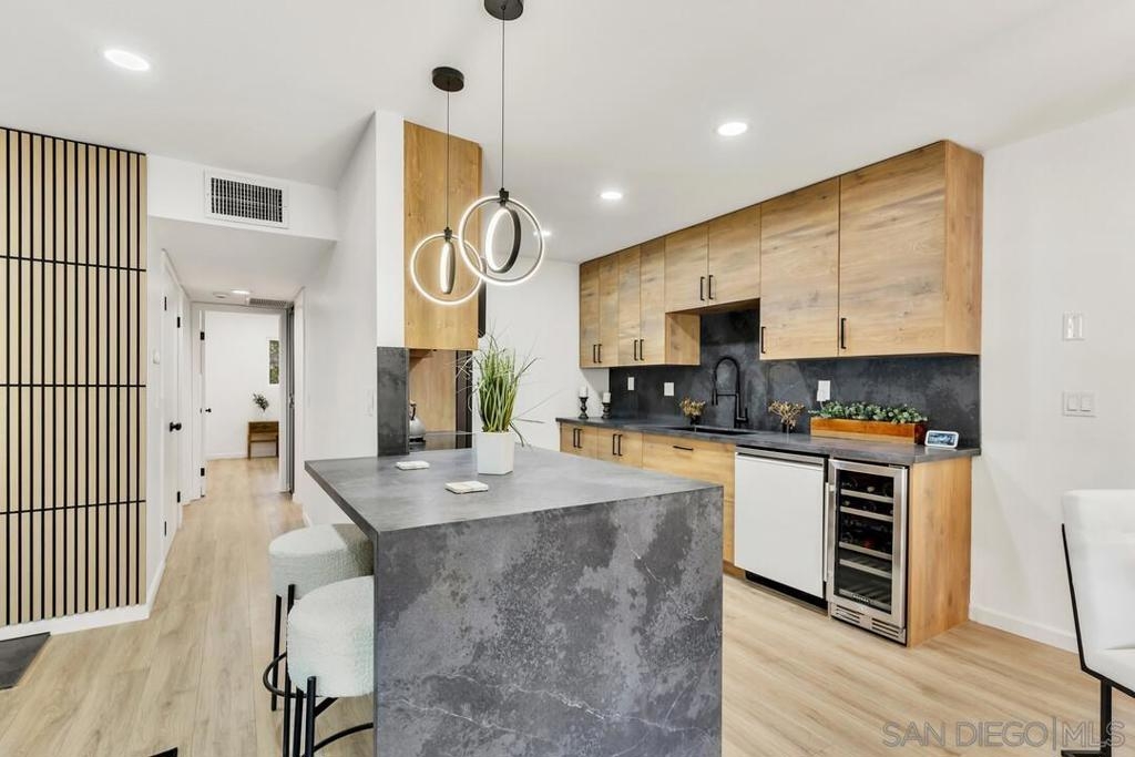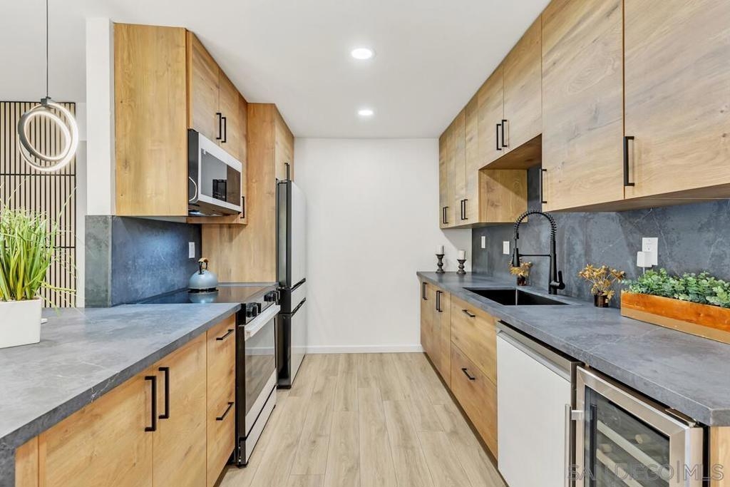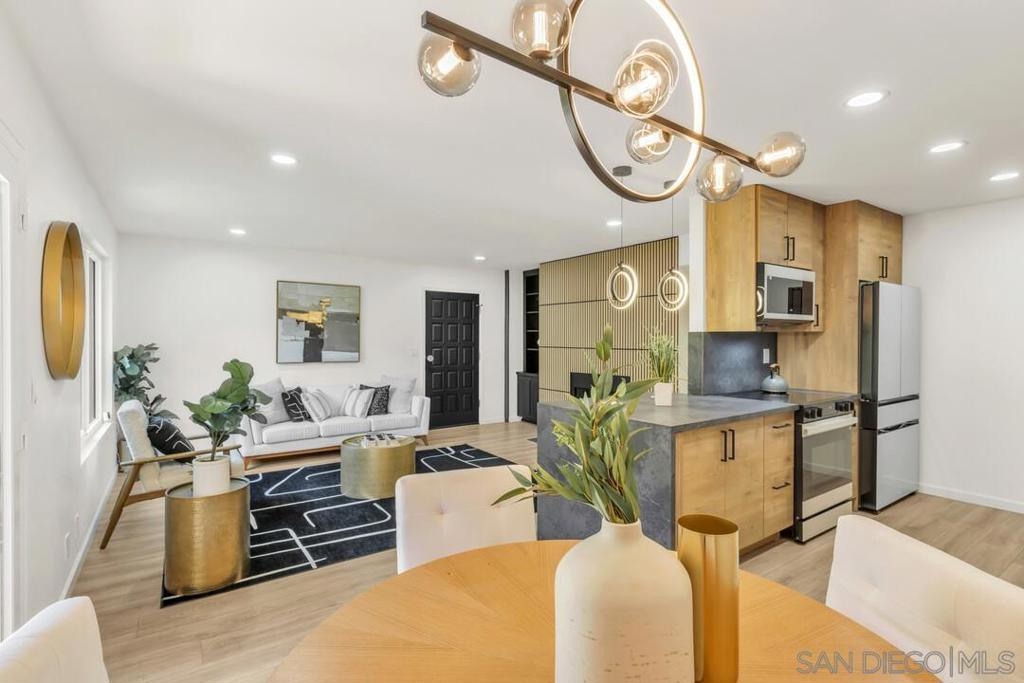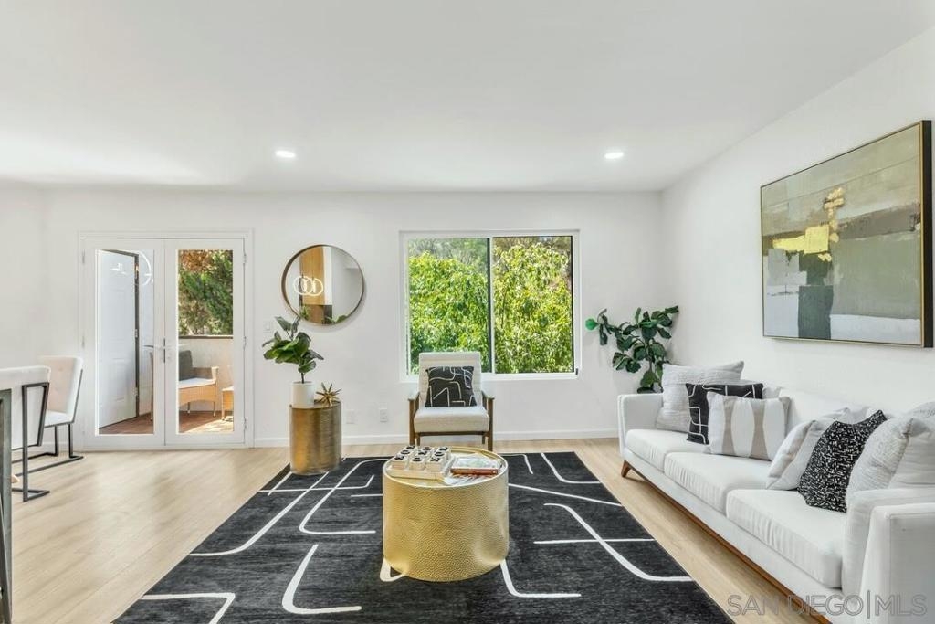 Welcome to your chic and spacious Talmadge sanctuary at 5055 Collwood Way, #54, straight out of a magazine and offering a rare, unheard of opportunity to own this level of luxury for under $700,000! With over 1,000 square feet, this fully renovated top-floor corner residence offers the perfect combination of privacy, tranquility, and modern sophistication. Completed in 2025, the designer renovation showcases European soft-close cabinetry, quartz countertops, high-end appliances, wide-plank luxury waterproof vinyl flooring, upgraded plumbing and electrical, new central AC and heat, and energy-efficient Simonton windows. Framed by lush greenery and serene canyon views, this home strikes the ideal balance between urban convenience and private retreat living. The thoughtful corner design features only one shared wall, no neighbors above, and interiors beautifully illuminated by natural light throughout. As an added bonus, this rare corner home lives like a private oasis, with an open-air, lush, yard-like setting right outside your front door framed by dreamy canyon views. Inside, unwind in the expansive living room with a rare wood-burning fireplace, or host friends on your private balcony with its seamless indoor-outdoor flow. The spacious primary suite offers generous dual closets and a beautifully designed, large en-suite bathroom, while the second bedroom provides flexibility for guests, a nursery, gym, or work-from-home office. This smart home is fully integrated with Alexa or Google Home, featuring smart locks, thermostat, lighting, cameras, and WiFi-enabled appliances, in-home washer and dryer, bringing both convenience and peace of mind to daily living. Community amenities include a resort-style pool, spa, and clubhouse, plus abundant guest parking and your own covered parking space (#54). Located in the highly desired community of Talmadge, you’ll enjoy top-rated schools, a vibrant neighborhood feel, and easy access to SDSU, Mission Valley, North Park, Hillcrest, downtown, and San Diego’s world-renowned beaches. This hidden gem is everything you’ve been searching for, and more. Don’t miss the chance to own this one-of-a-kind ultra modern retreat in one of San Diego’s most desirable communities.