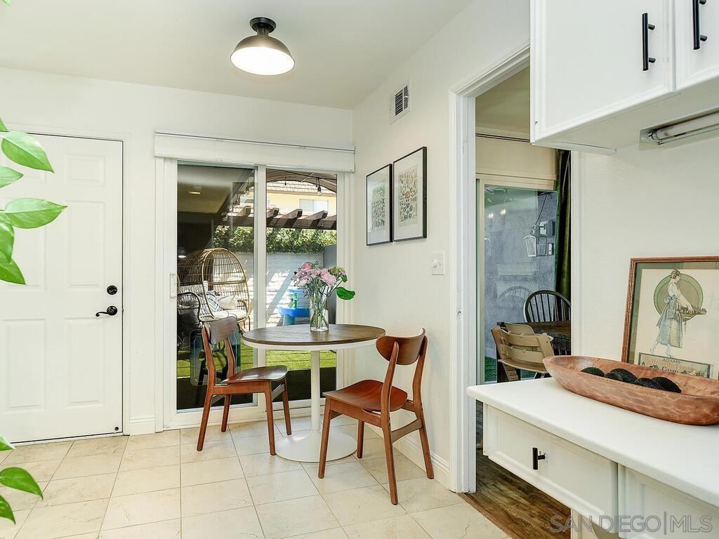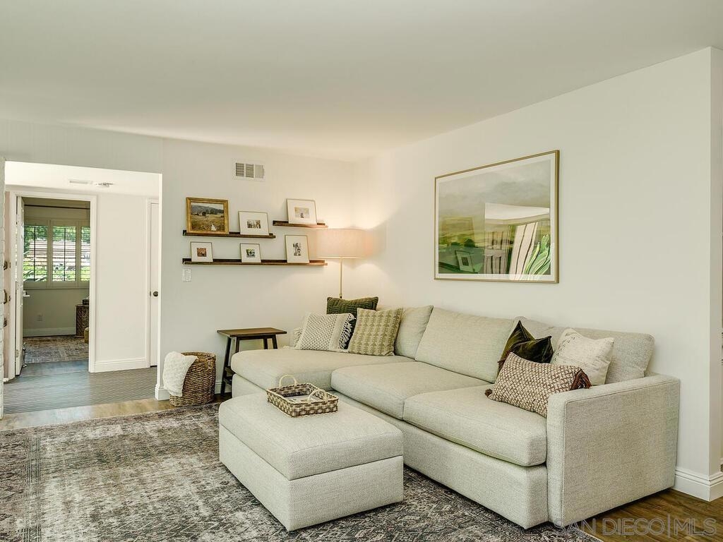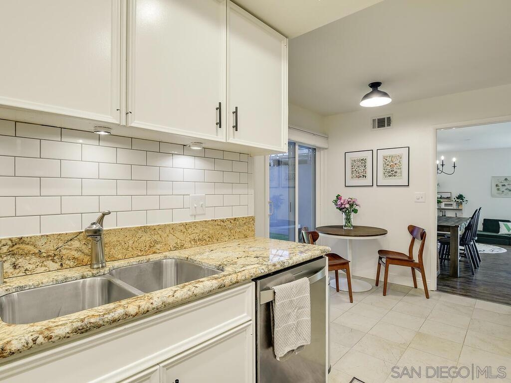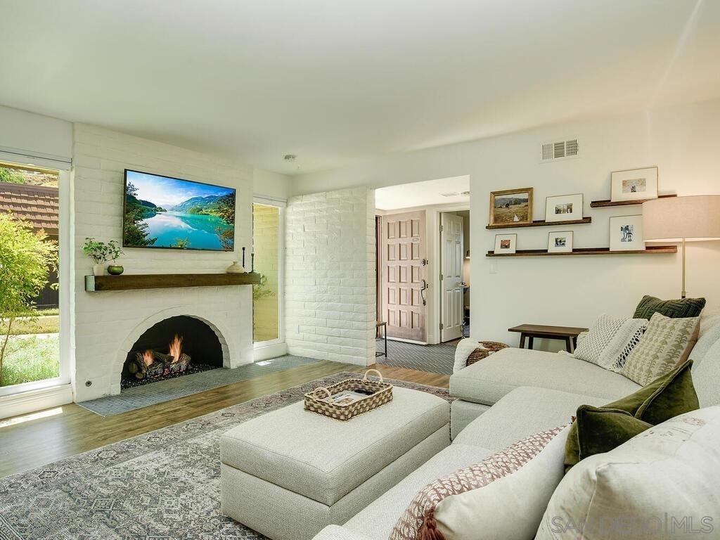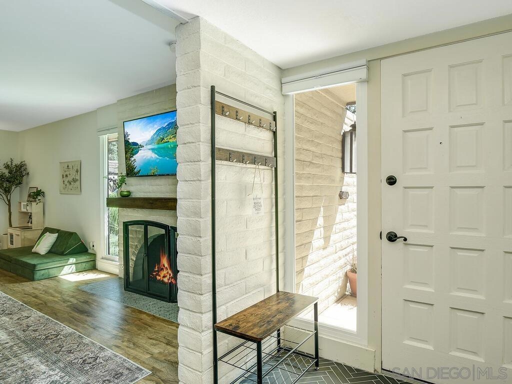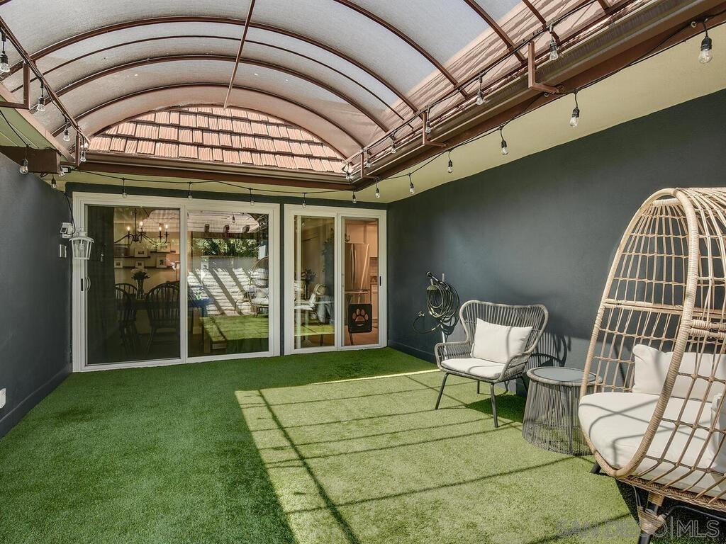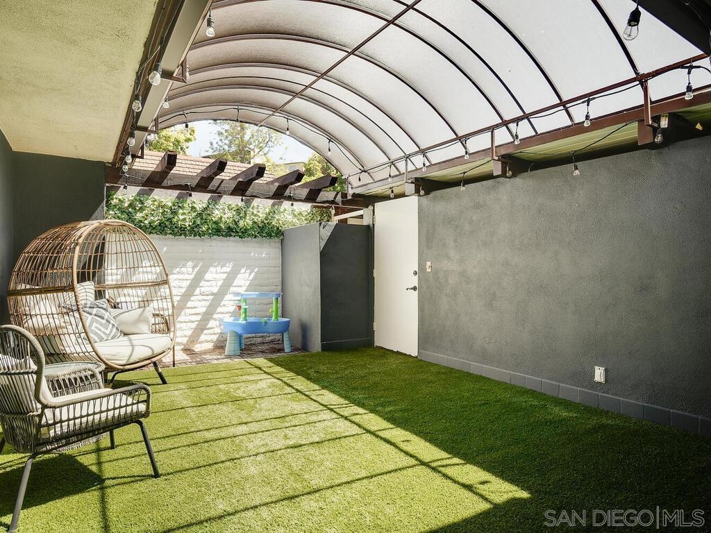 Beautifully renovated single story end unit in a superb location within Collwood Park. Over $49,000 in quality upgrades. Light filled with windows on 3 sides, it feels like a house. Mid Century modern living room/dining room opens to the huge fully enclosed patio. Kitchen w/granite counters & stainless appliances. Direct entry garages, newer AC, furnace, & water heater. Upgrades: Milgard dual pane windows and sliders, Bali shades, designer gas fireplace, new 2nd bathroom, Tesla charger, electrical panel, AwnTex 160 canopy. Outside permit parking space for 3rd car may be granted by HOA at no cost when both garage spaces are occupied by the unit owners cars registered at the unit. SEE DOCUMENTS TAB for list and cost of upgrades by current owner.. Solar Panel permit for NEM 2.0 has been obtained and my be transferred to new owners. Installation requires HOA approval. Water conditioning unit may also be available. Collwood Park is an established community with over 13 acres of lush landscaping, gorgeous walking trails and 3 pools (1 heated all year) 2 spas. Minutes to beaches, Downtown, and all that San Diego has to offer.