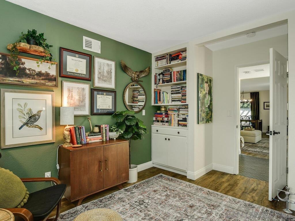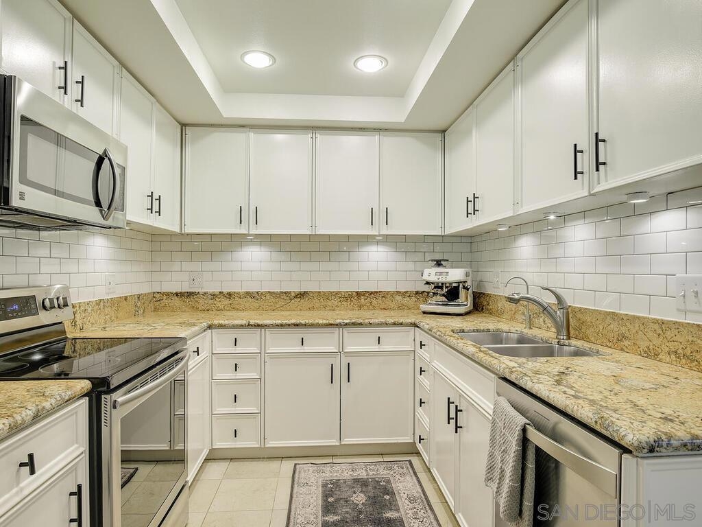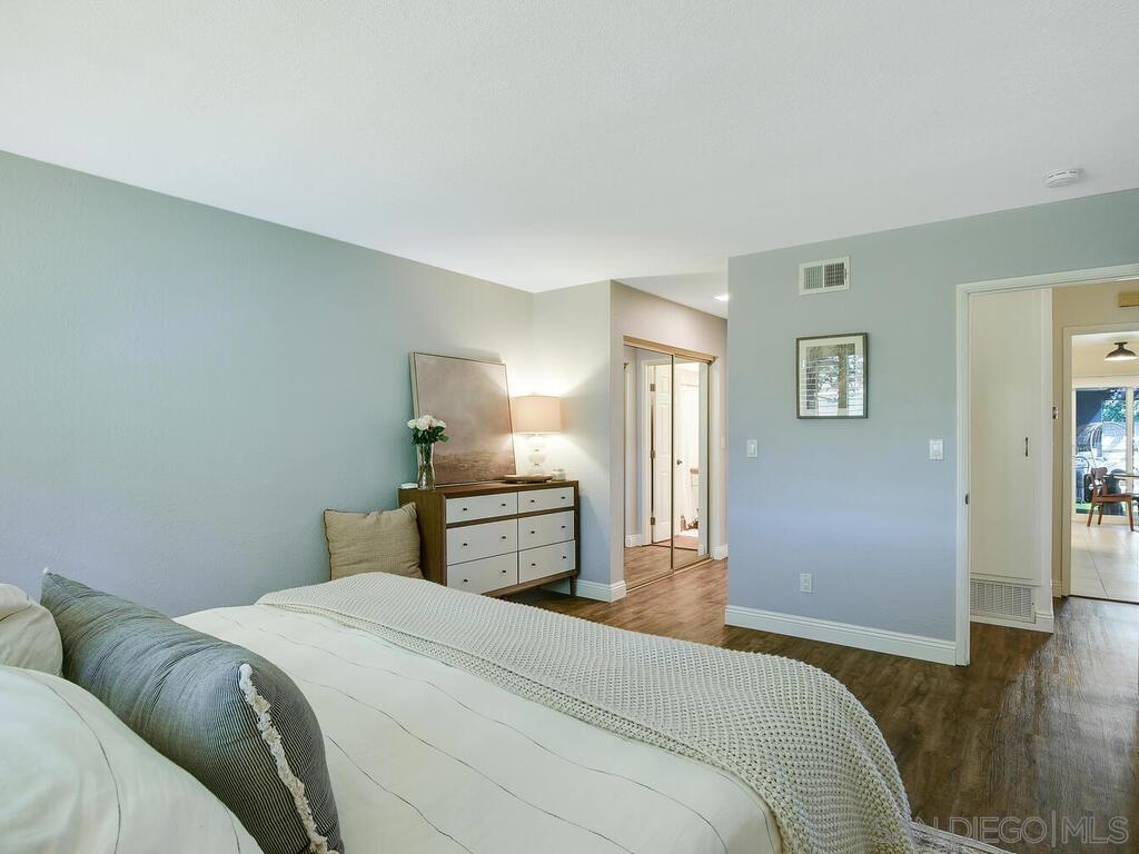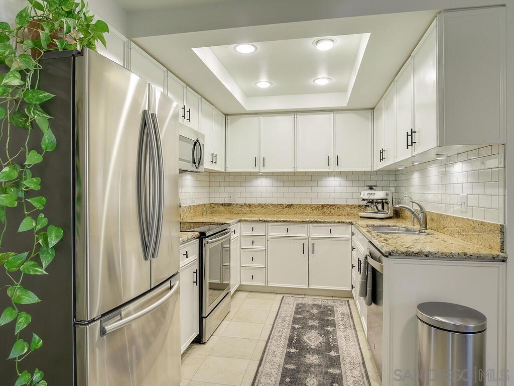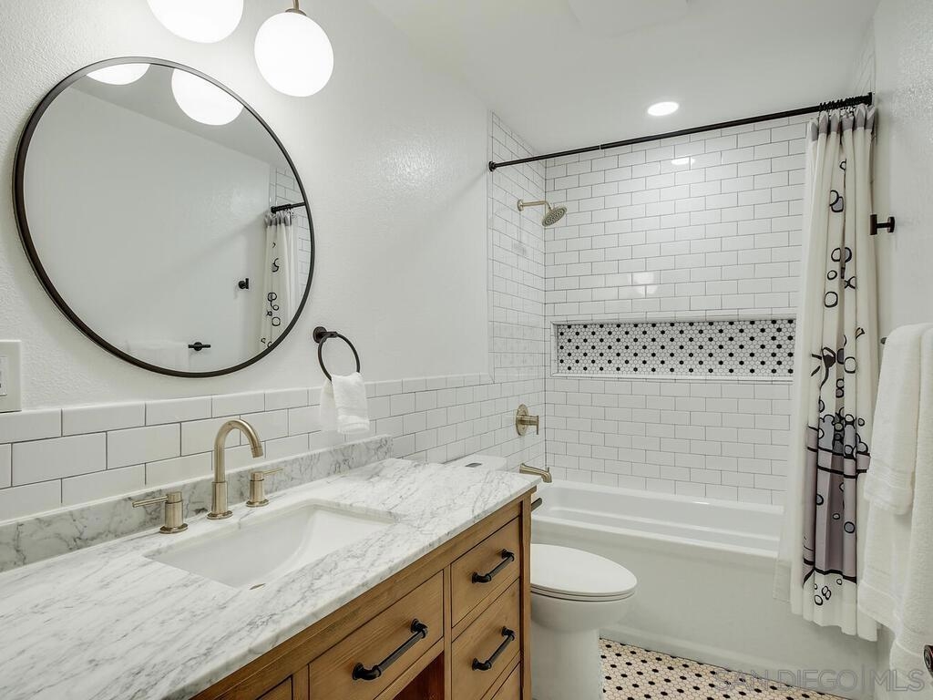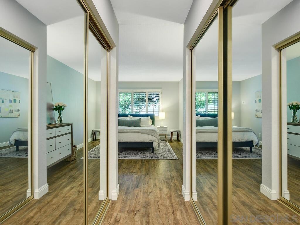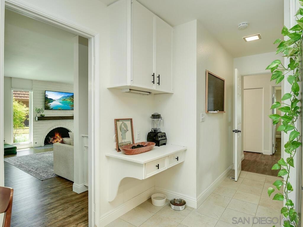 Beautifully renovated single story end unit in a superb location within Collwood Park. Over $49,000 in quality upgrades. Light filled with windows on 3 sides, it feels like a house. Mid Century modern living room/dining room opens to the huge fully enclosed patio. Kitchen w/granite counters & stainless appliances. Direct entry garages, newer AC, furnace, & water heater. Upgrades: Milgard dual pane windows and sliders, Bali shades, designer gas fireplace, new 2nd bathroom, Tesla charger, electrical panel, AwnTex 160 canopy. Outside permit parking space for 3rd car may be granted by HOA at no cost when both garage spaces are occupied by the unit owners cars registered at the unit. SEE DOCUMENTS TAB for list and cost of upgrades by current owner.. Solar Panel permit for NEM 2.0 has been obtained and my be transferred to new owners. Installation requires HOA approval. Water conditioning unit may also be available. Collwood Park is an established community with over 13 acres of lush landscaping, gorgeous walking trails and 3 pools (1 heated all year) 2 spas. Minutes to beaches, Downtown, and all that San Diego has to offer.
