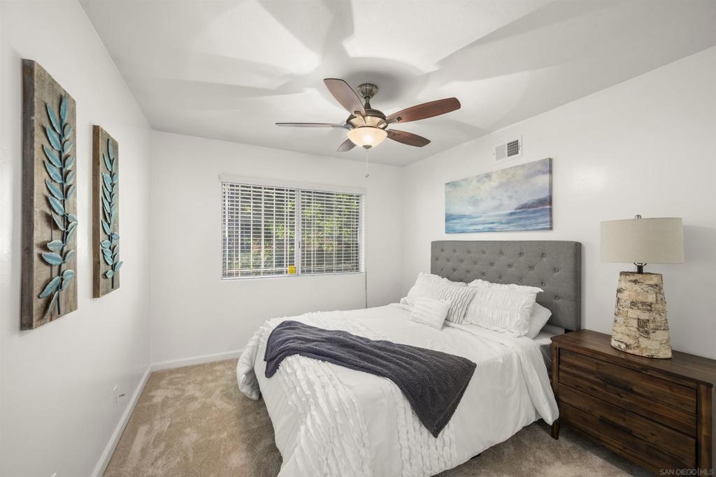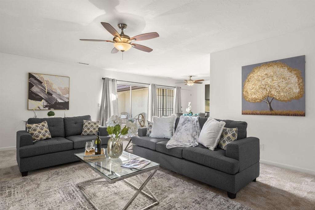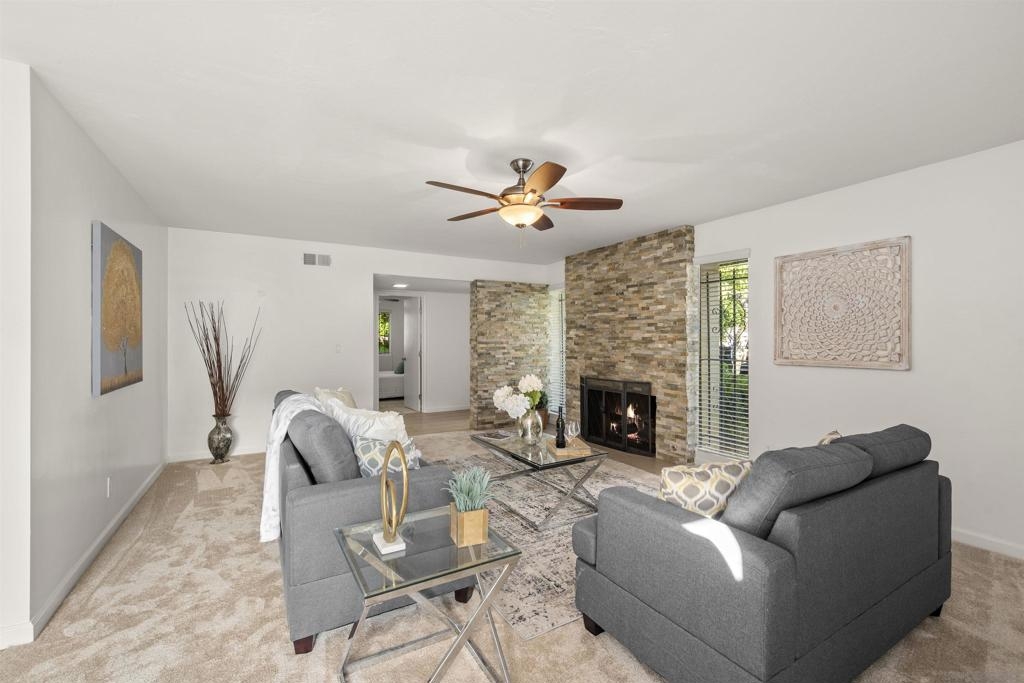 Welcome to this charming single-story corner unit in the highly sought-after Collwood Park community. Nestled in a serene canyon, Collwood Park offers a peaceful retreat while still being conveniently close to SDSU, shopping, and major freeways. This beautifully maintained home boasts new carpet, fresh paint, ceiling fans throughout, A/C, and an updated kitchen and bathrooms. Enjoy a spacious open-concept living area, highlighted by a stunning stone fireplace and two single-car garages. The living room flows seamlessly into a large private courtyard, perfect for pets or entertaining guests. The remodeled bathrooms feature stone vanities, glass shower doors, and solar tubes for plenty of natural light. The complex offers walking trails, three pools, spas, and a clubhouse, plus FHA & VA approved! Come see it for yourself—you won’t be disappointed!
