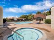 Truly fantastic price for this big, completely renovated Mid-Century Modern townhouse. It features a beautifully redesigned kitchen w/quartz counter tops, stainless appliances, huge pantry, storage galore and one of a kind custom breakfast booth. The owners also created a mini family room off the kitchen. Gorgeous remodels of both the upstairs Primary and the Hall bathroom. The open floor plan provides a wonderful flow into the outdoor atrium patio. Custom slate tile, water resistant laminate and designer colors. Newer HVAC and hot water heater. 26 acres of lush landscaping surround you & there are 3 pools, 2 spas& walking paths for people and pets. 2 car garage & extra space w/permit. Superb location in the complex. Complex Features: , Equipment: Dryer,Garage Door Opener, Washer Sewer: Sewer Connected Topography: LL,GSL