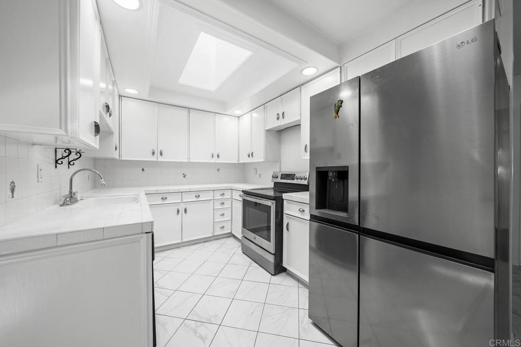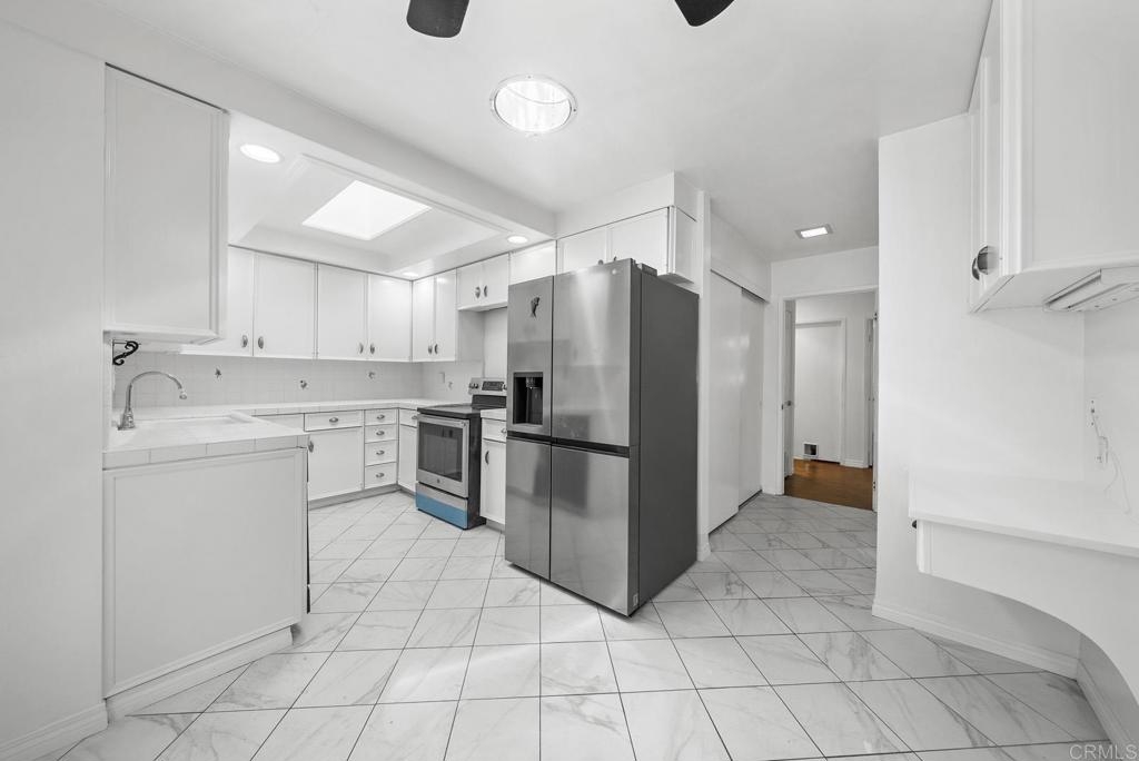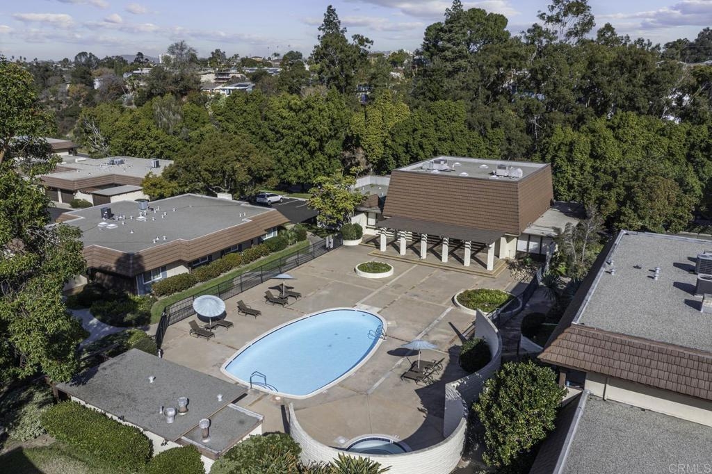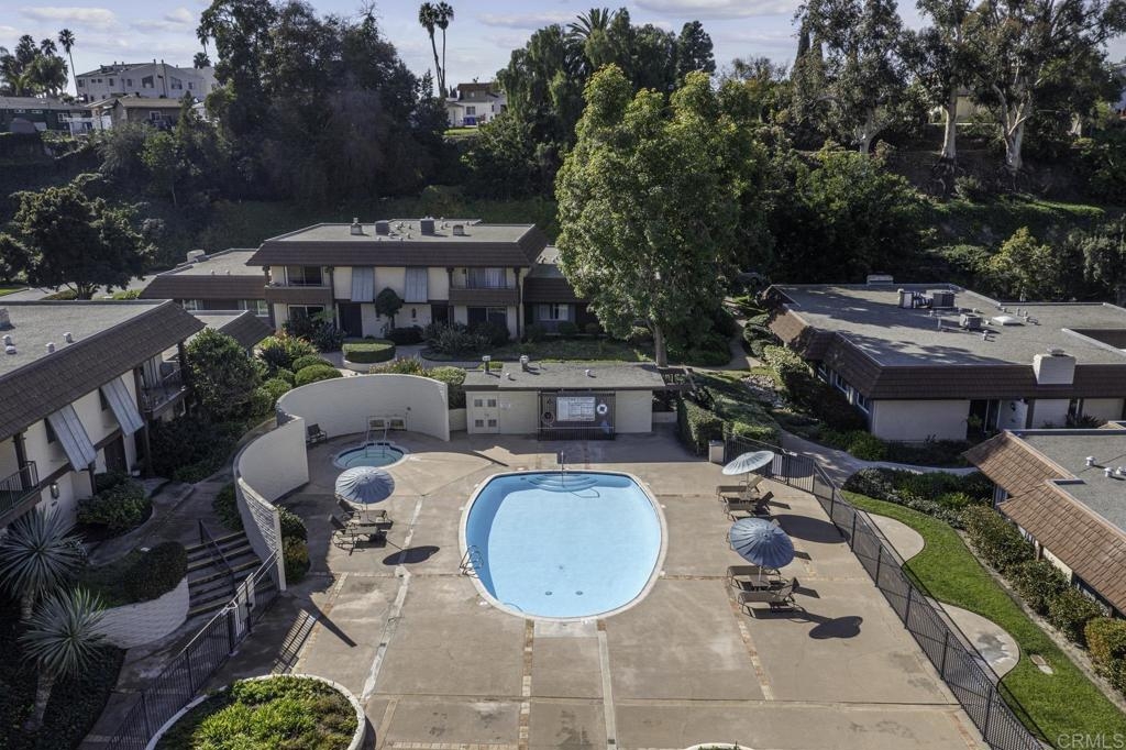 Single Story townhome located in a great complex with 2 single car attached garages with one having direct access to your home! This end unit is the perfect blend of mid-century modern architecture and modern conveniences such as stainless-steel appliances, central A/C and heat, wood laminate and tile flooring, plus bonus office/work room. The spacious living room features a lovely fireplace- just in time for the upcoming chilly nights. The large sliding glass door in the dining room opens to your private patio which is the perfect place to entertain, BBQ, or soak up the sun. Large master bedroom features dual closets and on-suite bathroom. Additional closets in the hallway provide abundant storage. Light and bright kitchen w white cabinets & Skylight that brings lots of natural light into the home. The one-car garage with direct entrance into the home offers access to your full-size washer/dryer setup! Collwood Park is a lovely complex with 3 pools, 2 spas, a sauna room, and mature landscaping giving the community a park-like feel. It is conveniently located to shopping, dining, SDSU, and I-8.