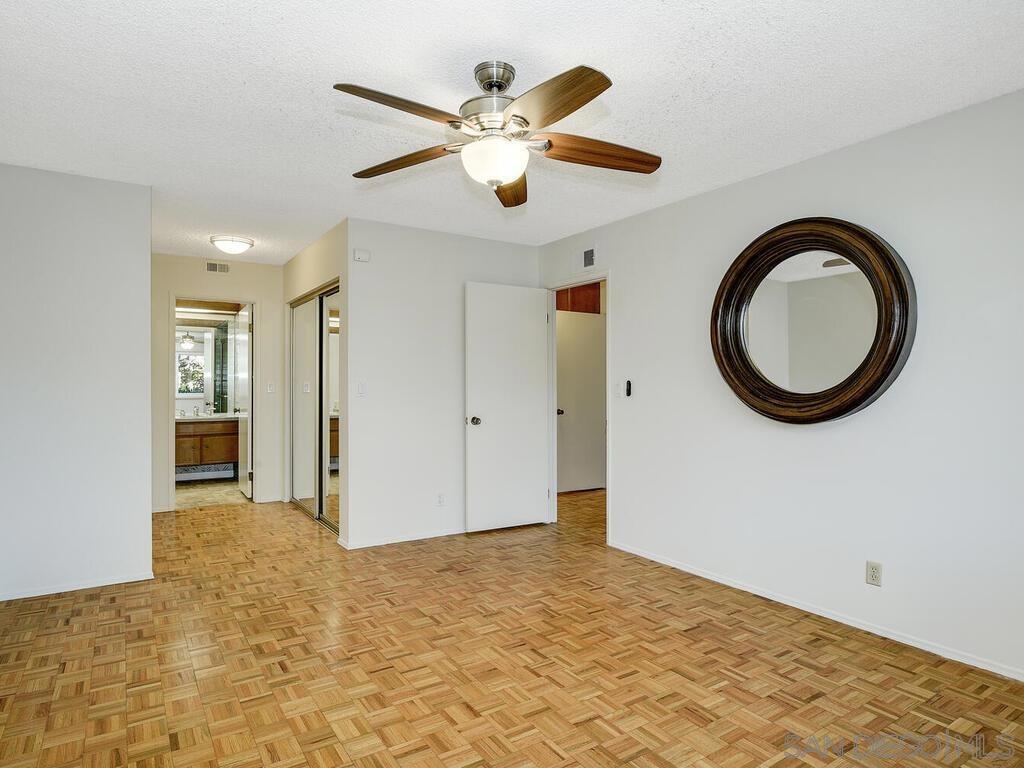 Beautifully maintained & updated single story end unit w/real Mid Century Modern style. Newer dual pane windows and sliders, kitchen w/granite counter tops & stainless appliances, newer AC, furnace, water heater, bathroom fixtures. Original wood paneling, regrouted tiles & cabinets, gleaming oak parquet flooring & custom wood shutters. Light filled w/windows on 3 sides, it feels like a house. Great indoor/outdoor flow from living room to the huge fully enclosed patio. Direct entry garage with no steps, extra parking is available w/approved permit. Excellent, peaceful location with gorgeous landscaping around the unit. Collwood Park is an award winning community with 3 pools(1 heated all year), a large clubhouse, 2 spas, and almost 26 acres of beautiful grounds and extensive walkways. The parklike atmosphere and make it ideal for strolling, exercise and pets. This is also a wonderful central location just minutes to downtown, the beaches, SDSU and great shopping.