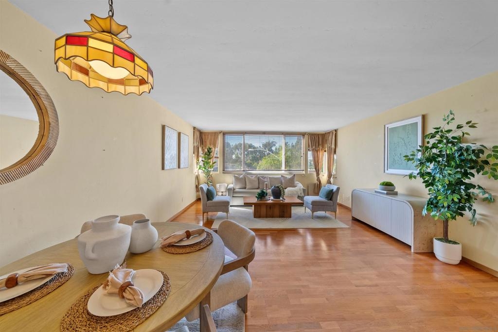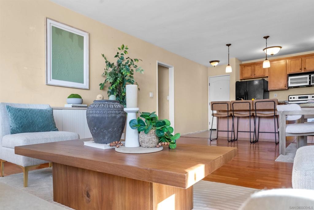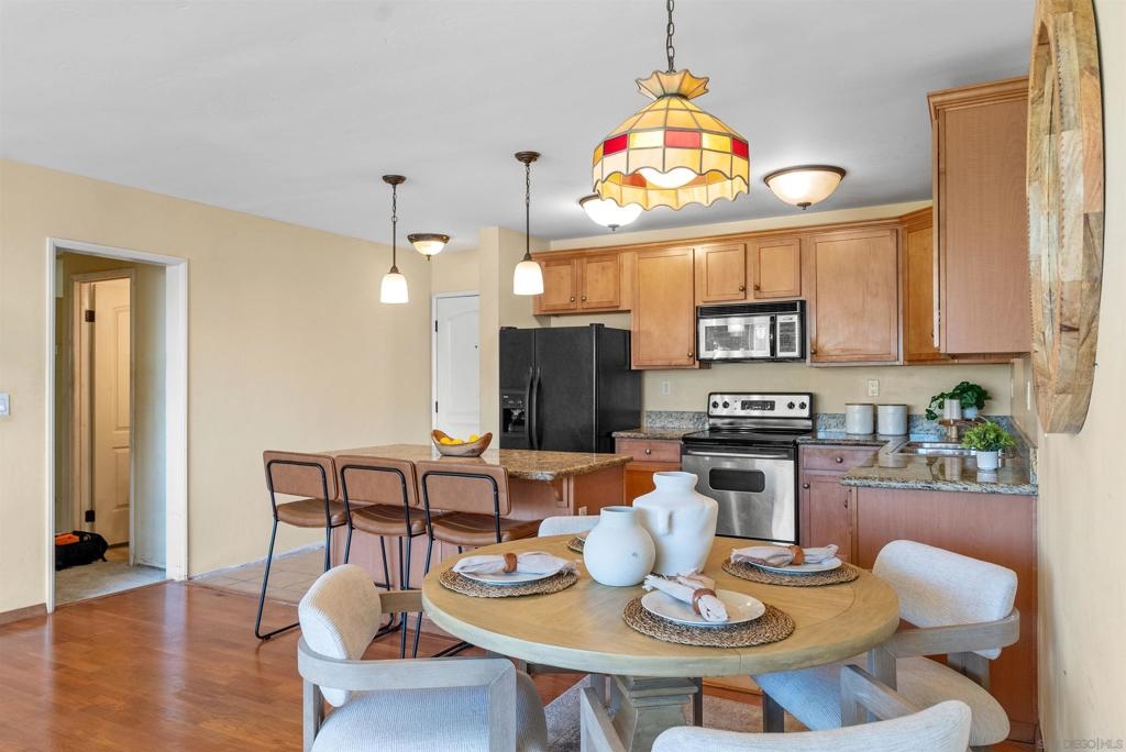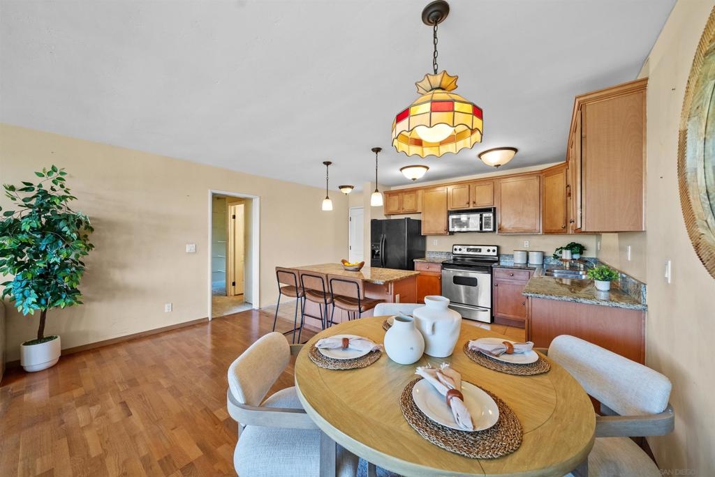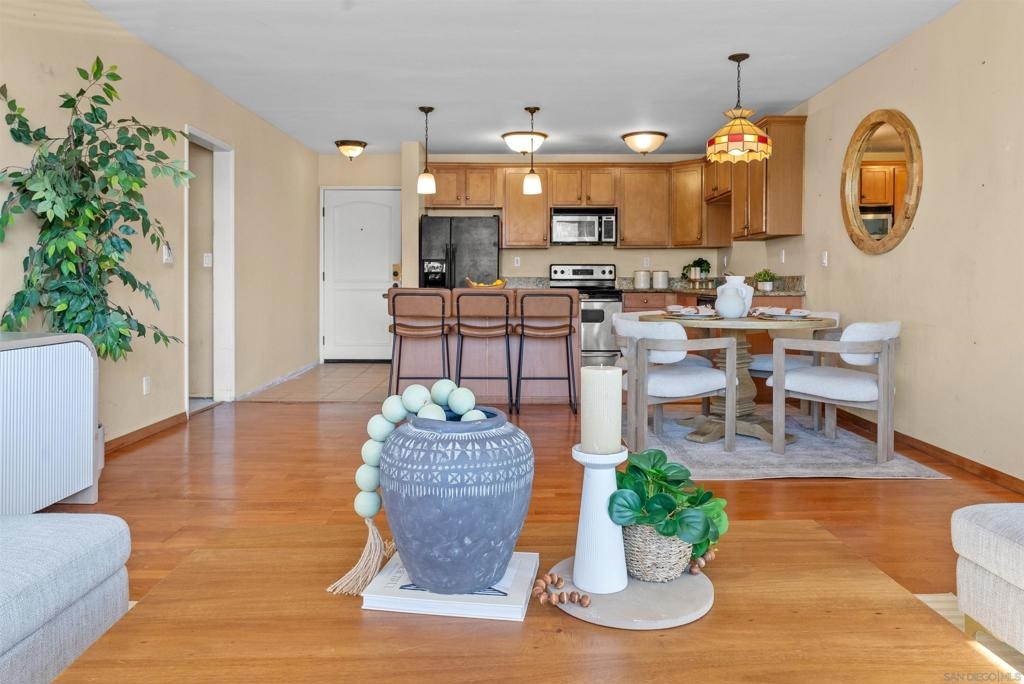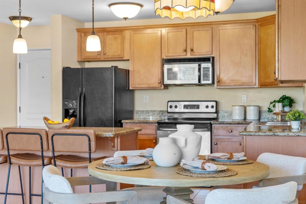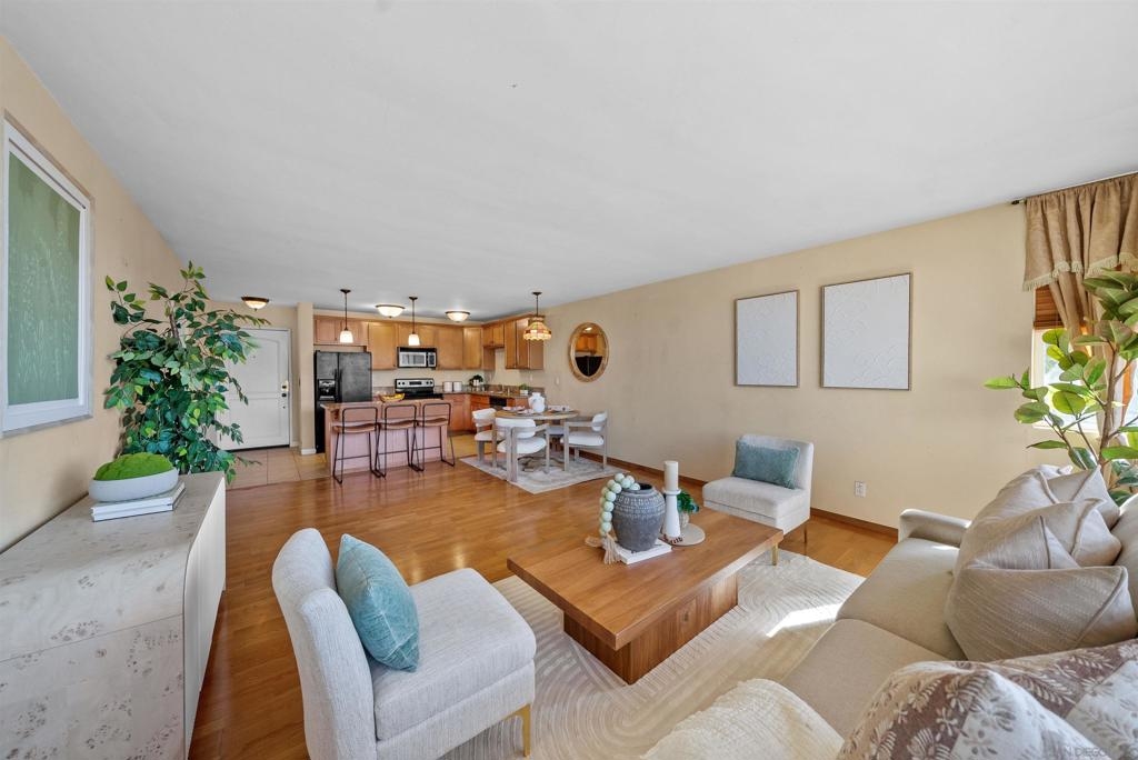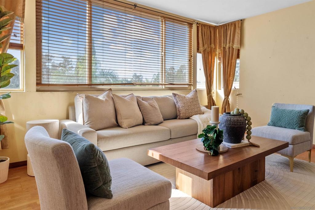 Welcome to your new home, a delightful single-story condo that combines modern flair with cozy charm. This 2-bedroom, 2-bathroom gem spans 1,005 square feet and is ready to welcome you with open arms. As you step inside, you'll be greeted by an open-concept layout that makes entertaining a breeze. The large living room is perfect for hosting game nights or simply lounging with a good book. Its seamless flow into the kitchen means you can keep the conversation going while you whip up your favorite dishes. The primary bedroom is a spacious retreat, offering plenty of room for your king-sized bed and more. It's your personal oasis for unwinding after a long day, complete with an en-suite bathroom that promises a spa-like experience. The second bedroom is versatile and inviting, ideal for guests or setting up a home office. Both bathrooms are full-sized, ensuring you can start your day without any hassle. Whether you're indulging in a long soak or getting ready for a night out, these bathrooms are designed for comfort and style. Nestled in the vibrant city of San Diego, this condo is more than just a place to live—it's a place to thrive. Don't miss your chance to call it home!