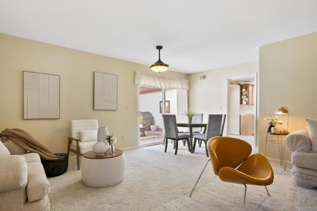 Tucked away in the desirable Talmadge community, 4622 Collwood Lane offers a rare blend of privacy and convenience. Backing to a peaceful green canyon with no neighbors or pathways behind, this single-level home provides a serene retreat just minutes from downtown San Diego. With only one shared wall, three spacious freshly painted bedrooms, and a thoughtful open layout, it balances modern comfort with a sense of calm and seclusion. Inside, the open floor plan seamlessly connects the updated kitchen, dining, and living areas—perfect for both everyday living and entertaining. The kitchen features abundant storage, while the living room is anchored by a cozy fireplace and filled with natural light from double-pane windows. Beautifully updated bathrooms and plentiful storage throughout add to the home’s appeal. A private patio creates the ideal setting for outdoor dining or relaxation, with direct access from one of the home’s two attached garages—offering both convenience and extra storage. Collwood Park is a low-density community spanning 26 acres, offering 3 large pools (one heated year-round), 2 spas, a clubhouse, walking paths, and lush landscaped grounds. It’s the perfect setting for residents who want both relaxation and recreation right outside their door. Located in a quiet hillside enclave, this property offers tranquility while still being just minutes from SDSU, major freeways, restaurants, shops, and downtown San Diego. Don’t miss the opportunity to call this charming Talmadge property your own—a private retreat in the heart of San Diego living.