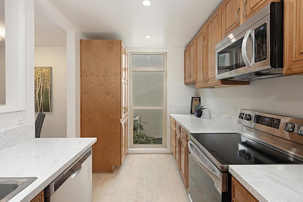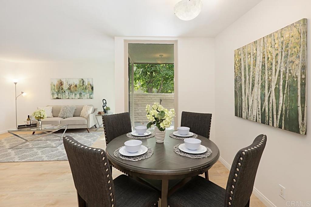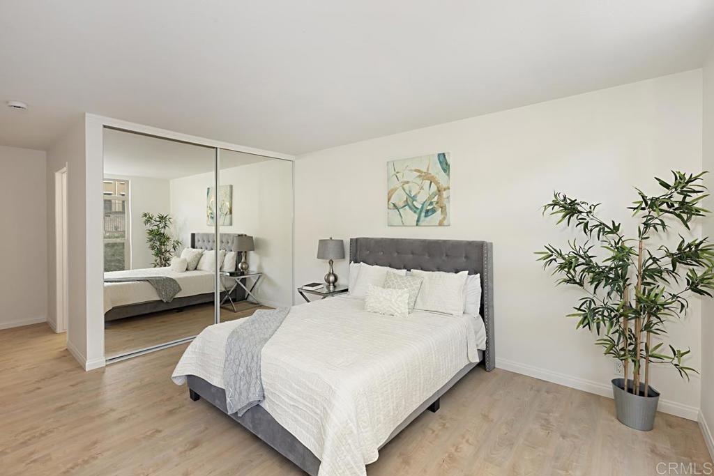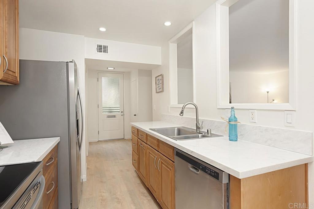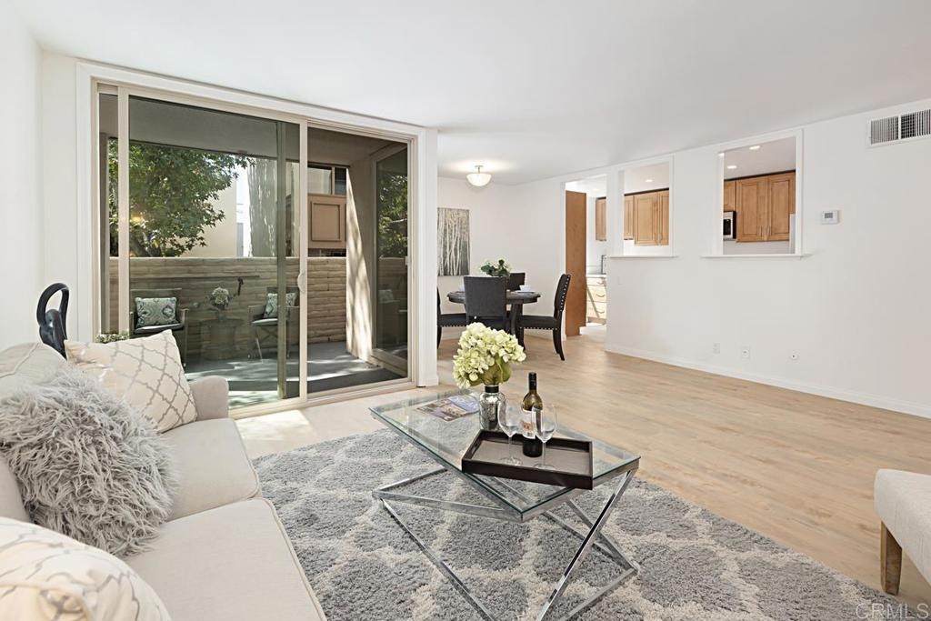 Fabulous Buy! Single level ground floor Condo surrounded by Beautiful Landscaping in Secure Gated Community! This Beauty is Bright with Natural Light & has NEW: Luxury Vinyl flooring, paint throughout, Range, White Quartz Kitchen Counter tops, updated Bathrooms. Come See super clean unit with Newer Dual pane windows, Microwave, Dishwasher & refrigerator. Outside refreshing pool with hot tub is very close by. Then see huge BONUS' this corner unit has: enclosed patio with gate for relaxing & inside home a private balcony outside primary bedroom. Covered parking space with storage cabinet plus extra space with pass round out this Rare to find Unit. Outstanding Investor starter or addition for equity growth portfolio opportunity & perfect for first time buyer or retiree. Great unit near SDSU for quiet classwork studying & seeing unlimited events of your choice.