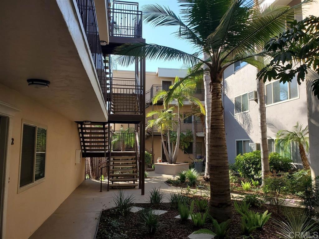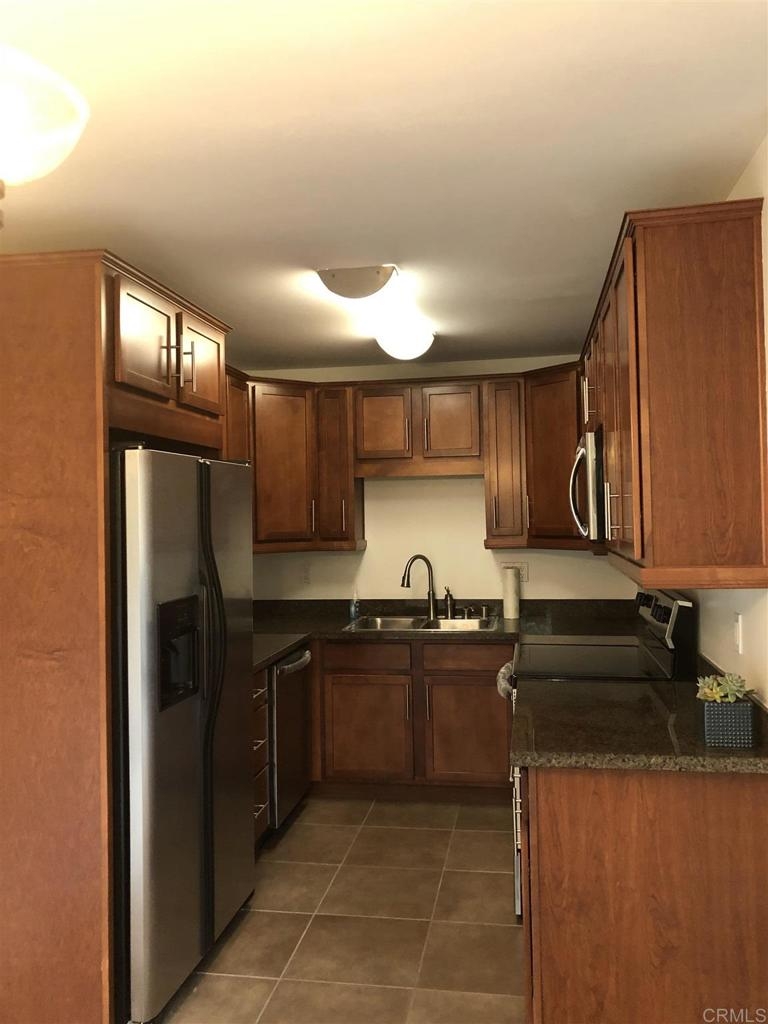 Large one bedroom second floor with upgrades including new white paint, new carpet, new stainless steel dishwasher, microwave and stove. New ceiling fans and bathroom lighting. Condo has a stacked 220 washer and dryer, all granite countertops, one assigned parking space right by the entry gate, and a deeded storage room approximately 5x5. Lush view of bamboo from the windows. Smaller complex with a pool. Great location close to to SDSU and easy freeway access.