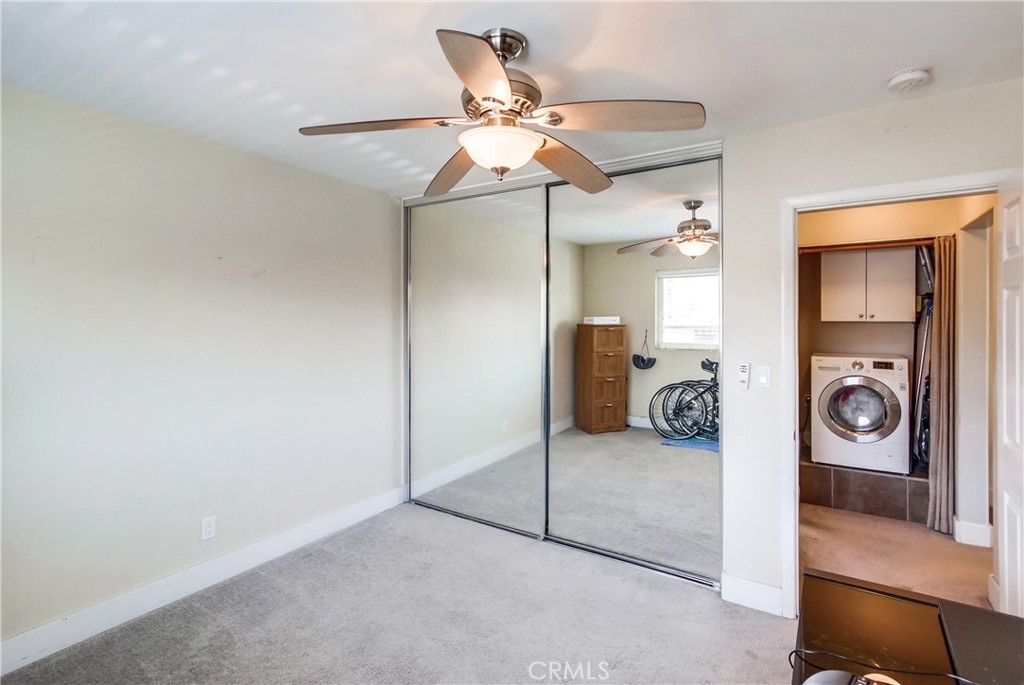 Light and Bright, upgraded Two-Bedroom, Two-Bath condo with garden view and a storage room. This second-floor unit has a split-floor plan with an extra window in the kitchen and bedrooms and bathrooms on opposite sides. This open-floor plan has tastefully done upgrades including newer carpets and tile, upgraded fixtures, newer stainless-steel appliances, wood blinds, ceiling fans in bedrooms and convenient all-in-one washer and dryer combo in the hall closet creating a cozy and comfortable environment. Close to SDSU, shopping, dining, and entertainment. The upgraded, Spanish-style building has newer paint, lush tropical gardens, a refinished community pool, stairs and an elevator for ultimate functionality.