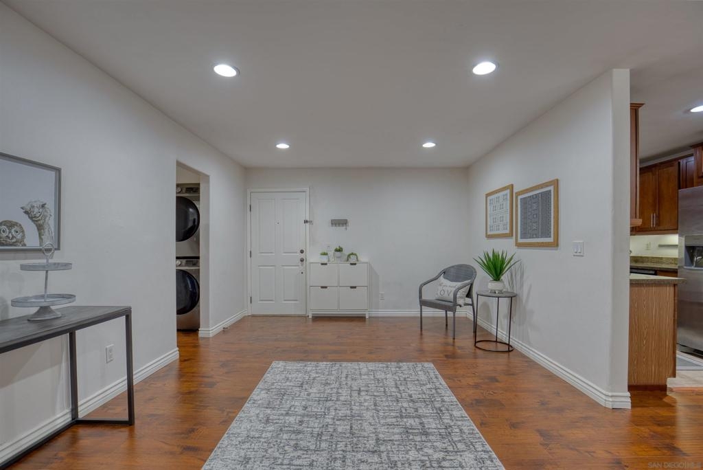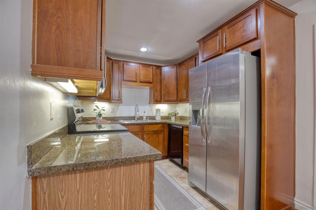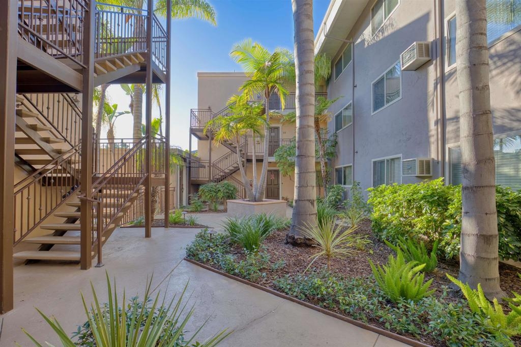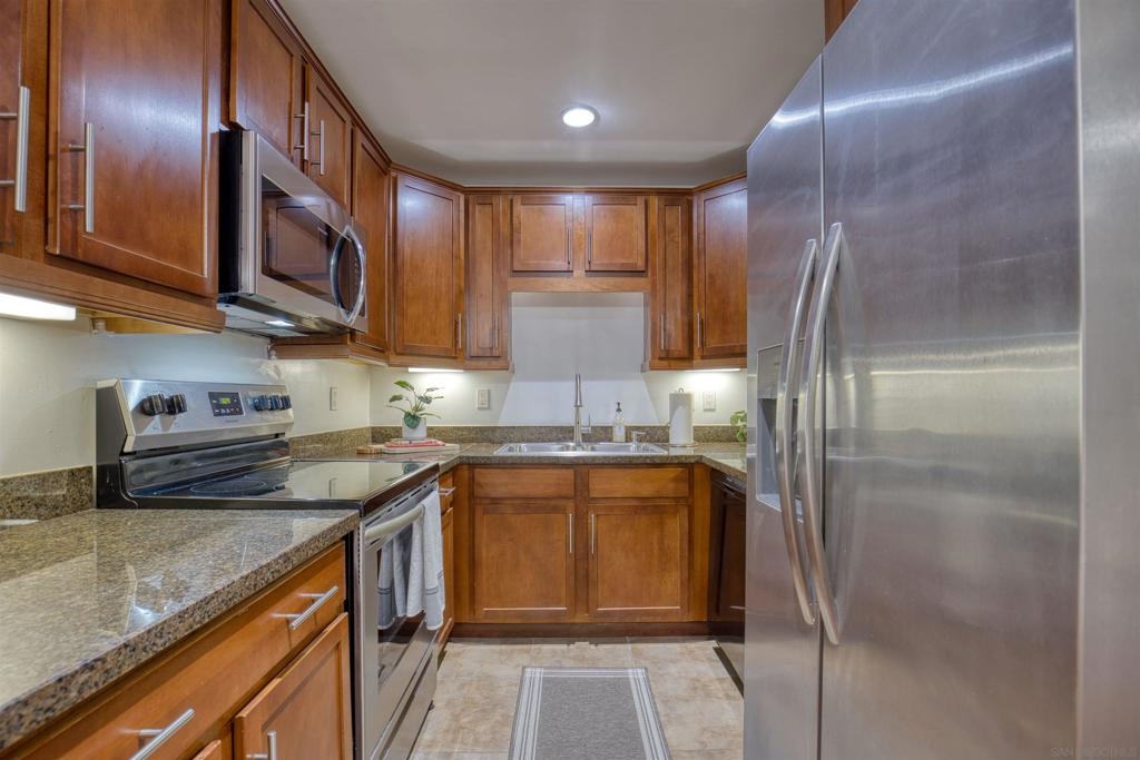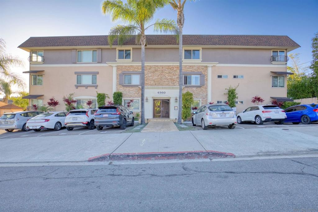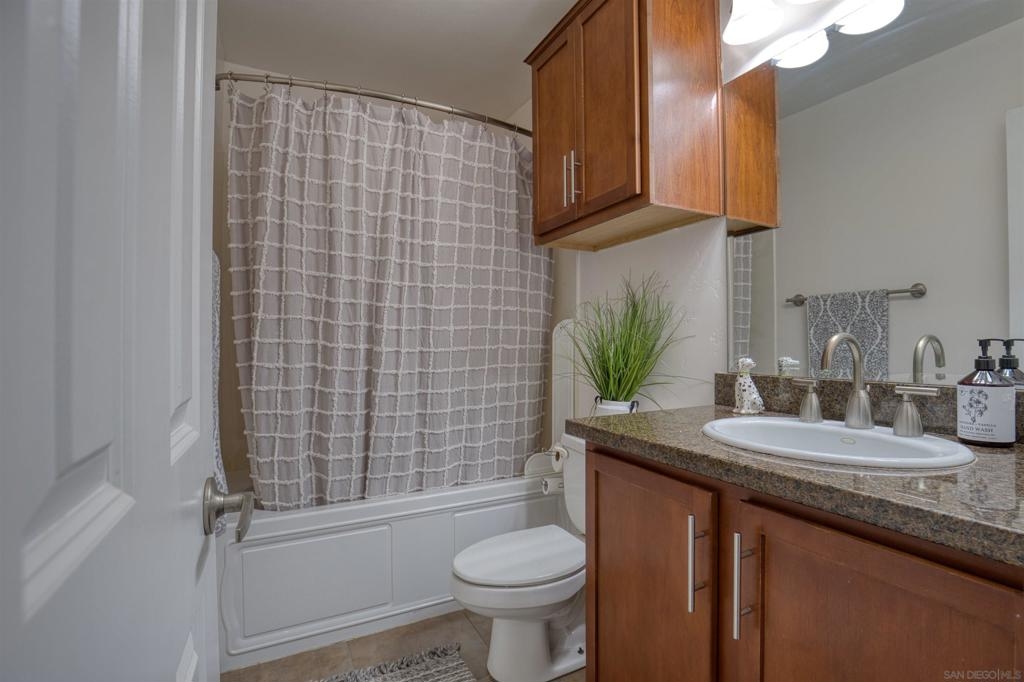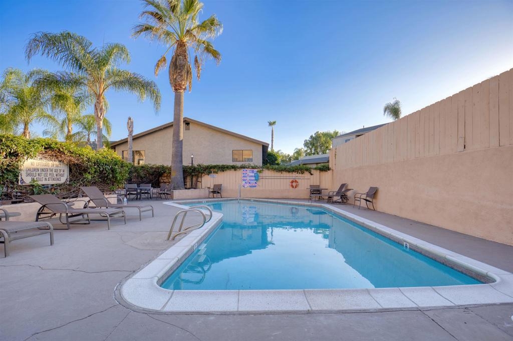 Welcome to this beautiful starter home centrally located in the College area. This floorplan is ideal for roommates with each private bedroom and bath separated by the common area. Spacious living room with recessed lighting perfect for entertaining. Separate dining room will accommodate a full size table. Granite counters in kitchen with stainless steel appliances. Full size washer/dryer in unit. Primary bedroom with ensuite. Second bathroom includes shower/tub combo. Ceiling fans in both bedrooms. Gated community with assigned parking spot right next to entry. Light and bright landscaped courtyard + community pool. 4 x 4 Storage #H included. Water, trash, sewer & common ground maintenance included with HOA. Close to SDSU, shopping, restaurants and freeway access. Clean condo ready for move-in. Spacious living room with recessed lighting perfect for entertaining. Separate dining room will accommodate a full size table. Granite counters in kitchen with stainless steel appliances. Full size washer/dryer in unit. Primary bedroom with ensuite. Second bathroom includes shower/tub combo. Ceiling fans in both bedrooms. Gated community with assigned parking spot right next to entry. Light and bright landscaped courtyard and community pool. Close to SDSU, shopping, restaurants and freeway access. Clean condo ready for move-in. Extra 4x4 storage unit, water, trash, sewer and common area maintenance included with HOA