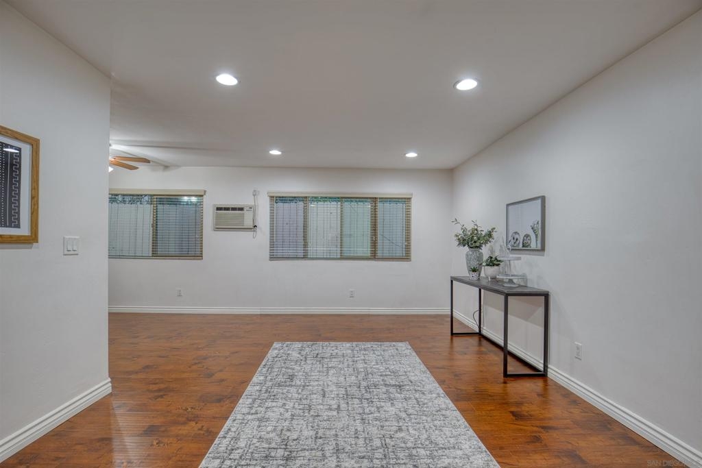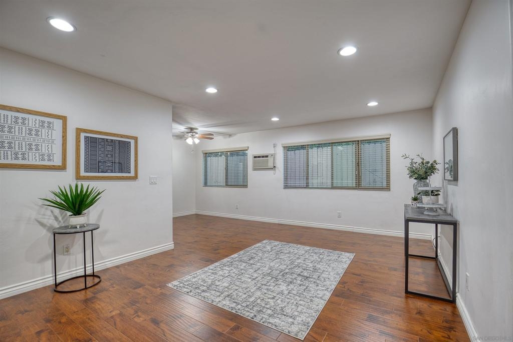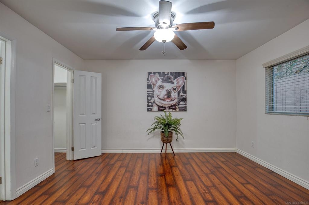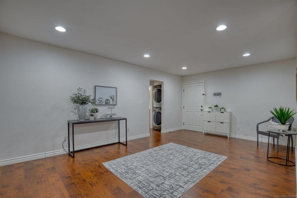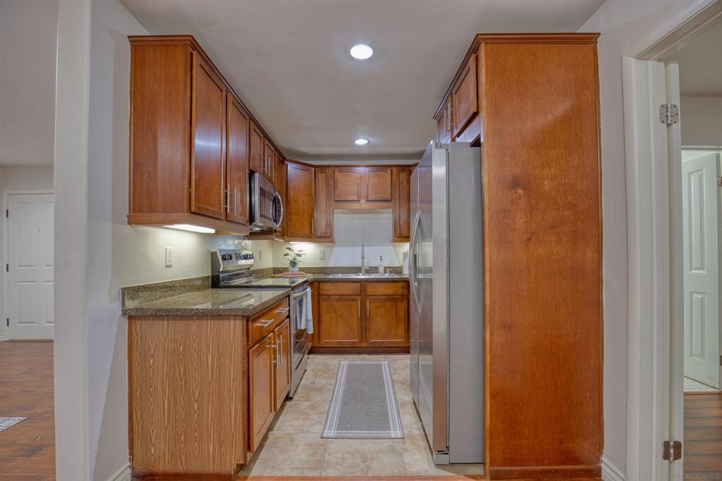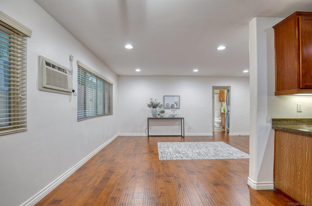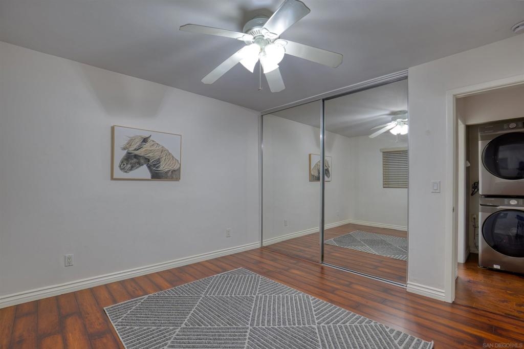 Welcome to this beautiful starter home centrally located in the College area. This floorplan is ideal for roommates with each private bedroom and bath separated by the common area. Spacious living room with recessed lighting perfect for entertaining. Separate dining room will accommodate a full size table. Granite counters in kitchen with stainless steel appliances. Full size washer/dryer in unit. Primary bedroom with ensuite. Second bathroom includes shower/tub combo. Ceiling fans in both bedrooms. Gated community with assigned parking spot right next to entry. Light and bright landscaped courtyard + community pool. 4 x 4 Storage #H included. Water, trash, sewer & common ground maintenance included with HOA. Close to SDSU, shopping, restaurants and freeway access. Clean condo ready for move-in. Spacious living room with recessed lighting perfect for entertaining. Separate dining room will accommodate a full size table. Granite counters in kitchen with stainless steel appliances. Full size washer/dryer in unit. Primary bedroom with ensuite. Second bathroom includes shower/tub combo. Ceiling fans in both bedrooms. Gated community with assigned parking spot right next to entry. Light and bright landscaped courtyard and community pool. Close to SDSU, shopping, restaurants and freeway access. Clean condo ready for move-in. Extra 4x4 storage unit, water, trash, sewer and common area maintenance included with HOA