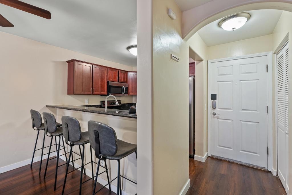 Welcome to this beautifully maintained corner unit in a desirable gated community. This spacious 2-bedroom, 2-bathroom home features an open floor plan perfect for entertaining and comfortable living. The master bedroom boasts a walk-in closet, and the living area is enhanced with recessed lighting for a modern touch. The kitchen is equipped with sleek stainless steel appliances, and the unit includes convenient in-unit laundry. Ceiling fans throughout ensure a comfortable climate, and the AC keeps you cool year-round. Enjoy the community amenities, including a refreshing pool and relaxing hot tub. Situated near shopping malls and public transportation, this home offers both convenience and a vibrant lifestyle. Perfect for first-time buyers and VA approved. Don’t miss out on this exceptional opportunity!