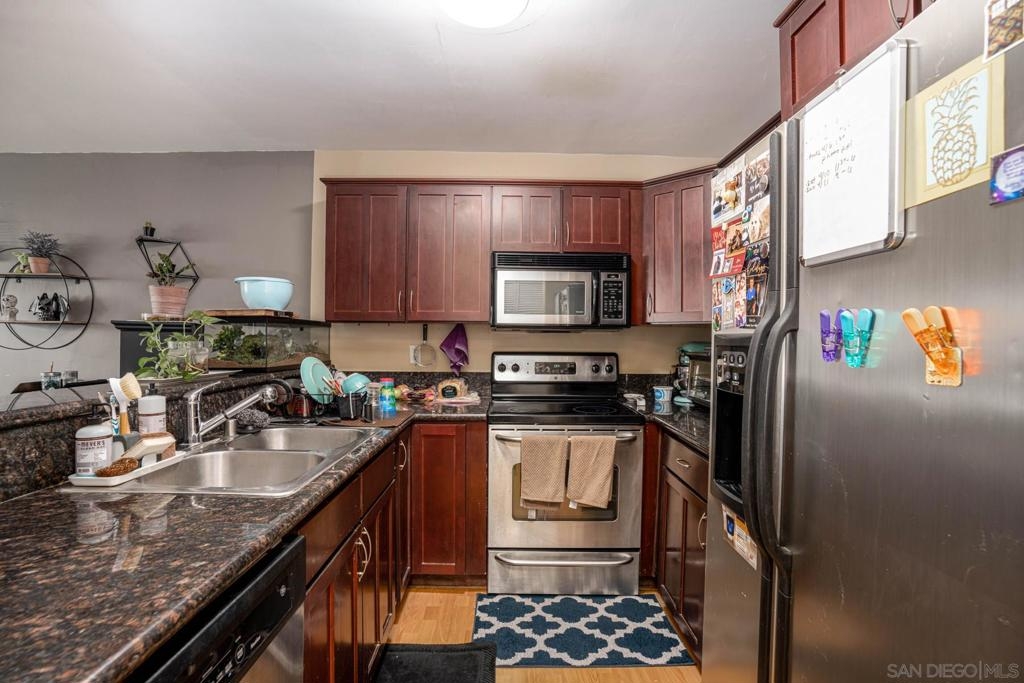 Highly desirable College area condo situated within a gated community. This 2 bedroom, 2 bathroom property features an open floor plan with a spacious living room & a master bedroom with a walk-in closet and private bathroom. Stacked washer & dryer inside of the unit. The kitchen offers cherry wood cabinets, granite countertops and stainless steel appliances. Enjoy a community pool & jacuzzi on warm San Diego days. Central location near shops, restaurants, SDSU & easy access to freeways! Complex Features: , Equipment: Dryer, Range/Oven, Washer Sewer: Sewer Connected Topography: LL