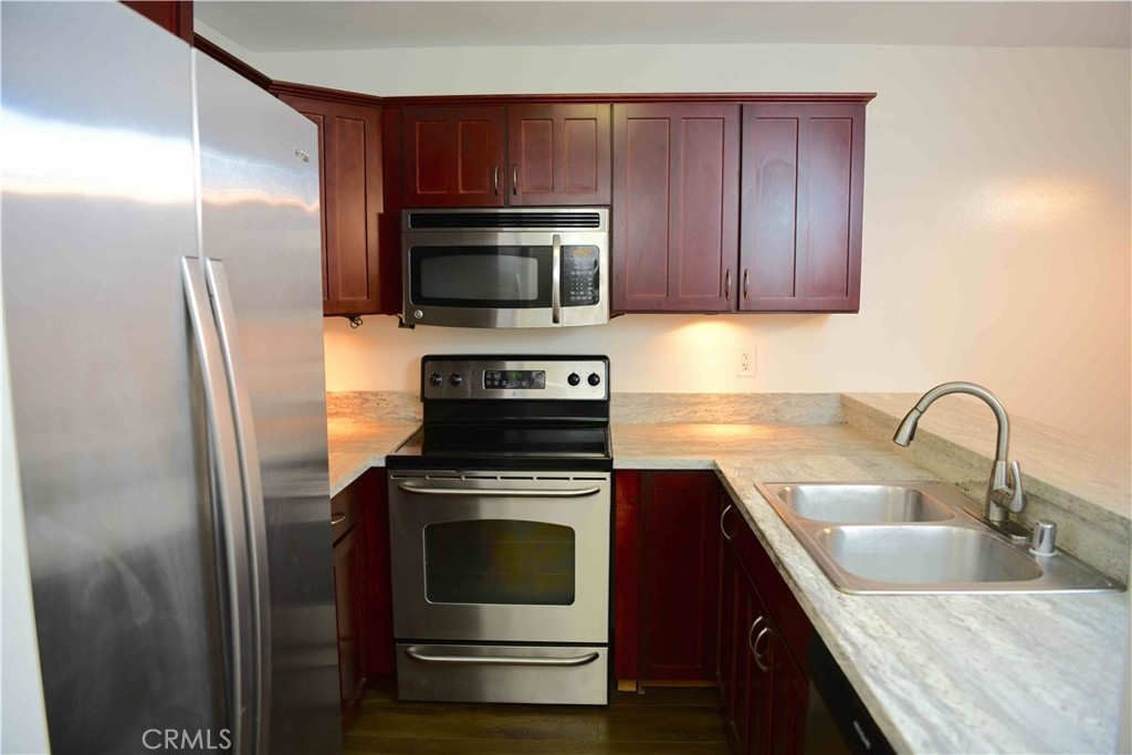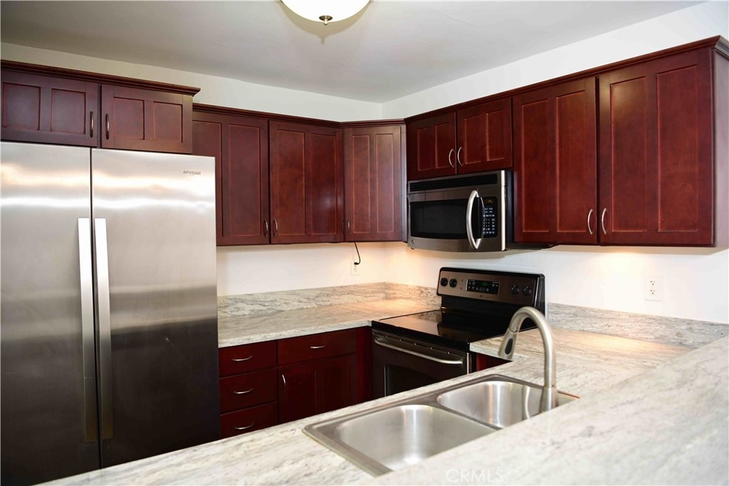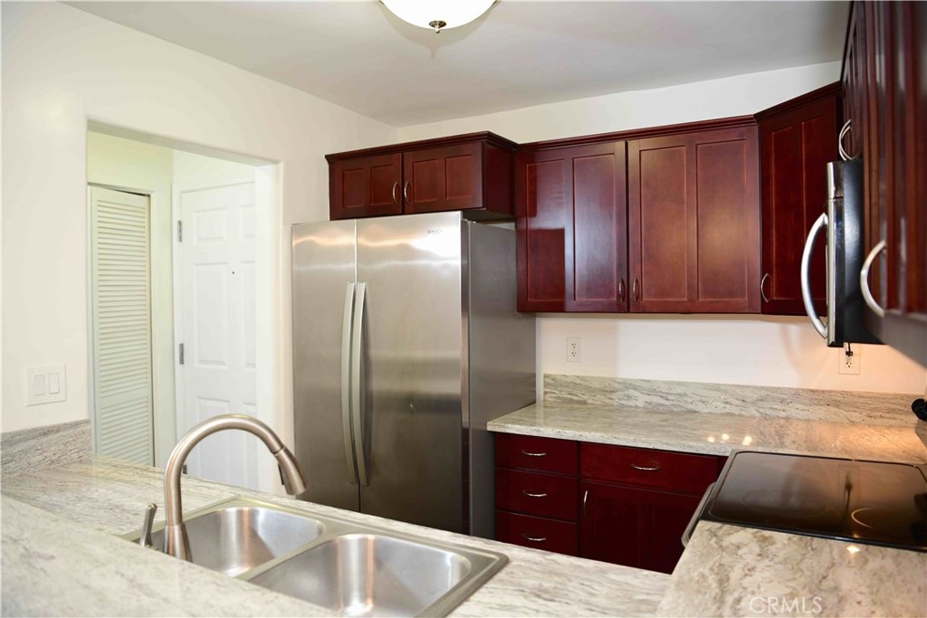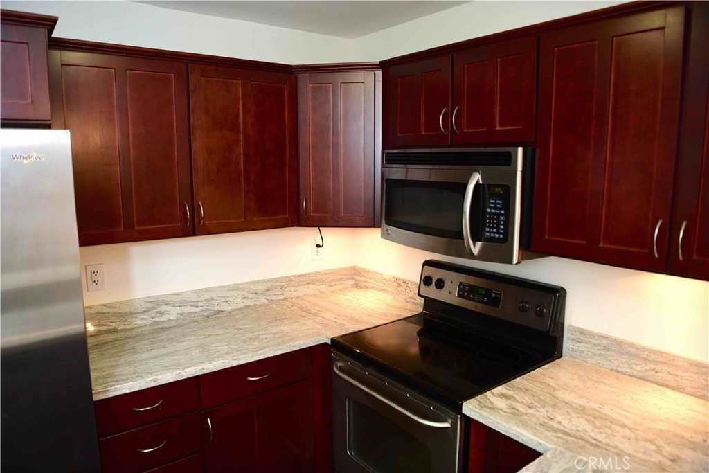 Beautiful two bedroom two bath condo in a gated community, located within the College area. Home boasts an extra-large master bedroom with en-suite bathroom. The Kitchen features granite counter tops, cherry wood cabinets, stainless steel appliances, and wood laminate flooring. Additional upgrades include plush carpeting, granite counters in both bathrooms, and a full size indoor washer and dryer. Enjoy the outdoors on the front patio or cozy balcony. Unit comes with two assigned parking spaces. Community amenities include pool, spa, and elevator. Located close to shopping, SDSU, restaurants and freeways!