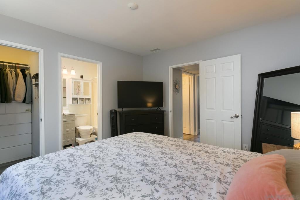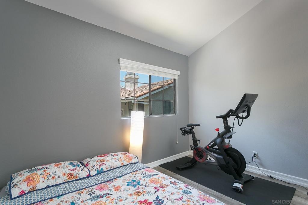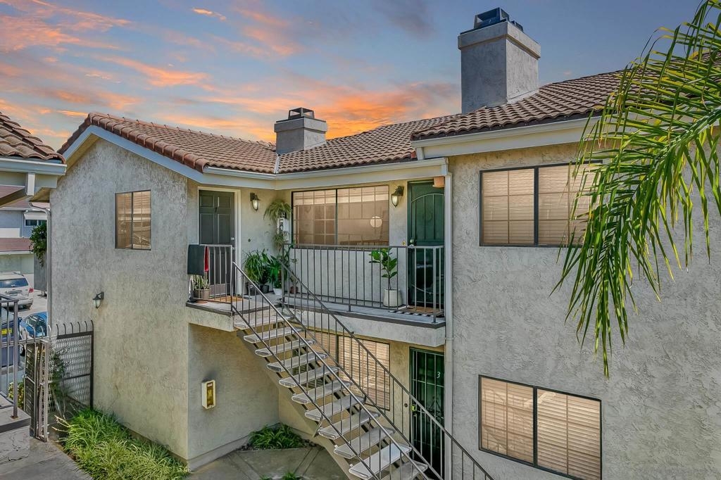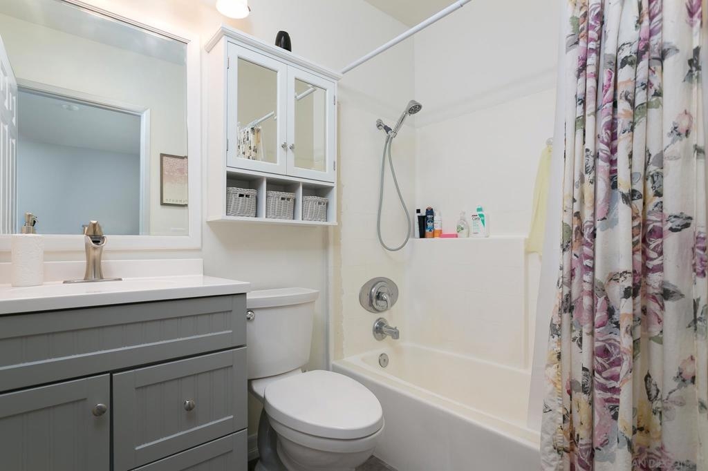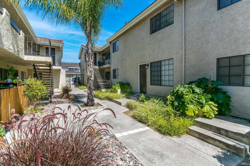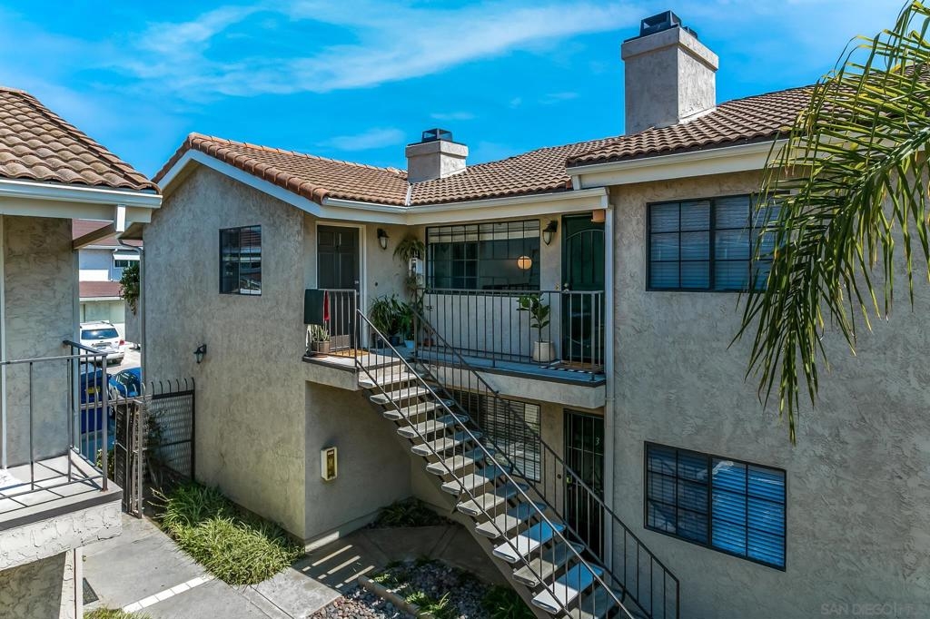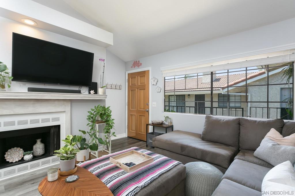 Adorable and spacious upper corner unit condo in small gated community. This 2 bedroom 2 full bathroom home features vaulted ceilings, skylights, wood-burning fireplace, and in-unit washer and dryer. Flooring has also been updated throughout with LVP, new kitchen faucet and garbage disposal, new master bathroom vanity, and new toilets. This home also features a 1 car garage plus one additional parking space. Low HOA fees include trash and water. Just minutes from SDSU and close to 8 and connecting freeways. Sewer: Public Sewer Topography: LL