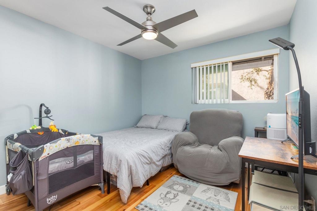VA APPROVED! Top level, single-story, end unit condominium with 3 bedrooms and only one shared wall! Boasting beautiful wood flooring throughout, neutral paint, open floor plan, and living room balcony. The living room and dining area flow seamlessly to the updated kitchen with all matching stainless steel appliances, granite countertops, tiled backsplash, and plenty of cabinetry with glass inserts. Three generously sized bedrooms are down the hall including the primary suite with attached bath. The secondary bedrooms share the hall bath. Community amenities include: 2 assigned parking spots, and sparkling pools to enjoy. Within minutes to Chollas Lake Park, College Grove shopping mall, dining, transportation, and so much more. Don't miss out! Complex Features: ,, Sewer: Public Sewer
