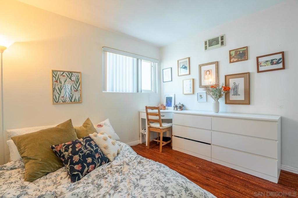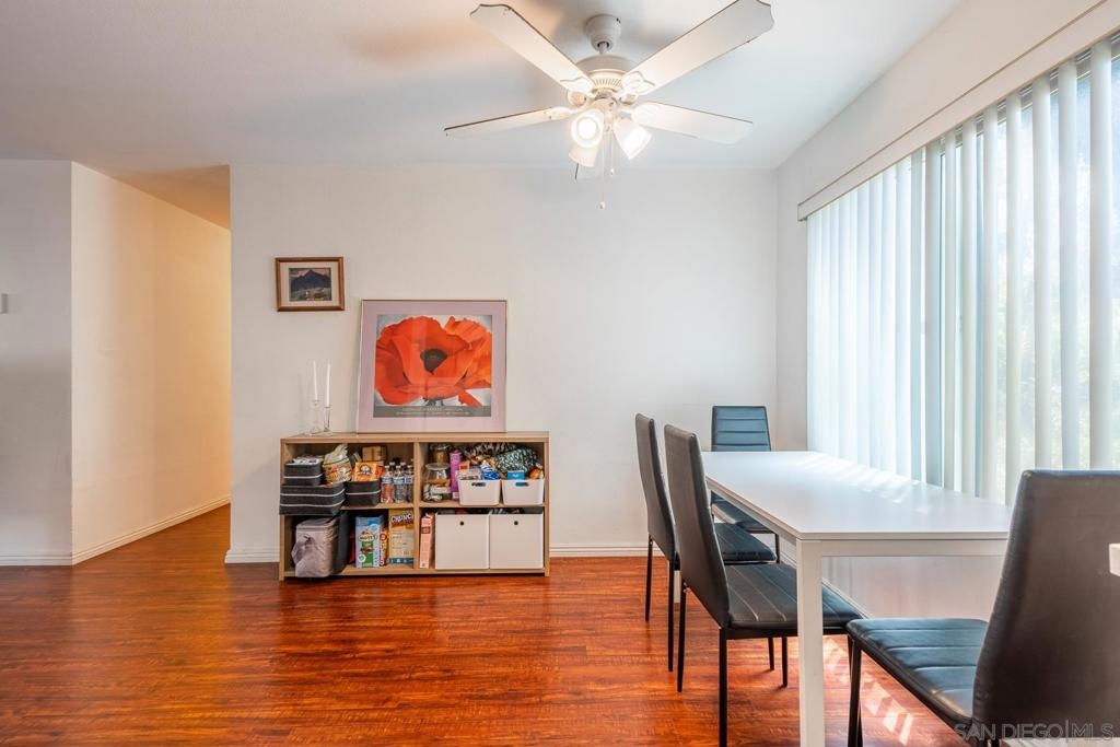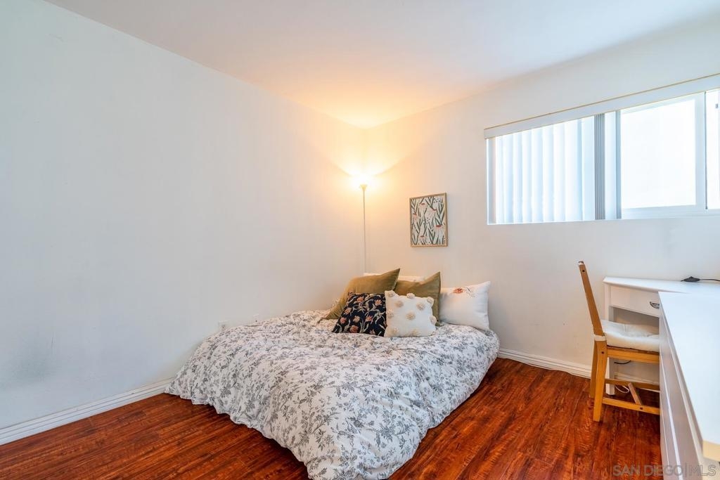 Presenting this ground level and spacious unit at Lake Park Villas community. The primary suite has a large mirrored closet doors with its own private bathroom. Light and bright; kitchen has quartz countertops, laminate flooring, enclosed patio and dual pane windows. Ideal location; off the 94 Freeway, close to shopping, parks and minutes from downtown. One assigned parking spot plus a guest space. Multiple pools and community laundry throughout the well maintained complex. This is a must see!