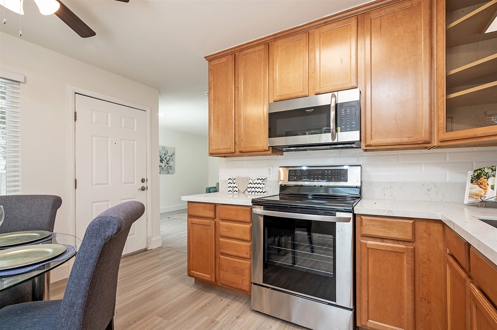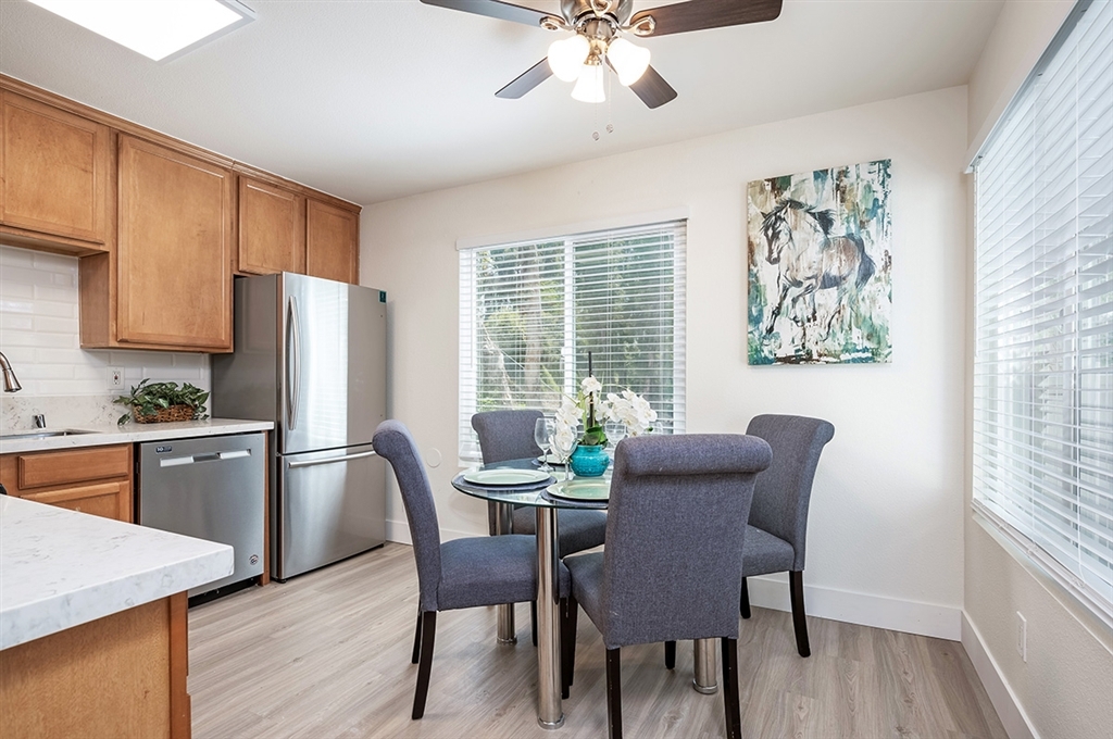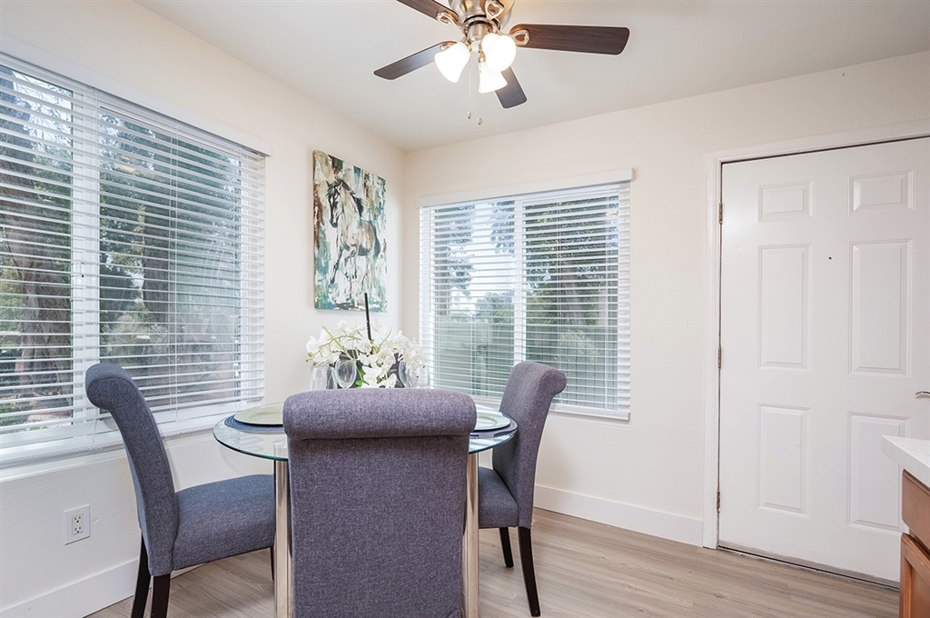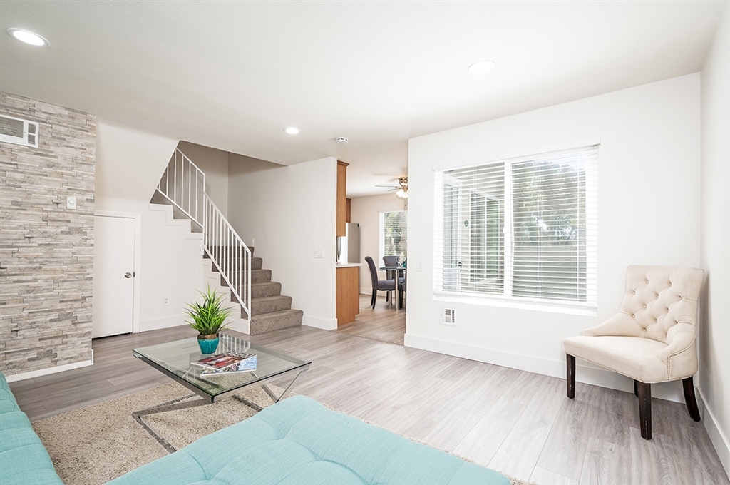 Rare corner townhome style unit! No ONe above and no one below you in this premium unit with private courtyard entry, living, kitchen and dining, and half bath downstairs, plus 2 large bedrooms and 1 full bath upstairs. This unit was recently renovated and comes with a covered parking spot, upgraded flooring, new countertops, new fixtures, new stainless steel appliances, great storage under the staircase and more! Check out the 3D tour!. Neighborhoods: College Park Gardens Other Fees: 0 Sewer: Sewer Connected Topography: LL
