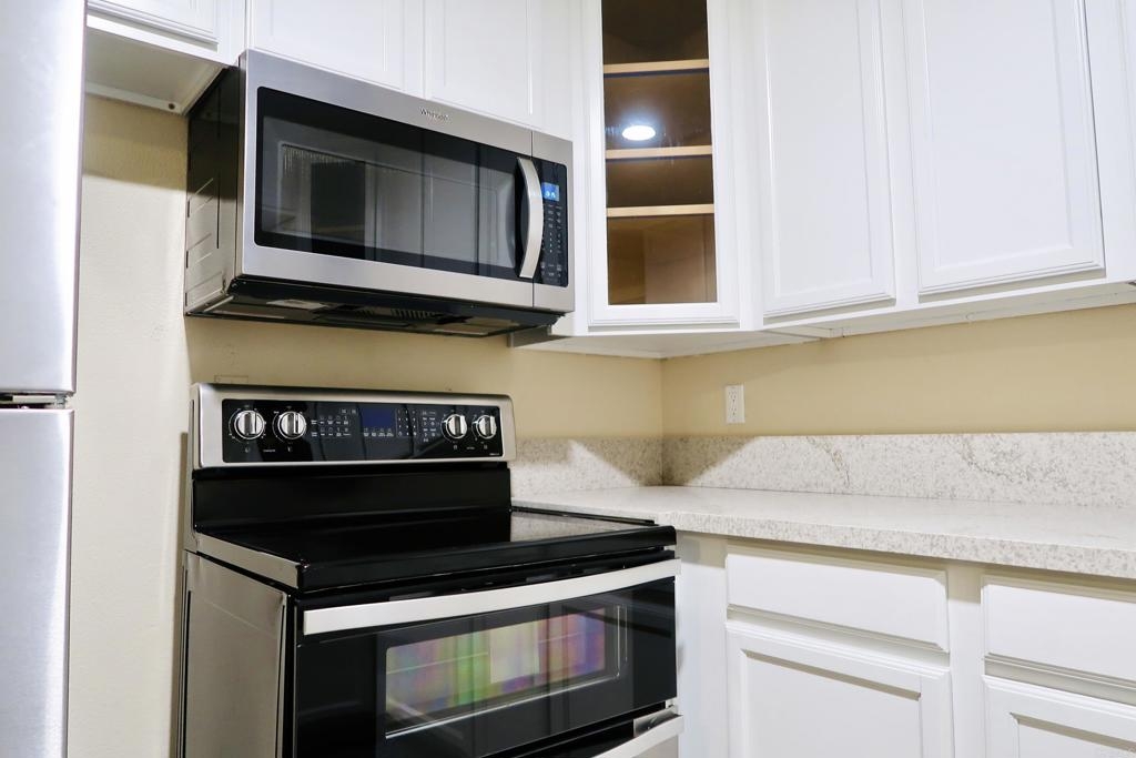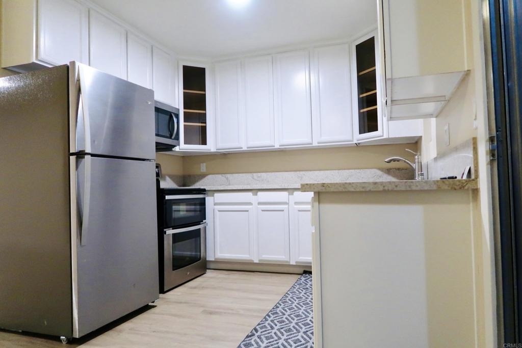 Opportunities like this don’t come along every day! Exclusively different from any other condominium in the whole complex, is a luxury that doesn't come often but conveniently available. Welcome to the newly renovated, 3 bedroom condo 12106, in the gated community of Lake Park Villas. Exceptional is one way to describe this beautiful spacious ground level condominium, within several feet from the refreshing, sparkling pool. Not only is this the only unit in the complex to have two different entrances on the opposite sides of the building (giving you access from two different areas), the back entrance has a private patio that's several feet away from the community pool with a concrete pathway dividing them apart (closer to the pool than any other condominium). Conveniently, condo 12106 doesn't share direct walls with neighbors on either side (aside from the upstairs unit which is directly on top). The interior of this one of a kind unit is completely freshly painted throughout, has newly installed recessed lights, and includes brand new stainless steel Whirlpool appliances such as: refrigerator, stove with oven (electric range), microwave, and a brand new stainless steel General Electric dishwasher which also conveys with condo. New quartz countertop looks beautiful with milk white cabinets and brand new laminate/vinyl flooring which was installed throughout the whole condo. Both full bathrooms have brand new vanities, toilets, and refinished bathtubs looking just like new. Bedrooms have mirrored closet doors and brand new double pane windows (BRAND NEW BIG LUXURIOUS MIRROR CLOSET DOORS IN MASTER BEDROOM AND BRAND BEW DOUBLE PANE WINDOWS WERE JUST INSTALLED IN ALL ROOMS, KITCHEN & BATHROOM). Large living room window was also replaced with a new double pane window. Living room has an underrated long narrow walk-in closet for guests or another option to hang plenty of clothes. Condo 12106 is located a few miles away from SDSU and a couple blocks away from College Grove Shopping Center where there's a Walmart, Target, Sam's Club, Kohl's, Ross, Chase Bank, 24 Fitness and other businesses. There's also a big lake park for people of all ages to enjoy within walking distance (a few blocks away). Easy access to 94 freeway (on the right hand side when exiting Lake Park Villa). P.S. Pictures in daytime were taken before Double Pane windows were installed : )