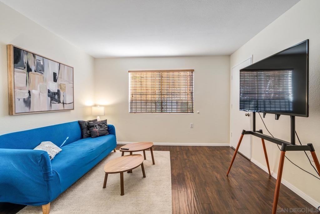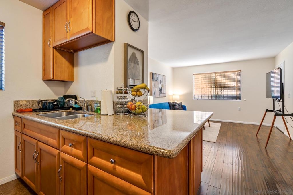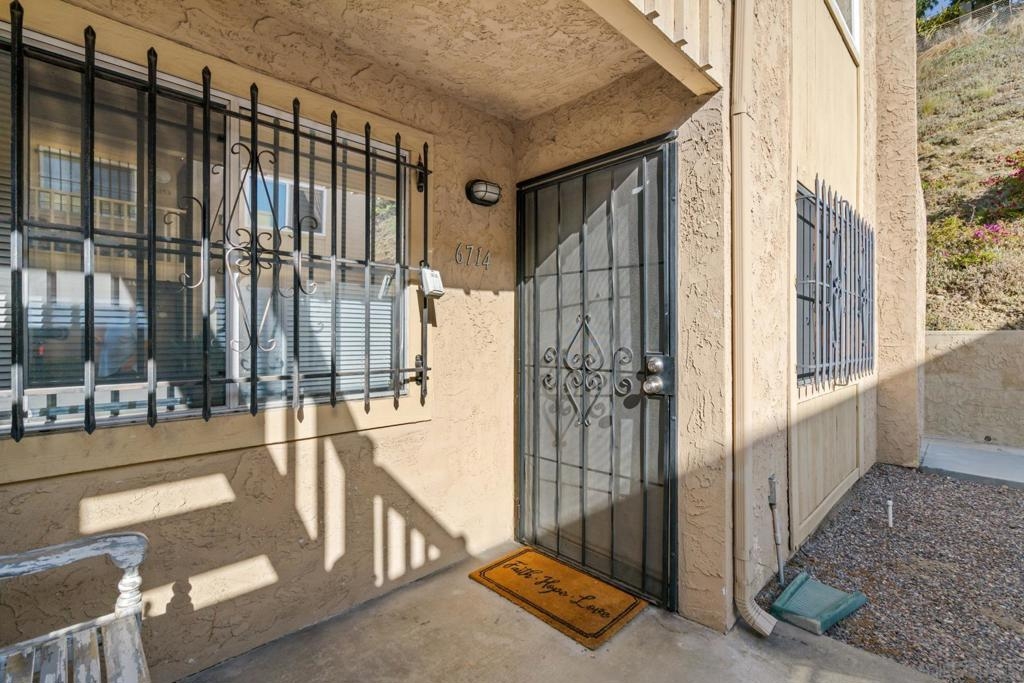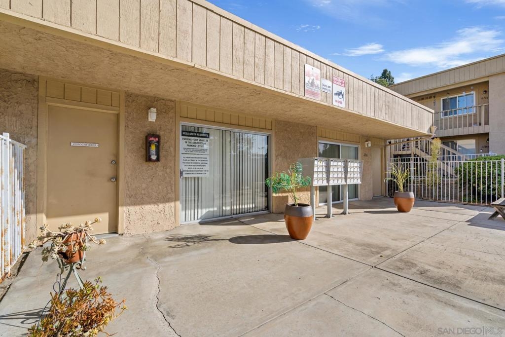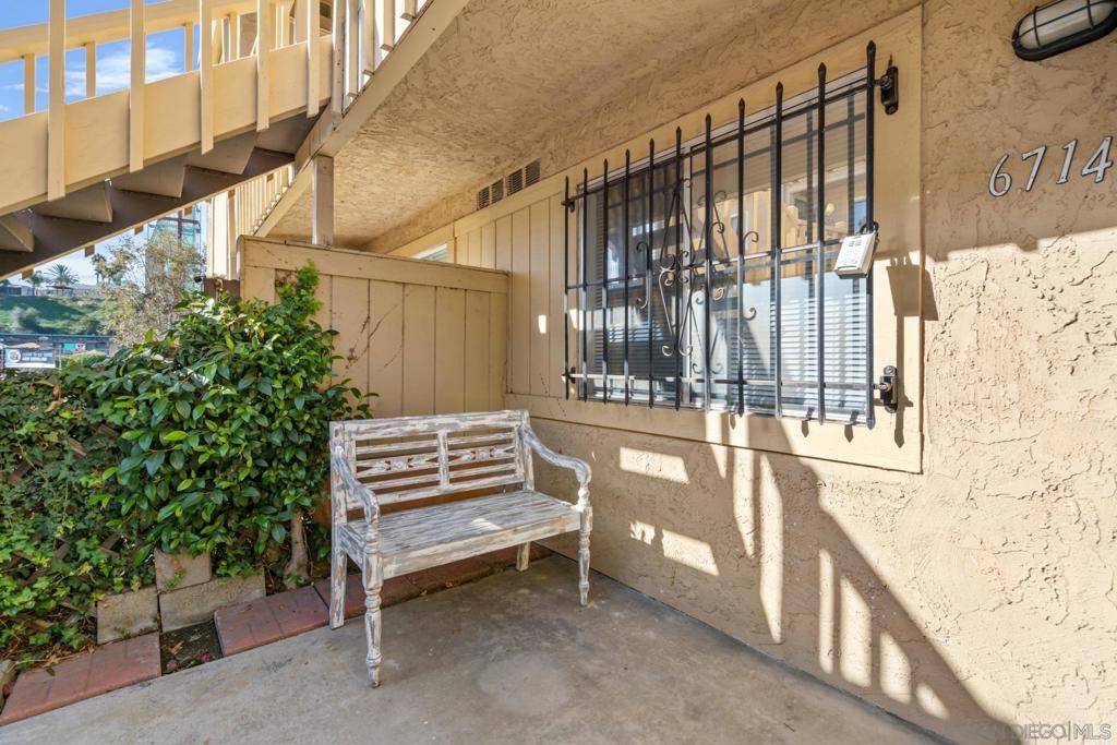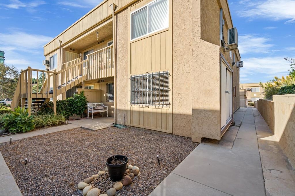 Very well maintained and first floor unit in the Mesa Greens complex in the Rolando neighborhood. This 1 bedroom / 1 bath corner unit features a private front patio/sitting area. Renovations include maple wood cabinets in the kitchen w/ granite counter tops, tiles in the kitchen/bathroom, laminate in the living room and bedroom w/ carpet floorings. Open lay-out, bright and bedroom is spacious. One parking space. Low HOA fee. This centrally located complex is close to all & near SDSU, YMCA & short drive to downtown.
