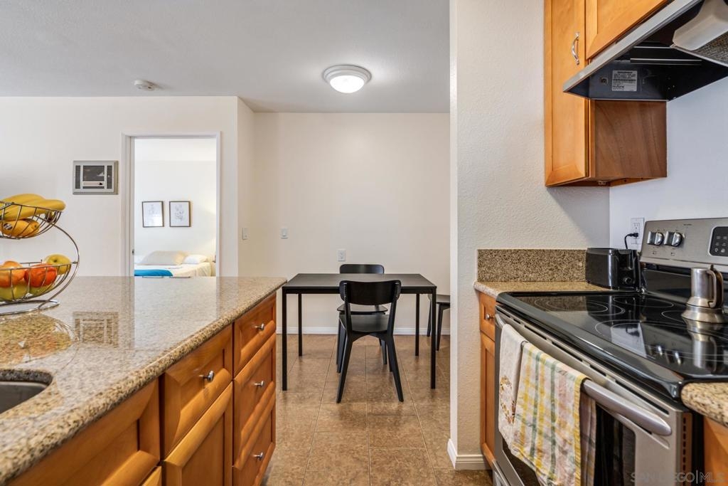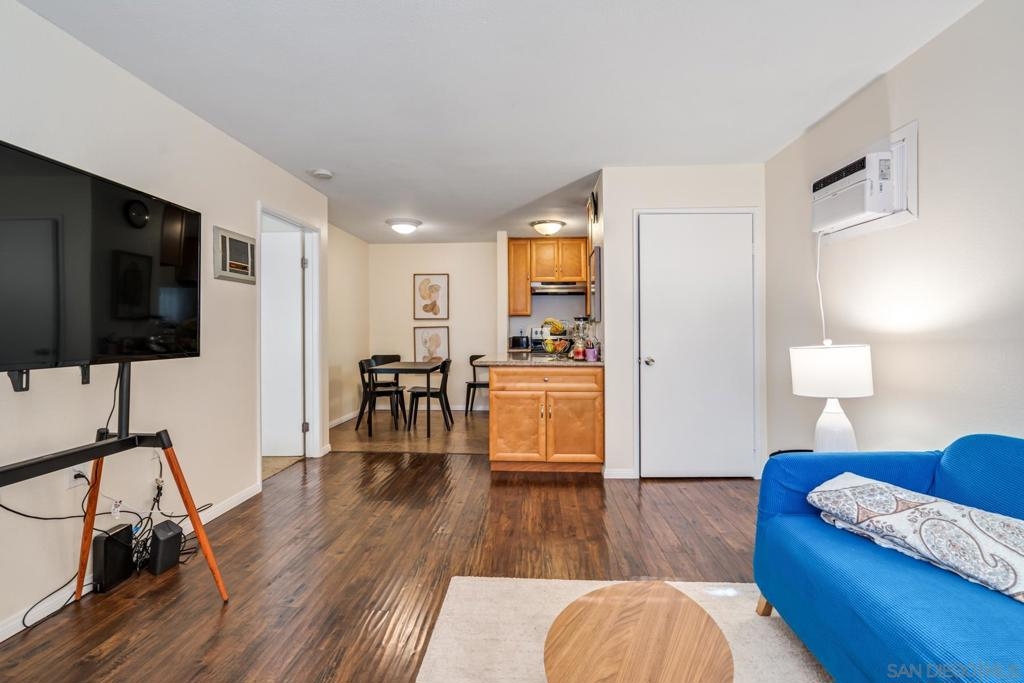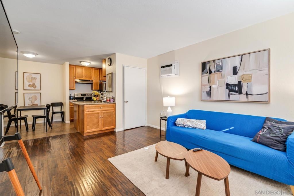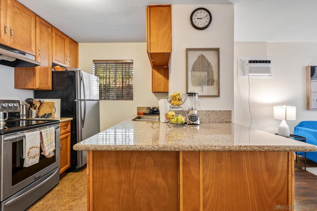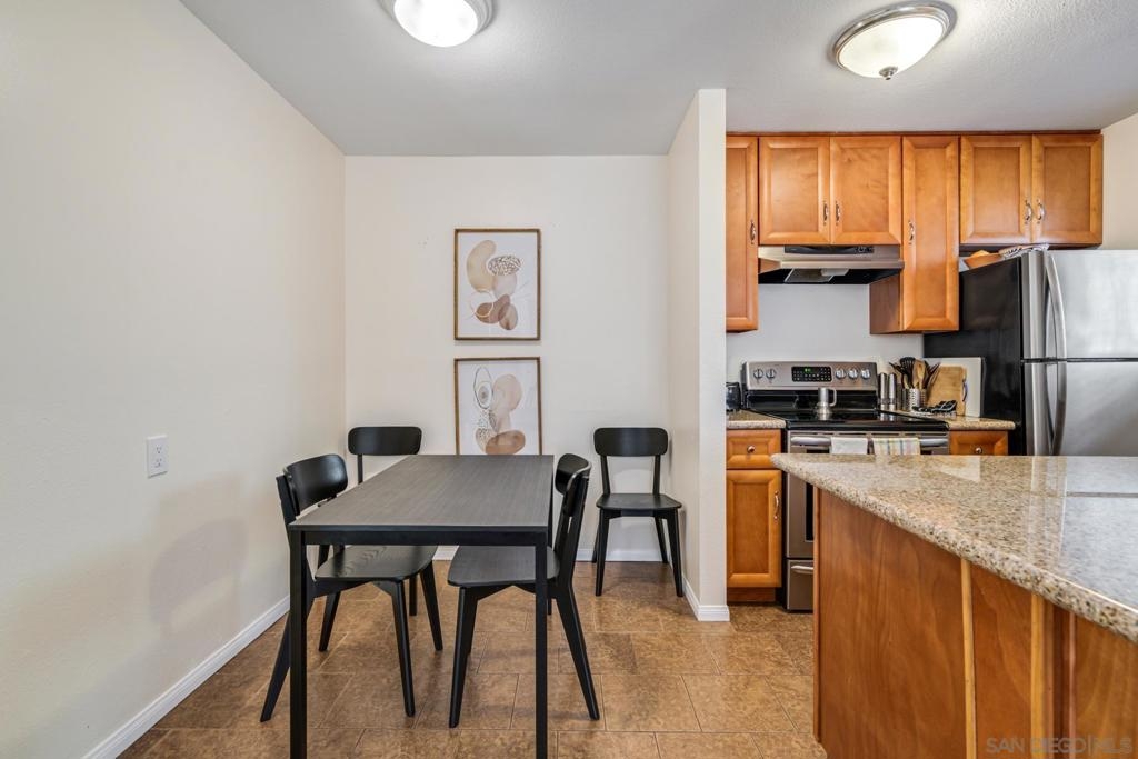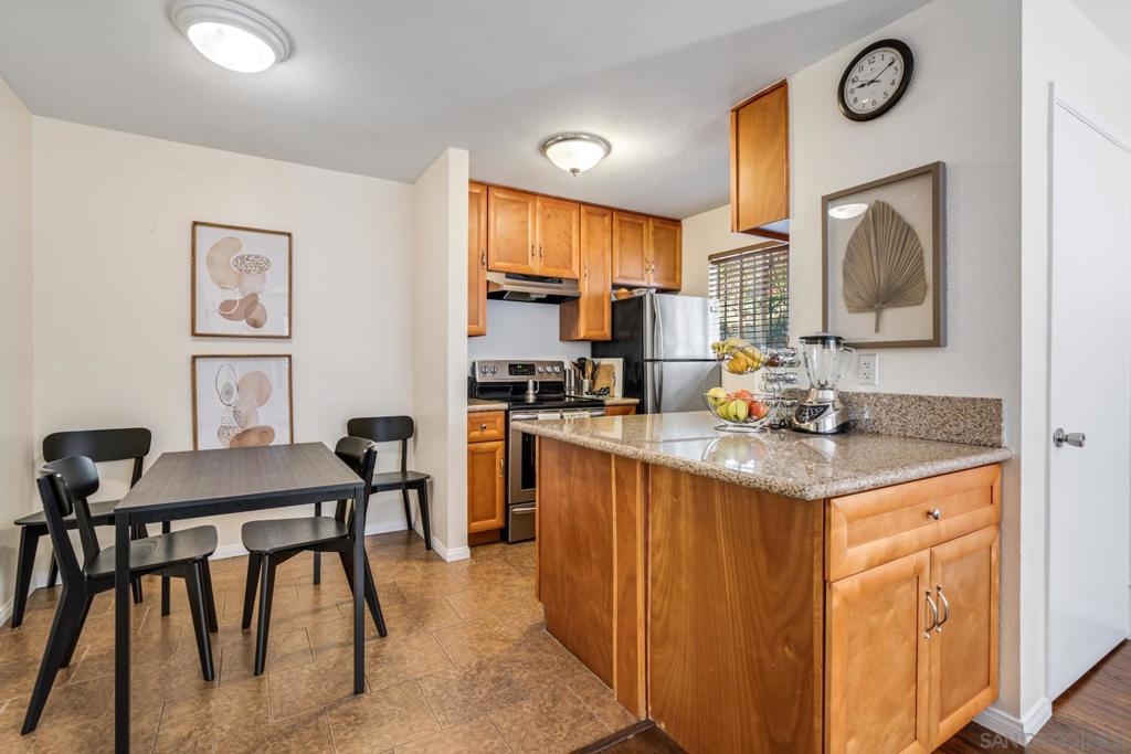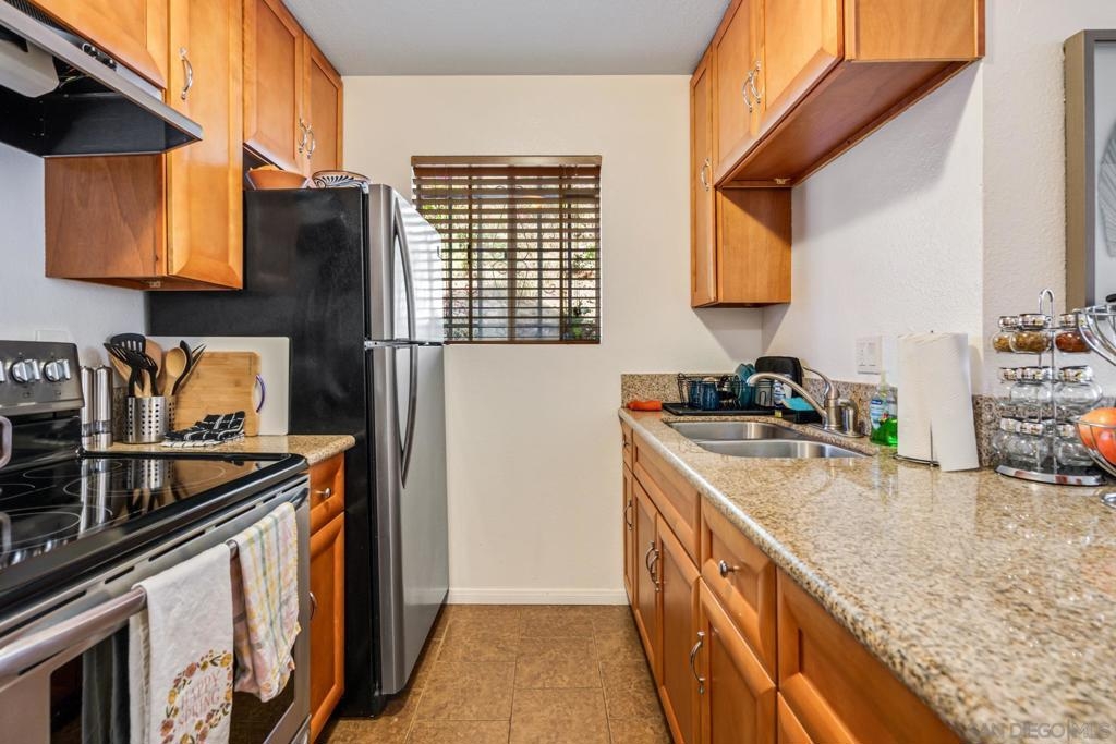 Very well maintained and first floor unit in the Mesa Greens complex in the Rolando neighborhood. This 1 bedroom / 1 bath corner unit features a private front patio/sitting area. Renovations include maple wood cabinets in the kitchen w/ granite counter tops, tiles in the kitchen/bathroom, laminate in the living room and bedroom w/ carpet floorings. Open lay-out, bright and bedroom is spacious. One parking space. Low HOA fee. This centrally located complex is close to all & near SDSU, YMCA & short drive to downtown.