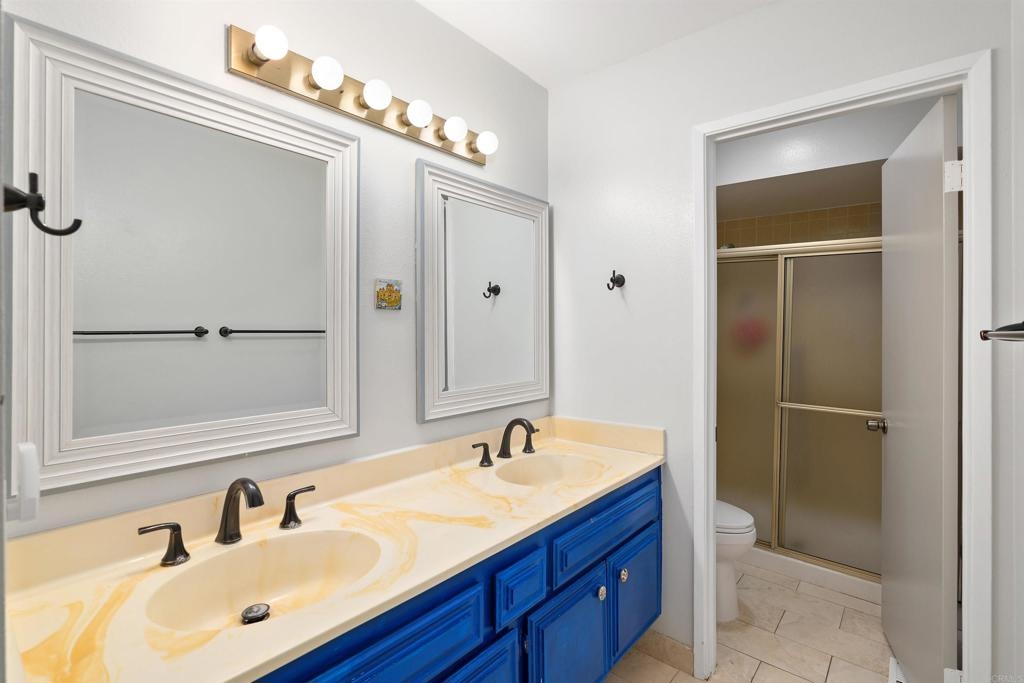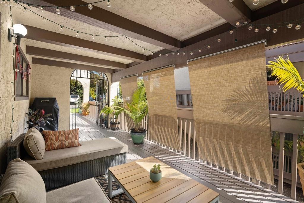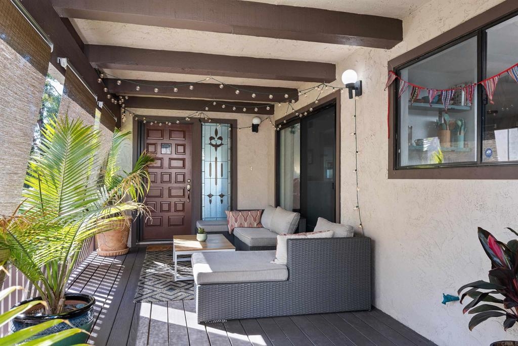 Rarely on the market... End Unit Townhome! Entrance features gated enclosed patio which is great for outdoor living. Once you enter you will enjoy the nice & bright living room with a cozy fireplace, gorgeous views with fresh breezes from the balcony. Spacious kitchen, beautiful skylight, ample storage space, and easy access to the private covered front patio. Downstairs features three bedrooms, including the large master with ensuite bathroom, plenty of closet space, and private wooden balcony. Unit has an attached two-car garage with built-in storage and direct access to the kitchen, in-unit laundry, three balconies, dual pane windows & sliders, new cool roof, new heating and AC/central air. The complex is well-maintained with full access to the community swimming pool, spa, tennis court, and ample parking. Centrally located near the freeway, shopping, hospitals, and walking distance to trolley, SDSU, and public library