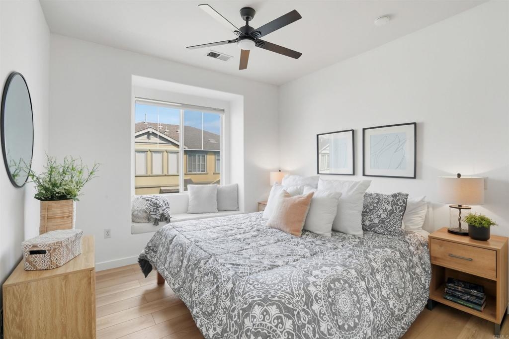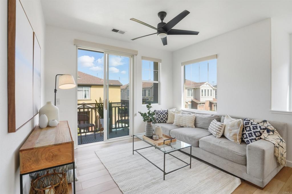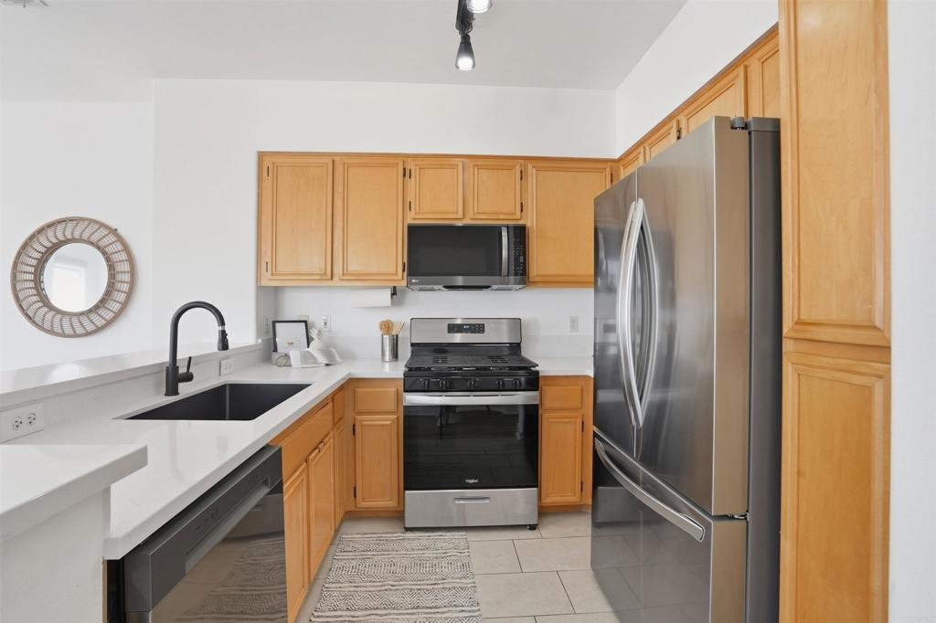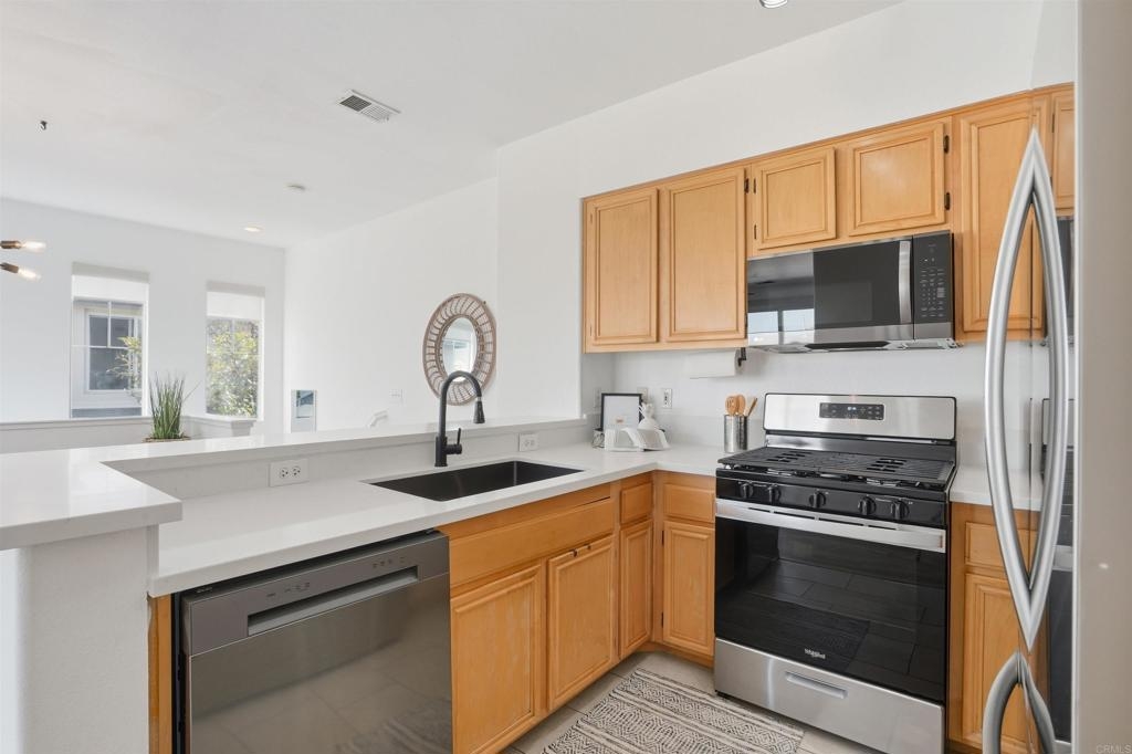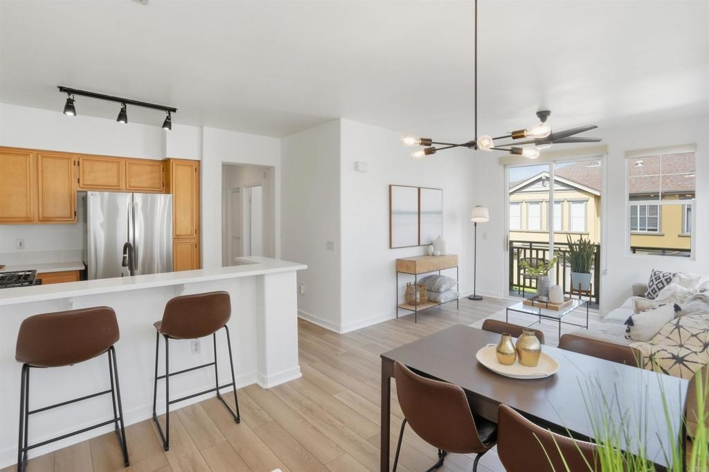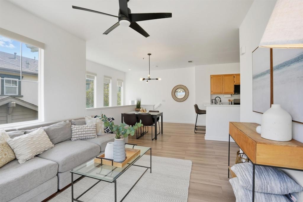 Beautifully Remodeled Home in Gated Community, Low HOA Fee, Move-In Ready. This stunning 2BR/2BA home offers the perfect blend of comfort, style, and convenience. Step inside to discover an open-concept living/dining/kitchen area that flows onto a private balcony—ideal for morning coffee or evening relaxation. The modern kitchen features sleek quartz countertops and updated finishes. The large primary suite is a true retreat, complete with a charming window seat, dual closets, fully remodeled en-suite bath with a walk-in shower and contemporary fixtures. The second bathroom has been updated for a modern feel as well. This home is packed with upgrades including fresh interior paint, new flooring, new kitchen appliances, new quartz countertops in both the kitchen + primary bath, new window coverings, designer light fixtures/ceiling fans, elegant glass-paned closet doors. Newer A/C unit and water heater. Attached one-car garage with epoxy floor +1 reserved space, in home laundry closet, and a well-maintained community setting. Walkable to schools, parks, shopping & dining. This home truly checks all the boxes!