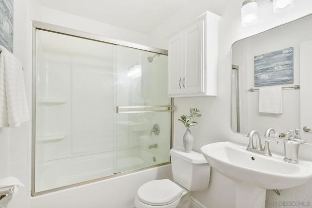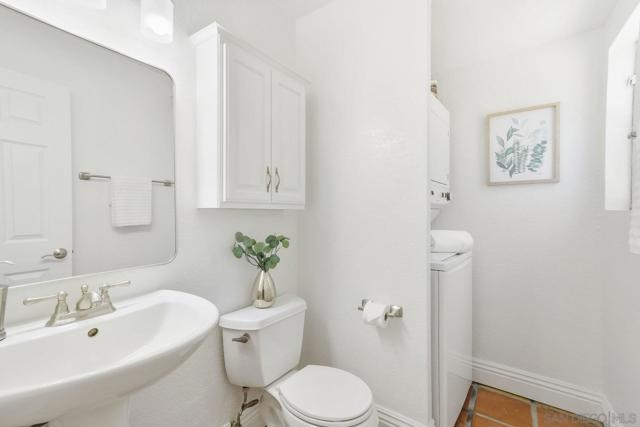 Presidio Park HOA is VA-approved with strong reserves and solid financials. This spacious, two-level townhouse-style condo sits in the heart of the vibrant College Area and Rolando Village. Freshly painted, 2-bedroom, 1.5-bath home offers 923 sq ft of comfortable living across two levels with a large patio! Features include modern LVP and tile flooring throughout and a cozy gas fireplace for relaxing evenings. Enjoy in-unit laundry, ceiling fans in each room, and an inviting, exclusive patio—perfect for morning coffee or entertaining guests. Upstairs, one bedroom opens onto a private balcony overlooking the park across the street, providing a peaceful retreat. Separated by a generous full bathroom is the spacious second bedroom, ideal for roommates or a small family. Includes 1 covered assigned parking space (#33) in gated garage; additional unassigned space available first-come with permit. Unit #118 also has one of the rare extra storage units (#3). Minutes from SDSU and freeway access. The area boasts excellent walkability (Walk Score 84), with dining options like Terra American Bistro, Woodstock’s Pizza, and diverse fare at Campus Plaza. Families will appreciate nearby Clay Elementary and the Ray & Joan Kroc Center. This home delivers both charm and convenience in one of San Diego’s most desirable communities. Don’t miss this opportunity in a sought-after Mid City location.