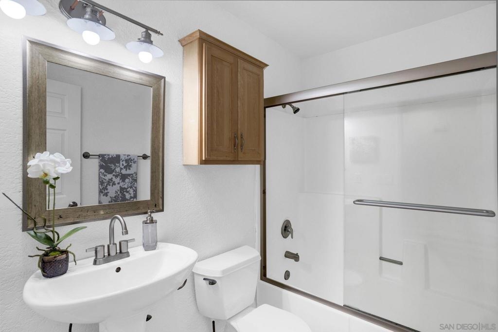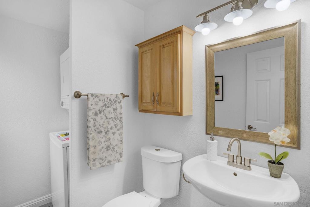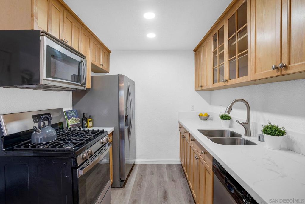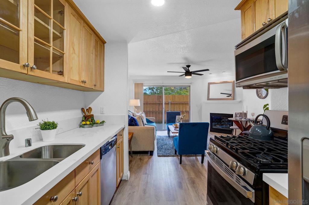 Welcome home to this recently updated 2 bedroom, 1.5 bathroom, 2 story condo in the community of Presidio Park in San Diego! Enjoy 2022 updated flooring, countertops, sinks, light fixtures, paint and more! The bedrooms offer ample closet space and a shower-in-tub in the primary bathroom. The kitchen features granite-style countertops, stainless steel appliances, a gas stove, and a breakfast nook. Additional property highlights include a fenced back patio area, an inside laundry closet with washer/dryer, and assigned parking. Only a five minute drive to SDSU, super walkable to shopping and great eateries.