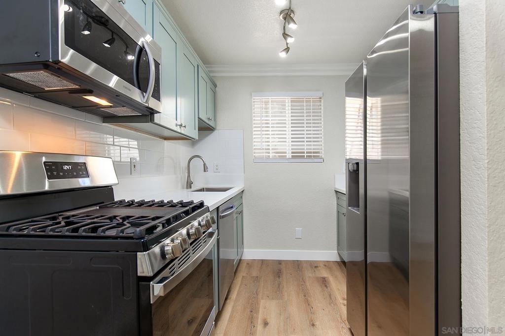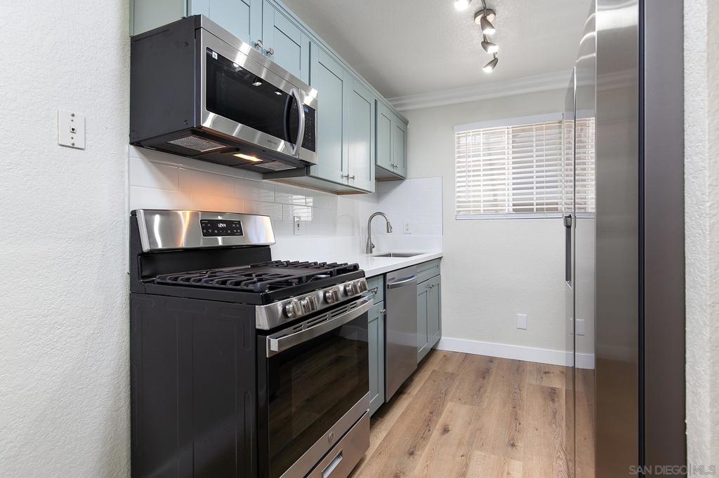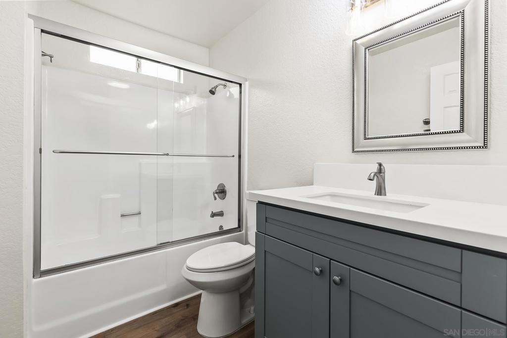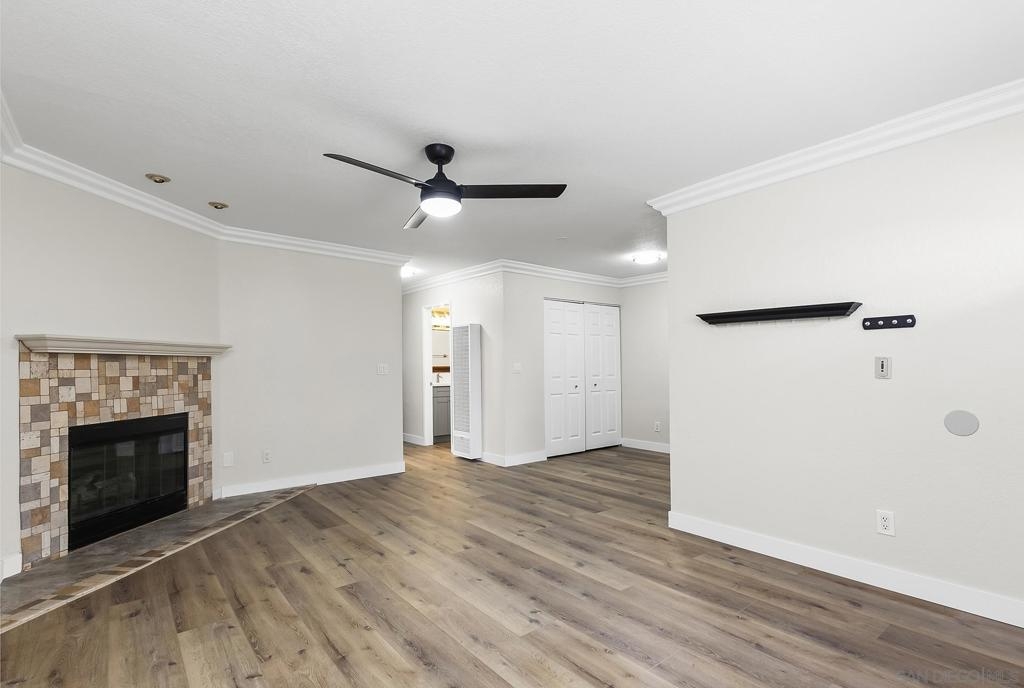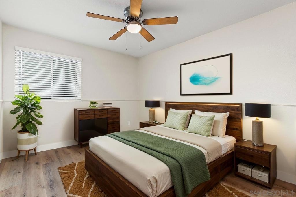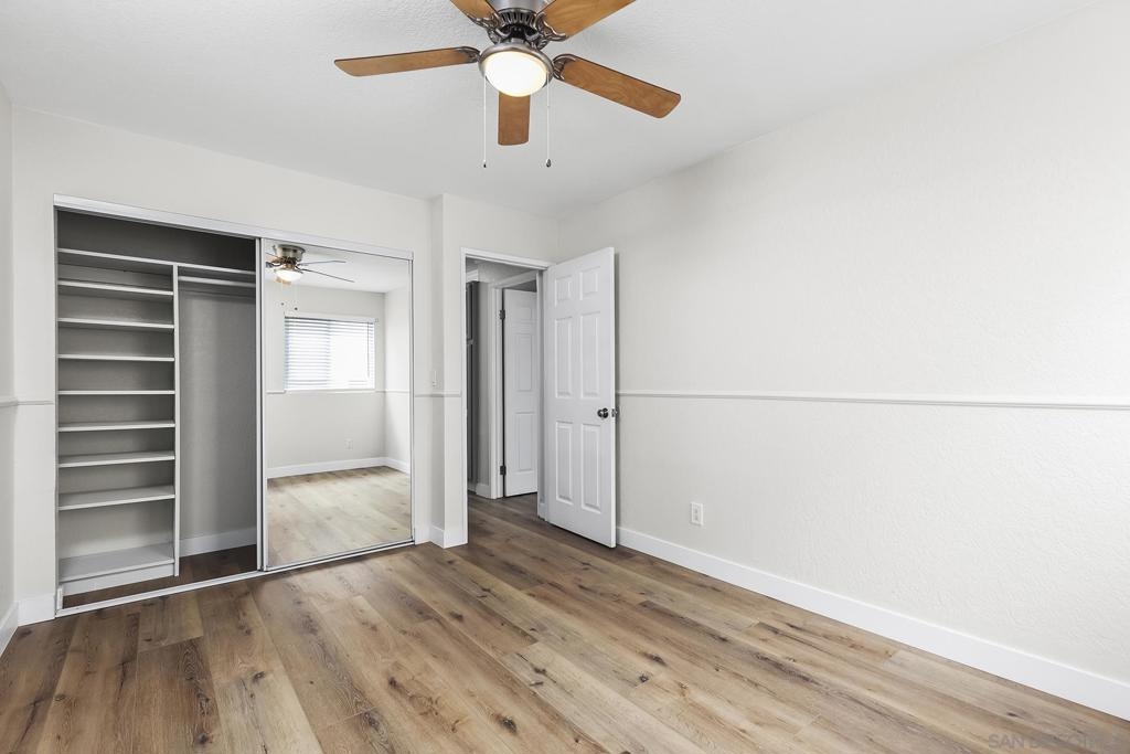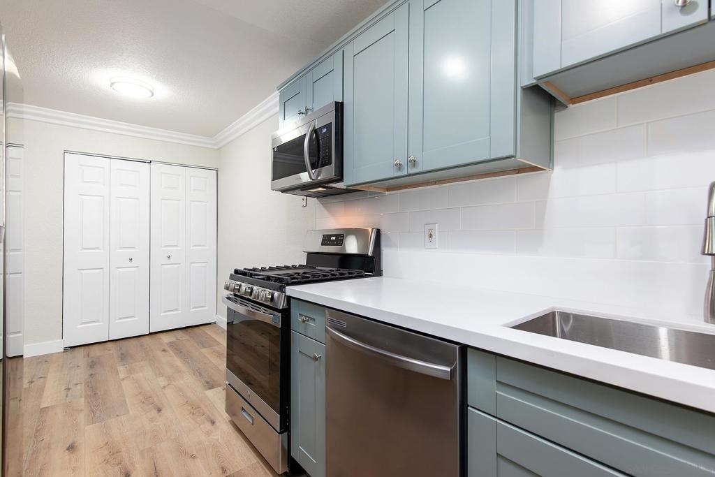 This Spacious and newly remodeled, 2-bedroom 1.5-bathroom single-story end-unit condo is situated in the desirable and "VA-approved" complex of Presidio Park. The property has been freshly painted and showcases brand-new vinyl plank flooring throughout, a renovated kitchen with quartz countertops and new stainless-steel appliances, updated bathroom cabinets, new toilets, modern light fixtures, and ceiling fans. Additional features include an in-unit laundry closet, an assigned "carport" parking and a storage shed 4X8 located in the gated garage. Conveniently located near colleges, parks, shopping centers, restaurants, and within walking distance to Clay Elementary, this property is also just minutes from SDSU and offers easy access to major freeways. This condo is ideal for first-time buyers or investors. Shows nicely!