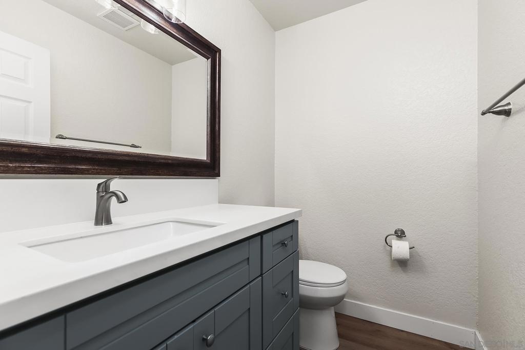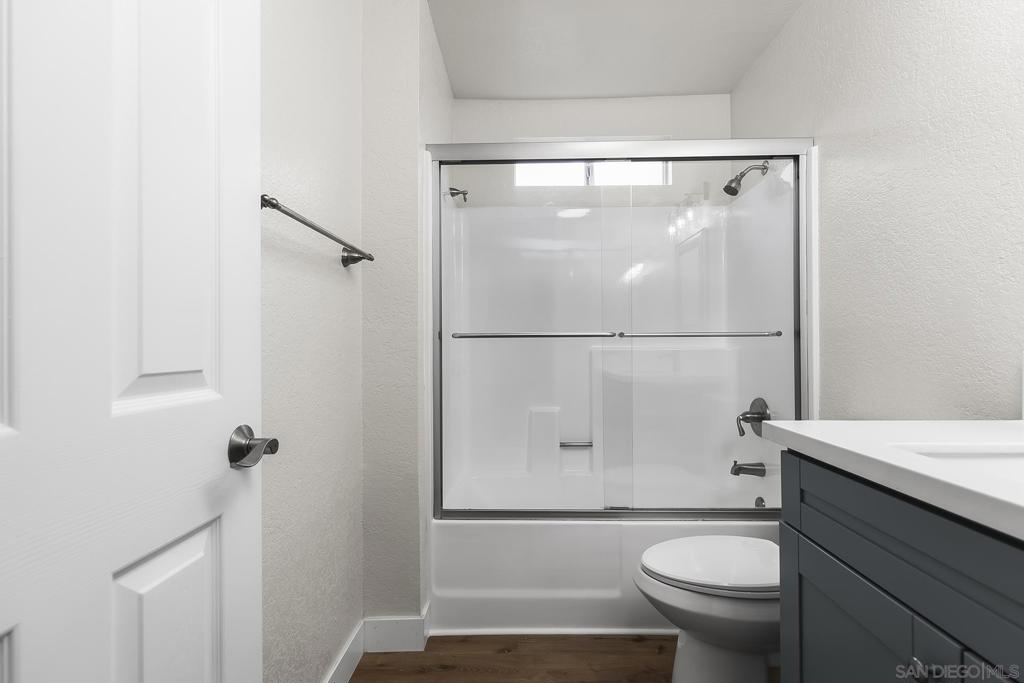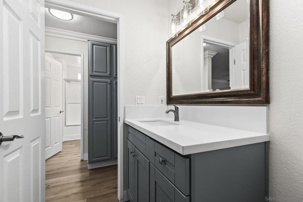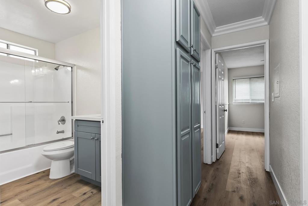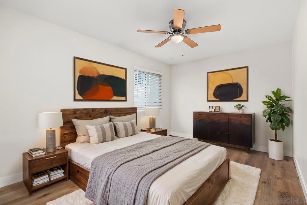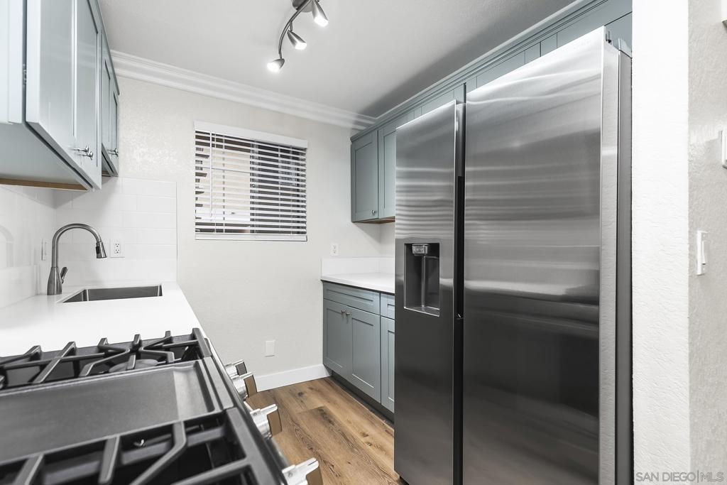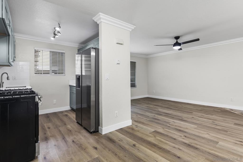 This Spacious and newly remodeled, 2-bedroom 1.5-bathroom single-story end-unit condo is situated in the desirable and "VA-approved" complex of Presidio Park. The property has been freshly painted and showcases brand-new vinyl plank flooring throughout, a renovated kitchen with quartz countertops and new stainless-steel appliances, updated bathroom cabinets, new toilets, modern light fixtures, and ceiling fans. Additional features include an in-unit laundry closet, an assigned "carport" parking and a storage shed 4X8 located in the gated garage. Conveniently located near colleges, parks, shopping centers, restaurants, and within walking distance to Clay Elementary, this property is also just minutes from SDSU and offers easy access to major freeways. This condo is ideal for first-time buyers or investors. Shows nicely!