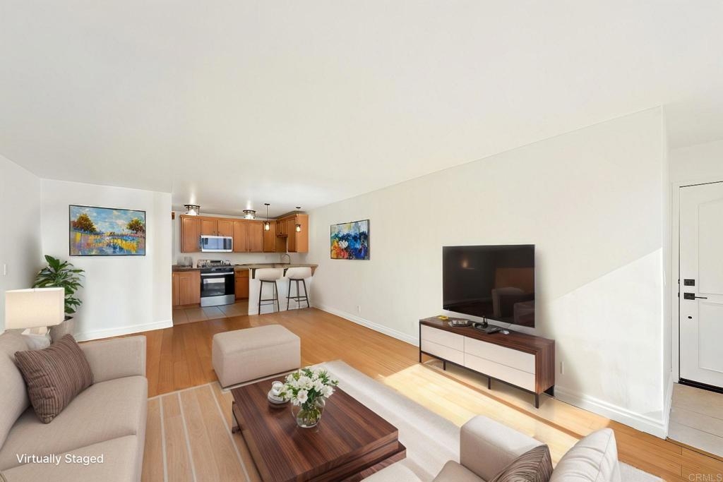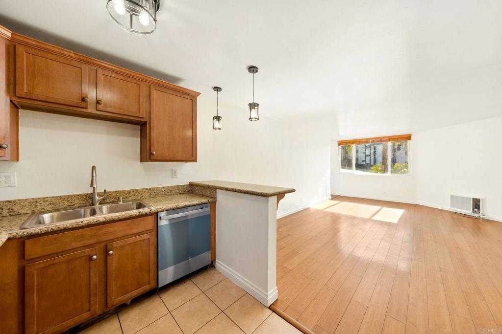 PRICED TO SELL! AMAZING FHA APPROVED CONDO! Welcome to this open concept 1-bedroom, 1-bathroom condo. Nestled in a convenient and vibrant neighborhood, this large corner lot unit offers a perfect blend of comfort and practicality. As you enter, you’re greeted by a spacious living area with abundant natural light streaming through large windows, creating a bright and airy atmosphere. The open layout provides flexibility for various furniture arrangements, making it ideal for both relaxation and entertaining. The kitchen is functional and equipped with brand new appliances, providing plenty of cabinet space for storage and room for meal preparation. The adjoining dining area offers a comfortable space for enjoying meals. The bedroom is well-sized, offering a peaceful retreat with ample closet space to store your belongings. The full bathroom is neatly appointed, featuring modern fixtures and a shower/tub combo. For added convenience, the apartment includes on-site parking, washer and dryer in the unit and a separate storage space. Residents will appreciate the proximity to local shops, restaurants, public transportation, and easy access to major freeways, making commuting a breeze. Don’t miss out on this affordable and well-located condo in San Diego, minutes away from SDSU. This condo is perfect for first-time home buyers or anyone seeking a comfortable space in a prime location!