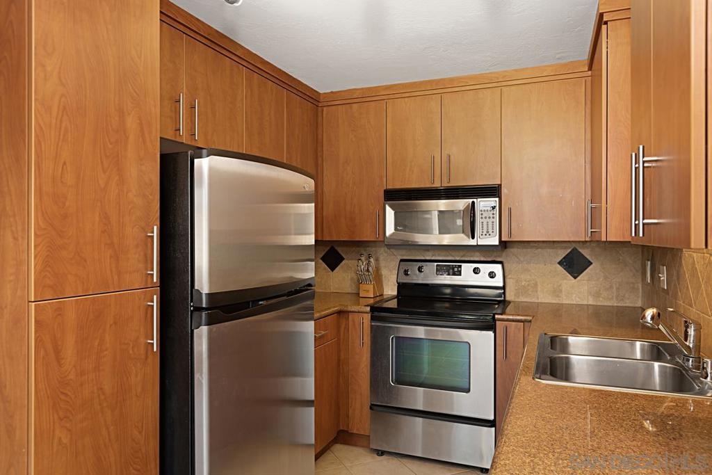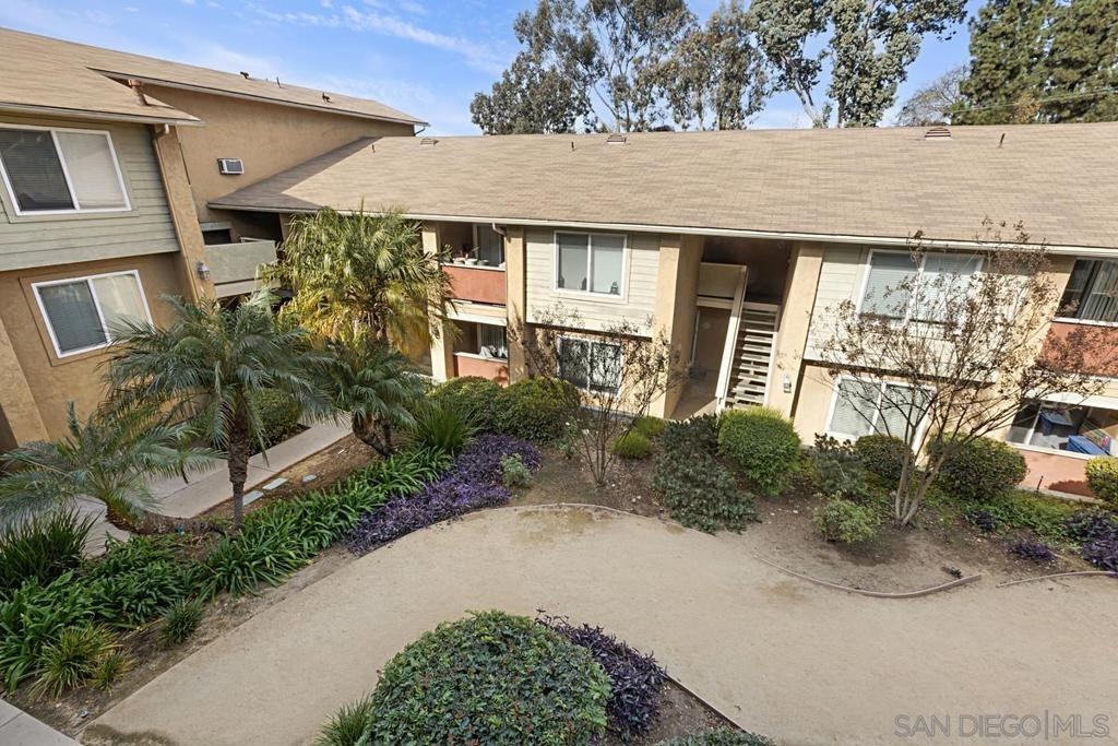 Discover this updated top-floor unit in the small gated community of Saranac Villas! An assumable 2.75% interest VA loan is an option for the right buyer! With a tasteful interior and thoughtful finishes, this home offers both comfort and convenience. The living space opens to a balcony off the kitchen, providing a cozy spot to enjoy fresh air. The kitchen features ceramic tile flooring, granite countertops, and stainless steel appliances. Both full bathrooms are updated with ceramic tile and granite counters. The master bedroom includes mirrored closet doors to enhance the sense of openness, while the second bedroom offers a spacious walk-in closet, giving you plenty of storage options. Enjoy the convenience of in-unit laundry and two covered, side-by-side parking spaces. Located near the 8 freeway, SDSU, Lake Murray, shopping, dining, and grocery stores, this home puts everything you need within easy reach. Don't miss out on this great opportunity to own a two-bedroom home in San Diego for an affordable price!