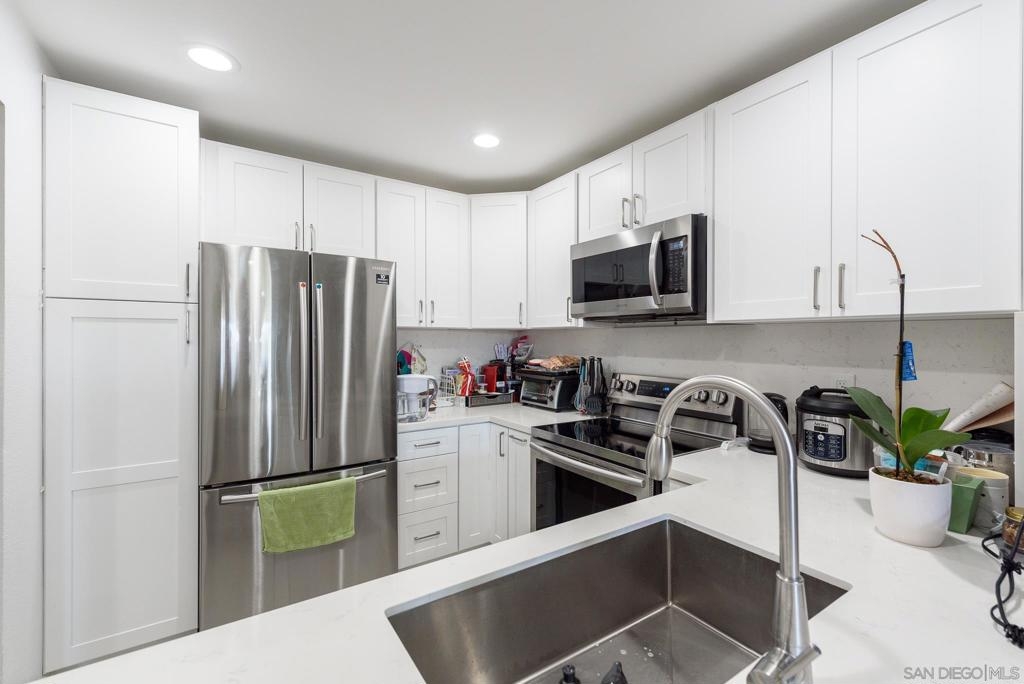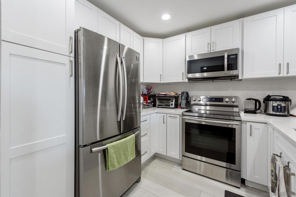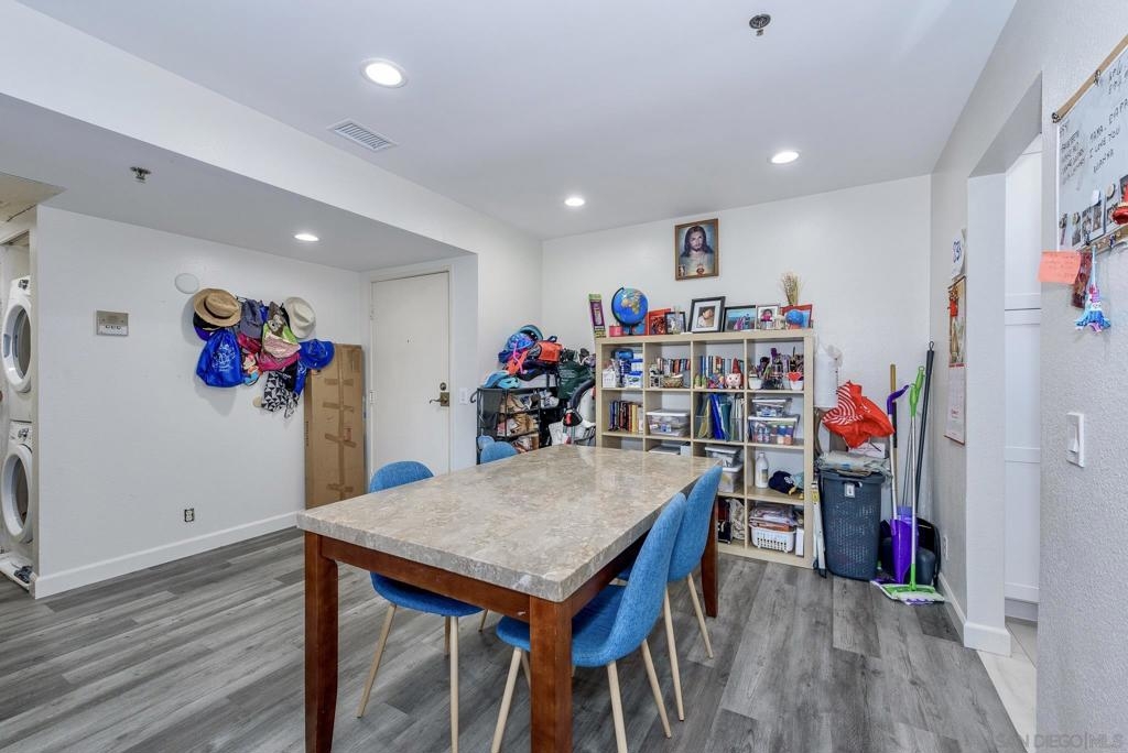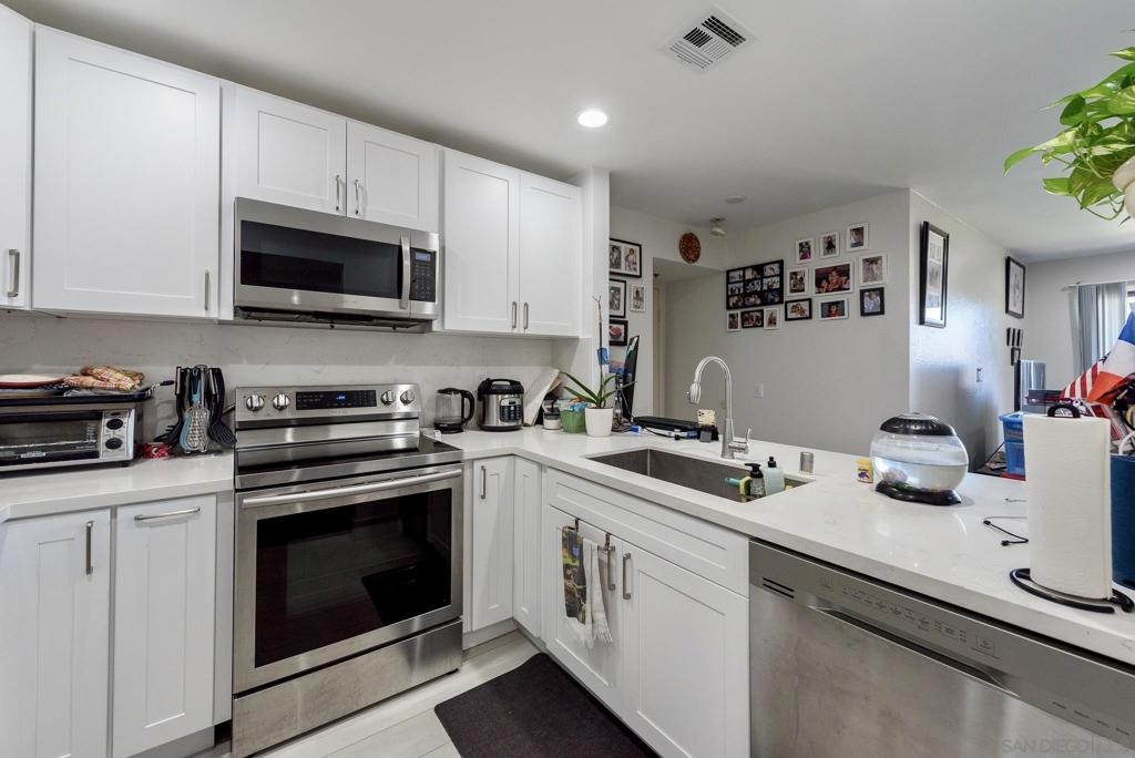 Remodeled 1st Floor Condo w/ Open & Modern Layout! 3 Assigned Parking Spots(2 In Tandem/Garage & 3rd Only Steps from Building), Premium Flooring, Upgraded Kitchen w/ Quartz Counters, New Stainless Appliances, Shaker Style Cabinets. Quiet Balcony & In Unit Washer/Dryer. FHA/VA Approved. Convenient & Quiet Location, Close To Freeways, Shopping, Public Transportation. Only Minutes from SDSU. Priced to Sell, This One Will Not Last! Equipment: Dryer, Washer Sewer: Sewer Connected Topography: RSLP,SSLP