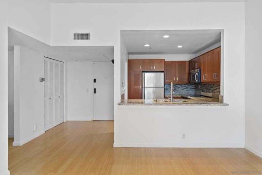 Welcome to 3955 Faircross Pl #78; a 4th floor, top unit with 2 beds and 2 full bathrooms in the SDSU college area. This tucked away, prime location offers easy accessibility to shopping, easy commuting to multiple freeways, and a sense of security, in a gated building with underground assigned parking. When entering, you’re immediately greeted by the marvelous vaulted 12ft ceilings in the living room drawing sunlight into the living space. Accompanying the open concept living room is the front facing kitchen with brown granite countertops and mocha cabinetry to match; gazing at not only the view of the vast living room, but also the calming view looking out onto the balcony that includes ample storage space. Navigating down the hallway, you’ll find the first bedroom facing east that includes shutters for added privacy while allowing a cool breeze. Across from the first bedroom, there’s a full bathroom with large granite countertops, mirrors, and a stacked washer and dryer. Continuing through the hallway, you’ll find yourself in the master bedroom which also offers high ceilings adding to the grand space the entirety of the unit offers. An added bonus is the dual closets beside a granite countertop vanity that’s perfect for daily preparation which also lead you to a separated bathroom and shower. With multiple freeways in close proximity, large bedrooms, in-unit washer and dryer, tall ceilings, and also freshly painted while located in an FHA and VA approved complex; opportunities like these rarely become available. You’ll want to see for yourself the value this unit offers!