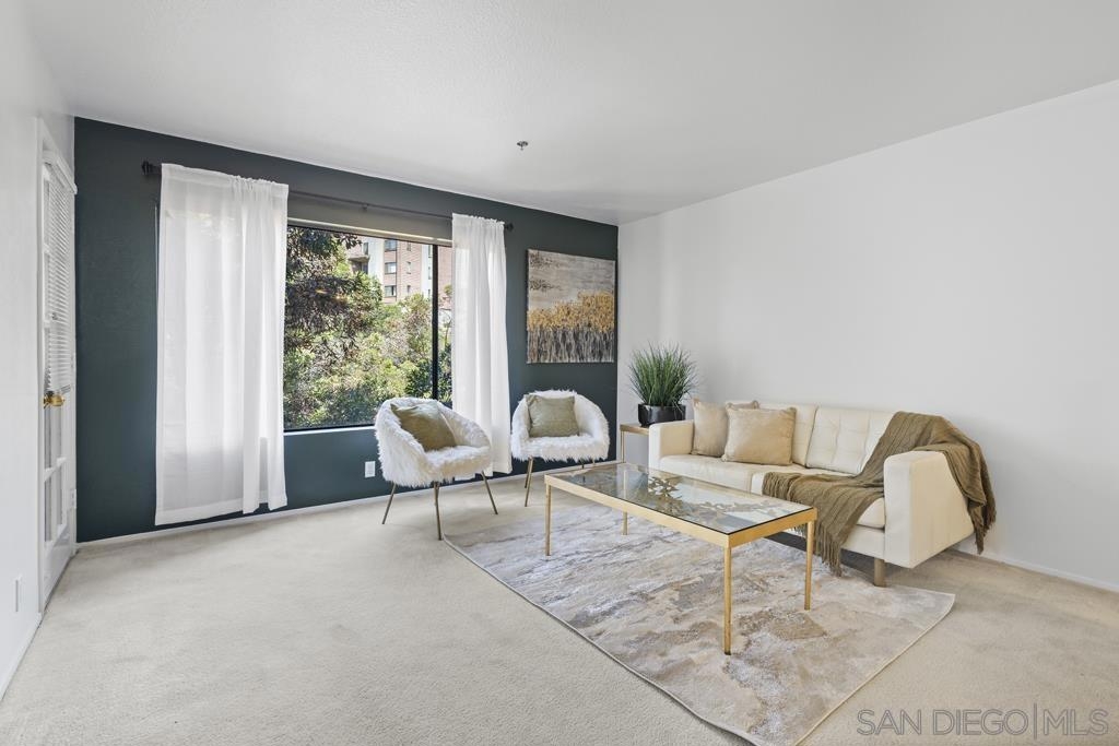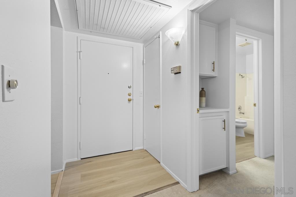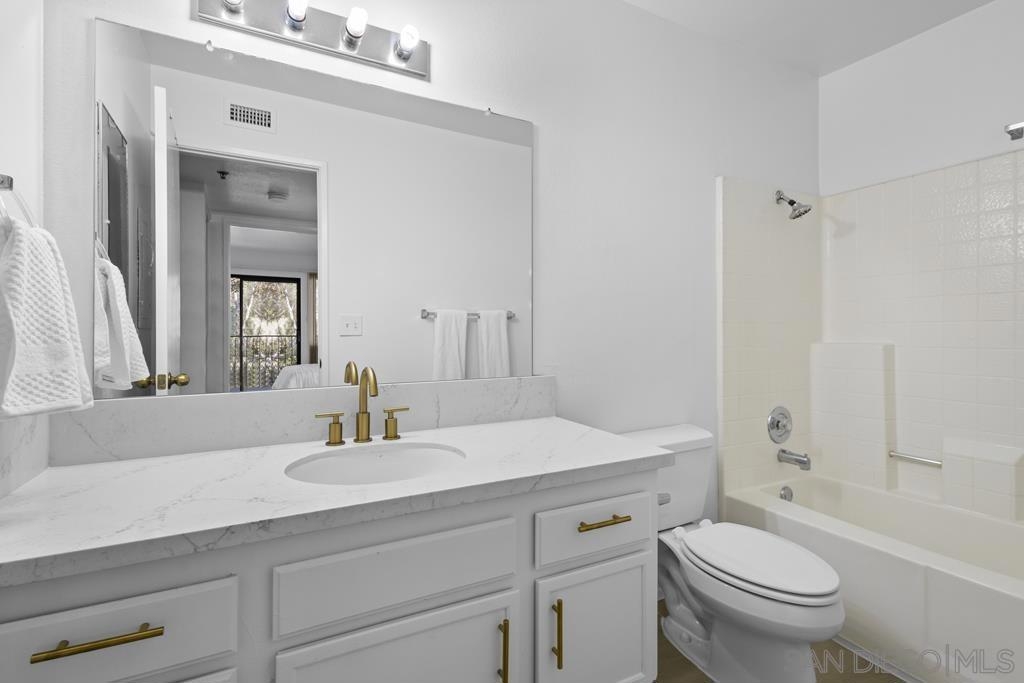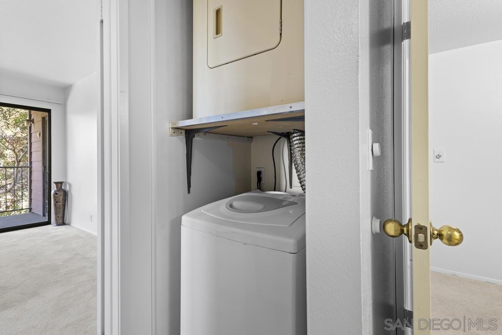 Corner Unit VA Approved Condo!!! This home features one bedroom with a walk in closet and one bathroom. The kitchen is beautifully updated with quartz countertops, optional bar seating, modern gold hardware, and vinyl flooring. There is A/C plus tons of natural light and privacy. Enjoy the oversized balcony with private storage and views of San Diego. Laundry is conveniently inside and there is one assigned parking space in the community garage. The home is located close to San Diego State University, freeways, and Downtown San Diego. Complex is gated and HOA includes trash & water!