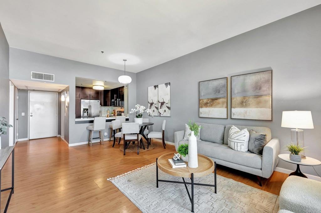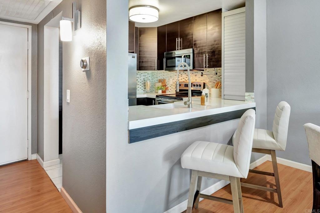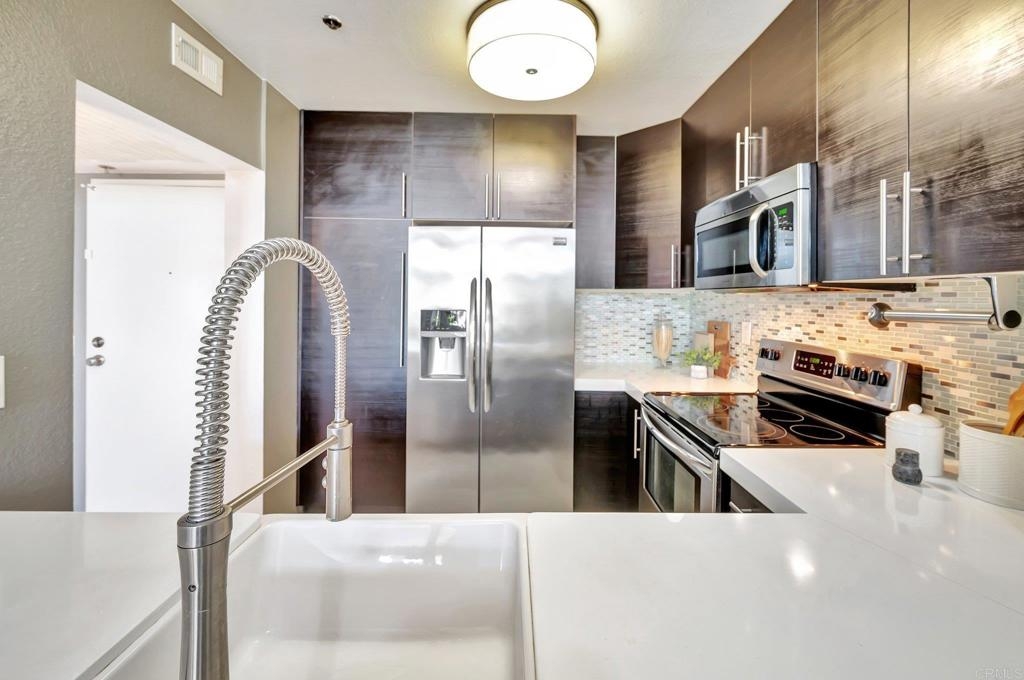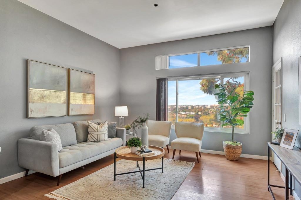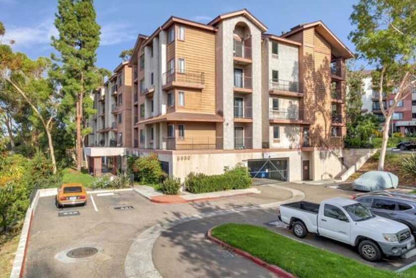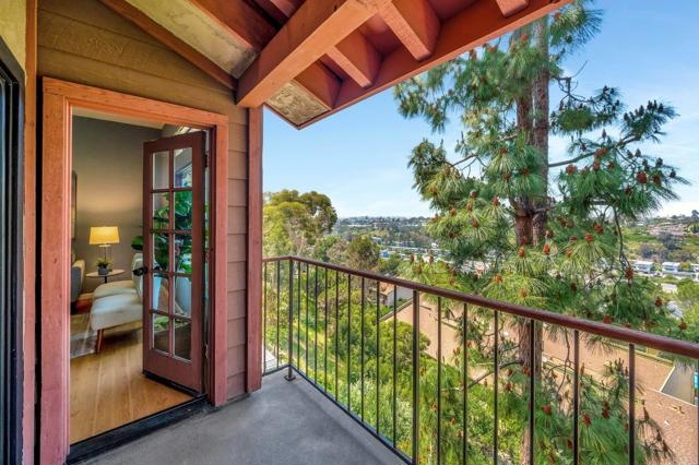 Gorgeous penthouse home perched high on a hill with VIEWS to downtown, La Jolla and the mountains! This home has everything that you have been searching for including gated garage parking, in unit laundry, remodeled highly upgraded kitchen, updated bath, central AC with Nest System and open concept living spaces flooded in natural light and vaulted ceilings. No detail has been overlooked in this turnkey home including updated windows. The stunning remodeled kitchen features high end cabinets, stainless steel appliances, farm house sink and gorgeous real stone countertops! There is even a roll up kitchen appliance storage garage! You will love entertaining in the oversized living room/dining room with huge window with incredible views and a French door leading to your private balcony with extra storage closet. Even the bathroom has been tastefully updated and upgraded! The large primary bedroom features a sliding glass door leading to the balcony and a massive walk in closet! So much to fall in love with! This is the one you have been searching for! This home is in a VA approved complex and close to SDSU! Come live the dream!