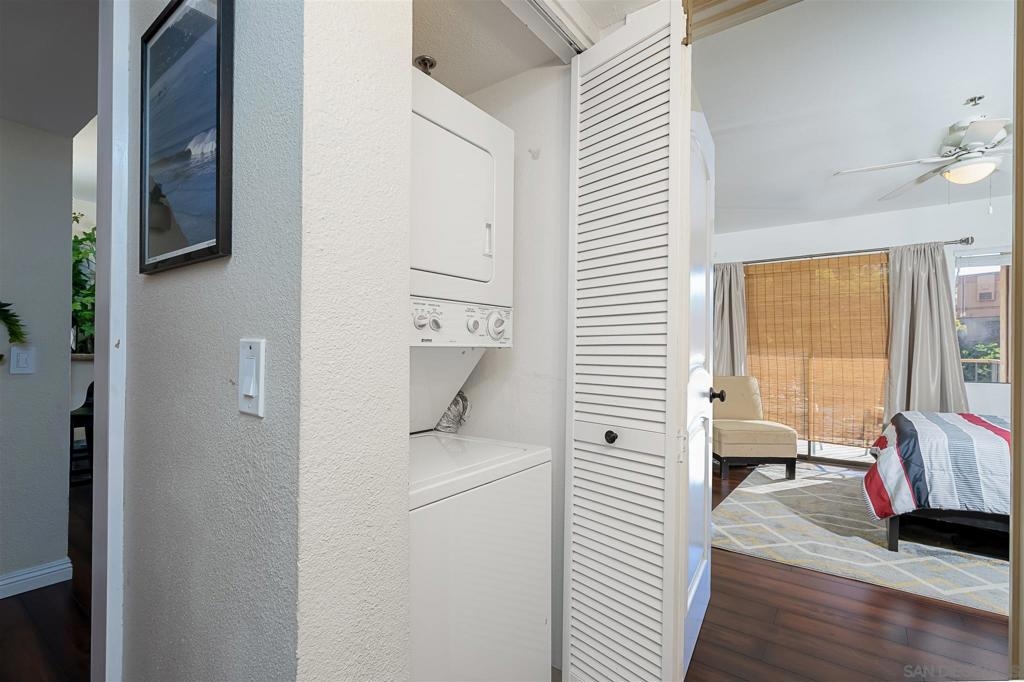 BACK ON THE MARKET, FHA spot approval did not go through. CONV, VA, CASH only. Upgraded kitchen with granite countertops, stainless steel appliances, spacious living area with lots of natural lighting, open balcony with a view, designer wooden floors throughout, walk-in closet, centralized A/C and heater, (1) assigned underground parking space, metered guest parking with an in-unit washer and dryer!!! This is a quiet community, close to 3 main freeways, nearby shopping centers, and schools. Equipment: Dryer,Fire Sprinklers, Range/Oven, Washer Sewer: Sewer Connected, Public Sewer Topography: LL