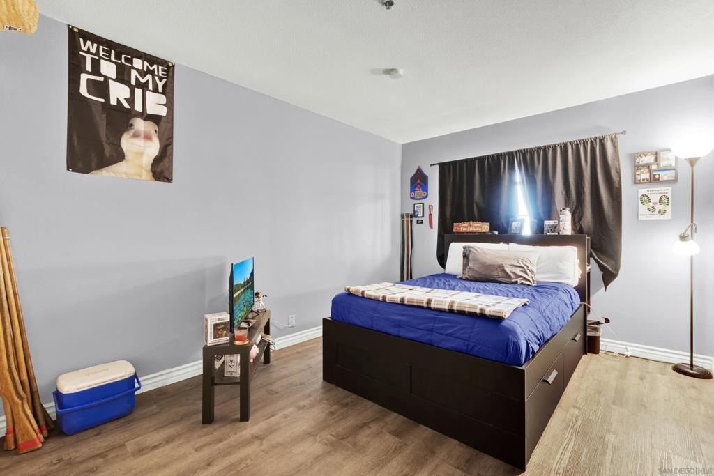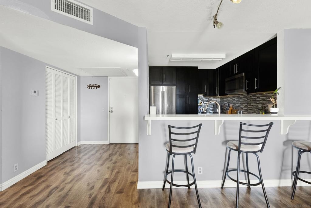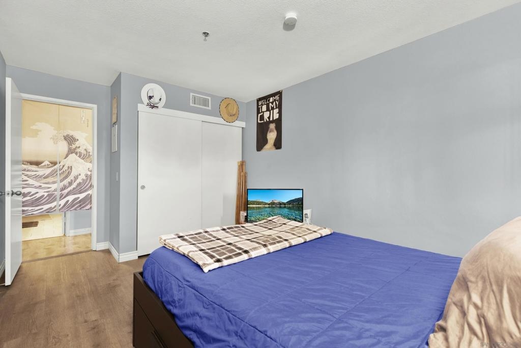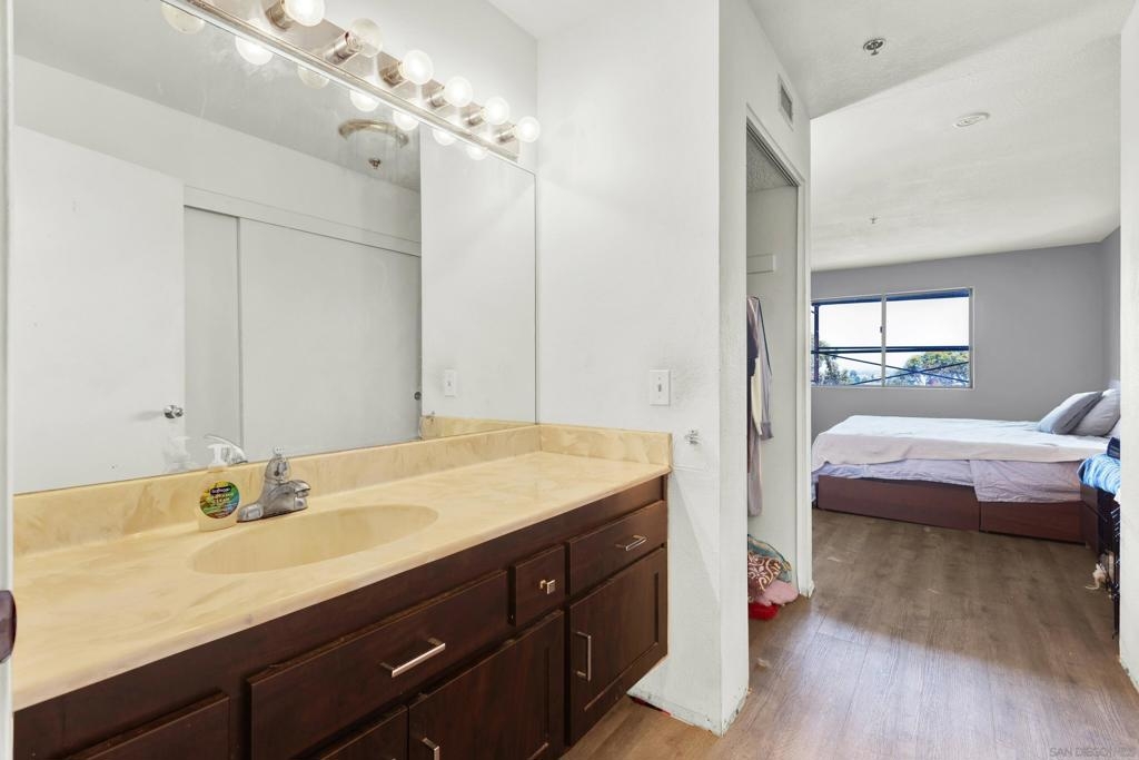 Welcome to this bright, beautiful and inviting 2-bedroom, 2-bath 1069 square foot condo nestled within the Sunrise Point complex in the El Cerrito area! Condo is located on the second floor offers privacy and serene views. This light & bright unit offers a nice open floor plan w/ dual primary bedrooms & ensuite bathroom, wood flooring throughout, kitchen w/ stainless appliances & an eat-at counter/bar, in-unit laundry, central AC/Heat, & a private balcony. You'll appreciate the convenience of in-unit stacked laundry, enhancing daily comfort and ease. The open layout and well-maintained spaces create a welcoming atmosphere. Enjoy 2 assigned parking spaces in a secured garage & community spa. Conveniently located near SDSU, great shopping, restaurants & easy freeway access. VA approved!